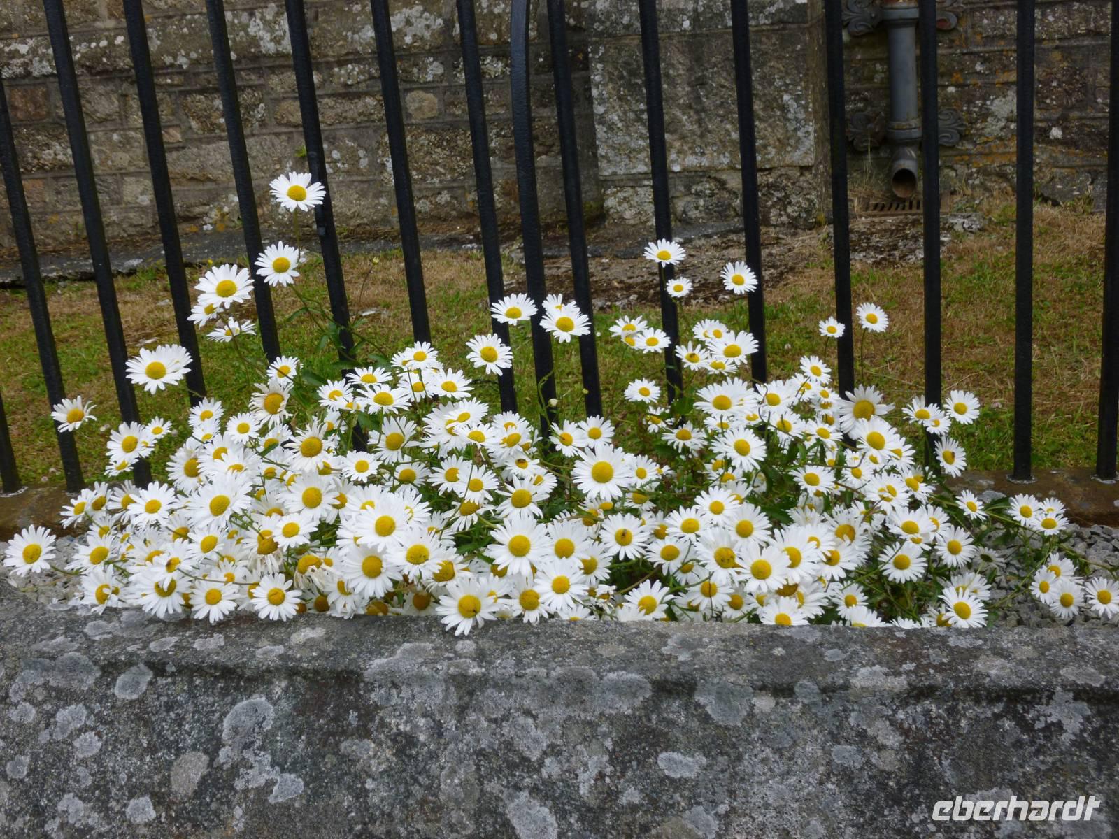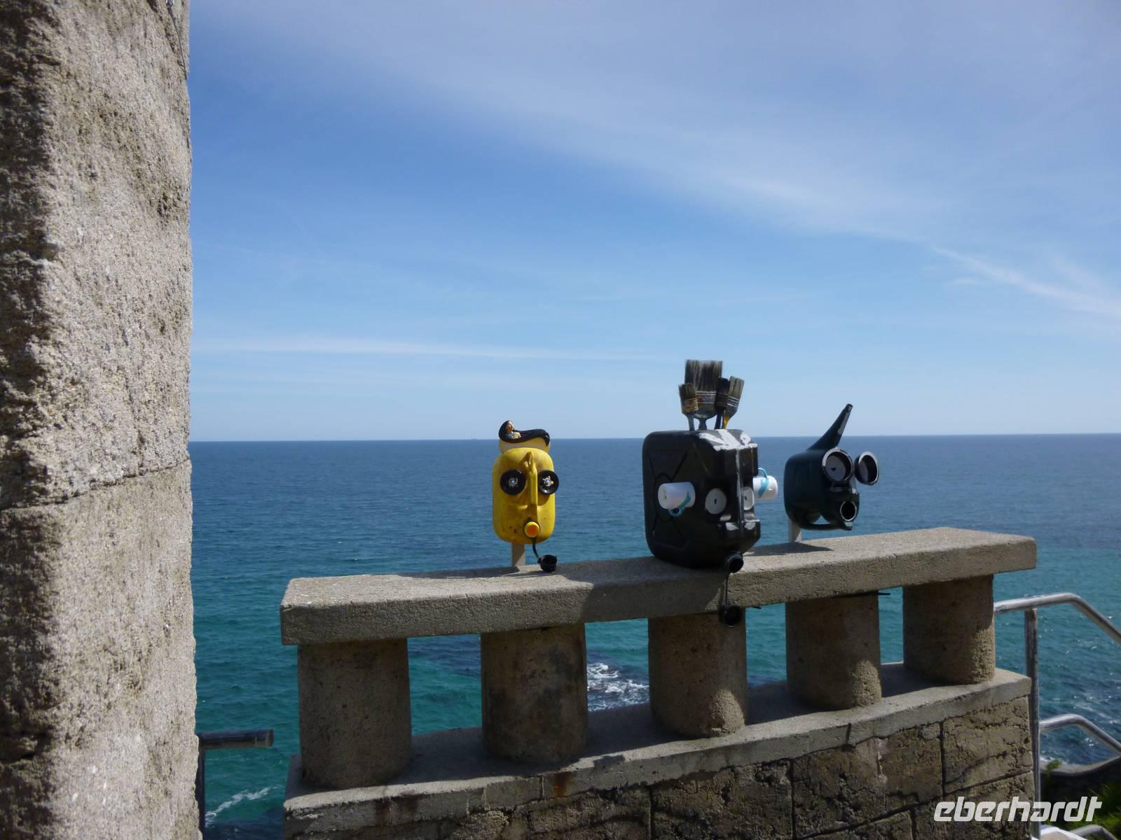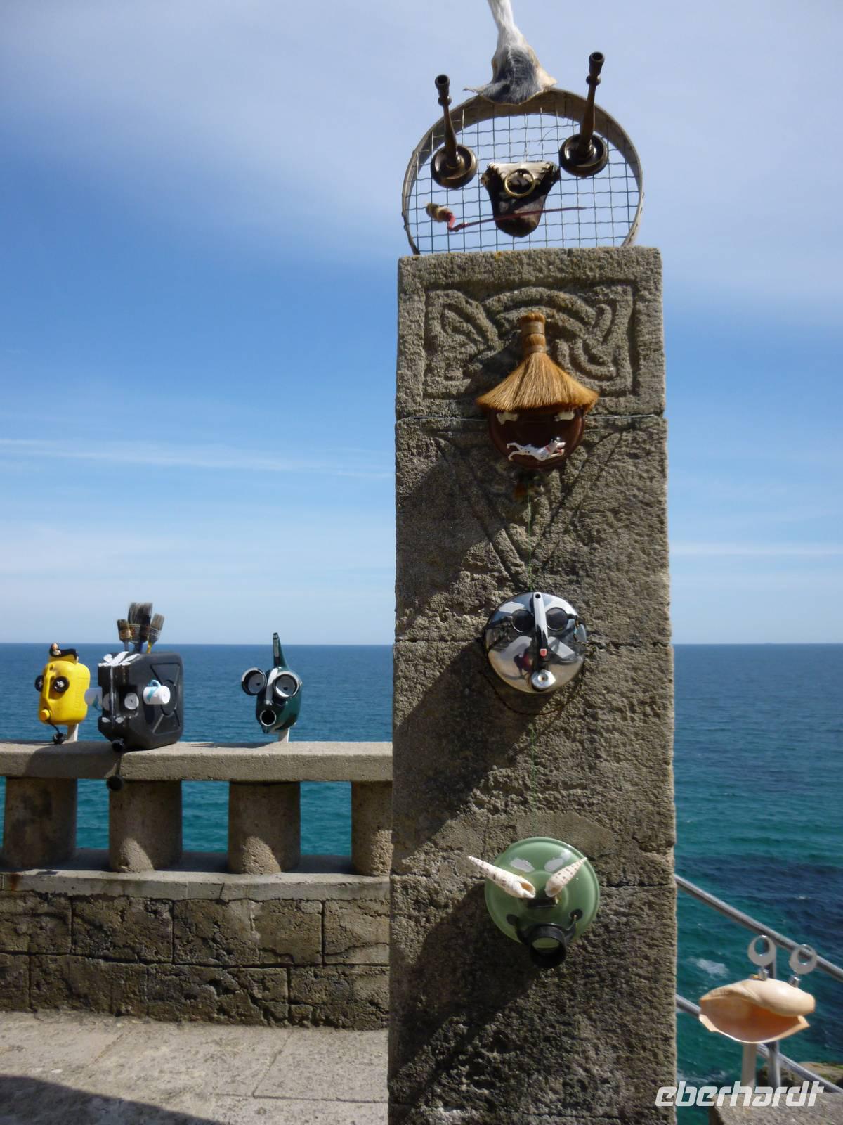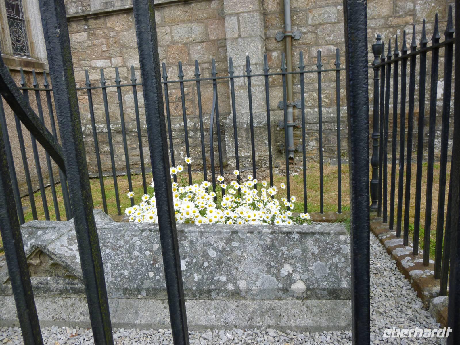 Auf dem Weg zur Burg nehmen wir die Boote durch die Flut und finden fast oben das steinerne Herz des Riesen Comoran, der die Menschen hier terrorisierte und von Jack getötet und dafür von König Artus zum Ritter seiner Tafelrunde geschlagen wurde. Nach Besuch der Räume der Familie Aubyn hatten wir einen wunderbaren Blick vom Burghof auf die Insel und die Bucht. Die Felsengärten wurden gerade von Bergsteigern saniert.