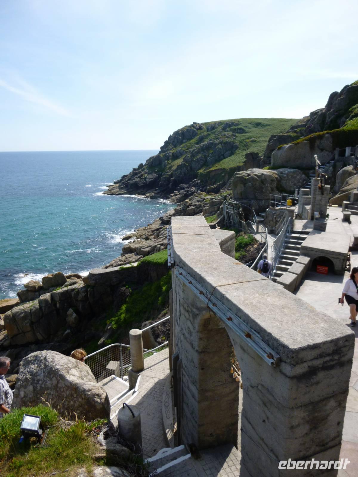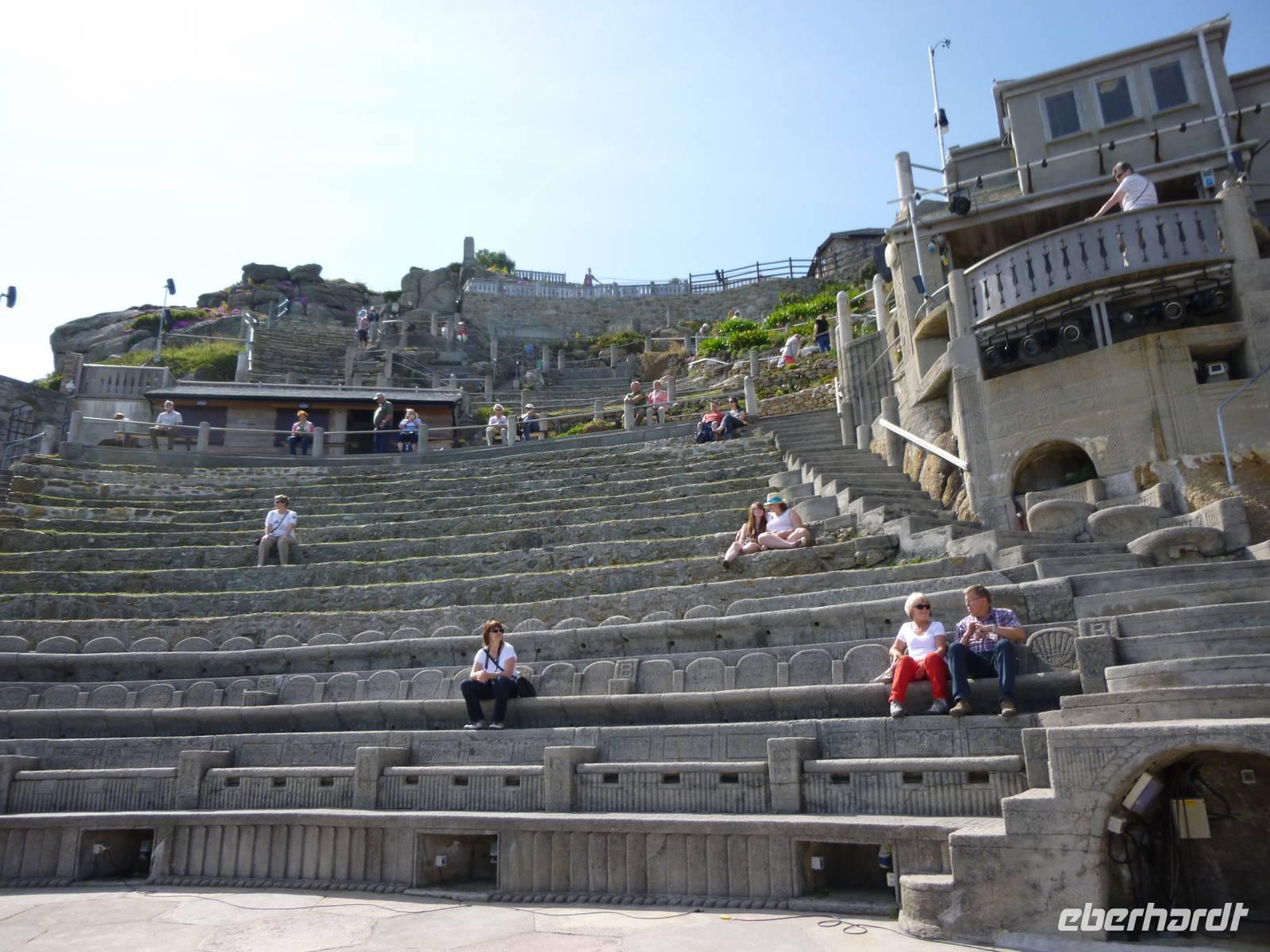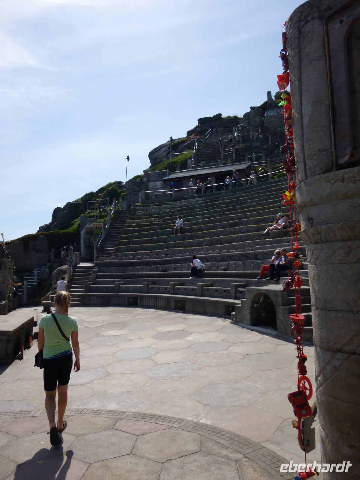 Zu Fuß liefen wir auf dem Damm zurück zum Bus und fuhren weiter nach Penzance zur westlichsten Spitze Land' s End, von den Römern "Land der Stürme genannt. Die Sicht war so klar, dass die Scillyinseln vor Lands End gut erkennbar waren - laut Artussage war das Land zwischen Kap und Landesende ein versunkenes britisches Atlantis. Doch vor König Artus Zeiten schildert der griechische Geschichtsschreiber Diodor das Kap "Belerion" so: sie (die Einheimischen) sind besonders fremdenfreundlich und durch den häufugen Umgang mit auswärtigen Kaufleuten kultiviert. Sie produzieren Zinn, das sie aus Felsen holen, in die sie Stollen treiben. Sie gießen das Metall in Barren und bringen es auf ein Insel ..., die man Ictis (Wight) nennt."Vom herrlichen Wetter inspiriert, erlebten wir das nahe gelegene mediterran anmutende Minack Theatre, von der mutigen Lady Rowena Cade errichtet und 1932 mit Shakespeares "Sturm" eröffnet und geschützt in den folgenden Zeiten knapper Kassen - ein Geheimtipp!