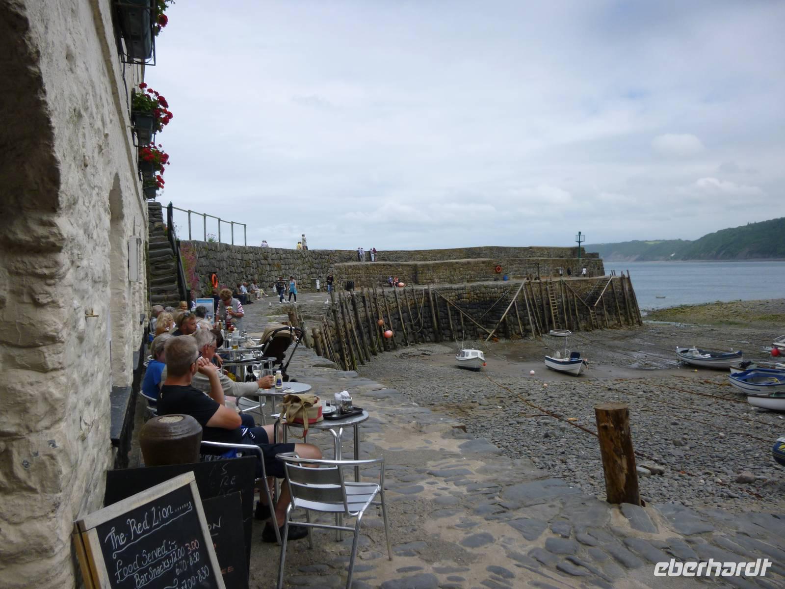 Im Hafen bietet sich ein Spaziergang auf der alten Hafenmauer aus dem 14. Jahrhundert an, ein Blick zurück zeigt eine grandiose Klippenlandschaft und Lage Clovellys östlich der Nordwestspitze Devons, dem Hartland Point. Zurück geht es mit dem Jeep und dann in unser behagliches Hotel, das wir heute noch einmal genießen.