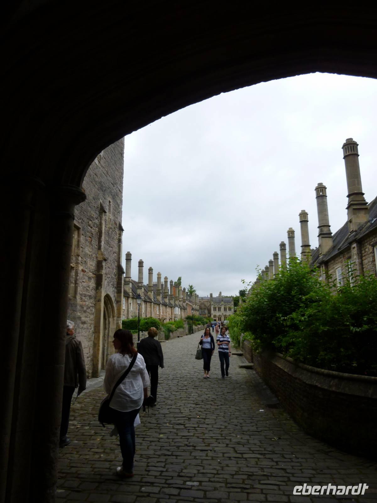 Wells Cathedral mit Chapter House und Vicars Close ist unser nächstes Ziel, wir fahren schon in Richtung der Hafenstadt Bristol. Petrus meint es noch gut mit uns und wir spzieren über den kleinen Marktplatz mit Marktkreuz zum mittelalterlichen Torhaus links neben dem Bischofspalast, dem Eingang zum Cathedrals Green, der Domfreiheit und dem Vicar's Close aus dem 14. Jahrhundert, der ersten Reihenhaussiedlung Europas für die Angestellten der Kathedrale, die bis heute dort leben. Auch die englische Schriftstellerin Virginia Woolf verbrachte dort ihren Urlaub.