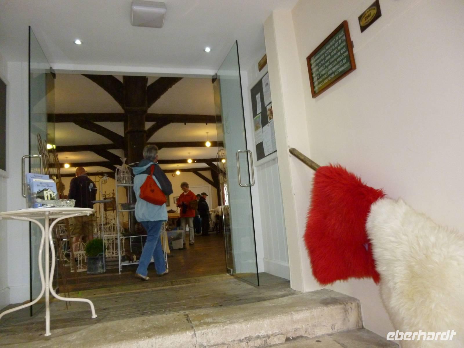 In der Kathedrale und im Kreuzgang hielten sich auch drei Tiere versteckt: einigen von uns gelang es mit viel Freude, den steineren Affen, die hölzerne Grille und die in Stein gravierte Katze ausfindig zu machen - ansonsten einfach wieder kommen :-) ...Doch nach unserer Freizeit (wir bummelten durch das North Gate im Perependicular Style zur High Street) hieß es sich sputen, denn uns erwartete bereits ein weiteres Highlight: der Cream Tea im Killerton Anwesen nahe Exeter. Für uns wurde extra länger serviert und wir konnten gemütlich unseren Tee mit Csones, viel clotted cream und Erdbeermarmelade nehmen und das Anwesen betrachten mit seinen herrlichen Anlagen, der Kapelle und den Schafherden als harmonischer Tagesausklang, bevor wir unser Hotel in Exeter erreichten.