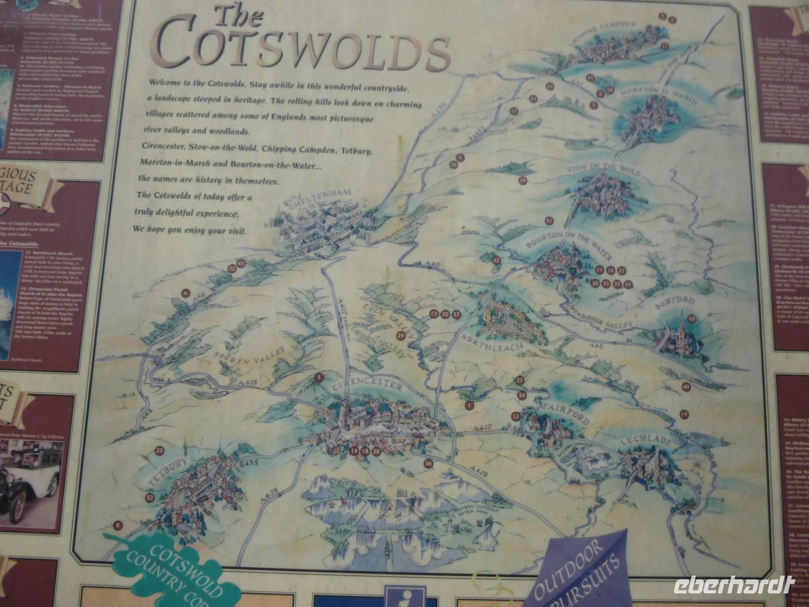 Zum Ausklang unserer schönen Reise fahren wir durch die ländlichen Cotswoldsdörfchen im Gebiet der Wasserscheide zwischen Themse und Severn. Tetbury ist ein solcher gemütlicher, erholsamer Ausflugsort mit Baptistenkirche, kleinem Markt und gepflegten Geschäften, bevor es auf die Autobahn Richtung Londoner Ring nach Dover geht. Wir erreichen unsere Fähre pünktlich trotz zähem Verkehr um London und erreichen bei Nieselregen, mäßigem Wellengang und mit etwas Verspätung unser Hotel in Calais.