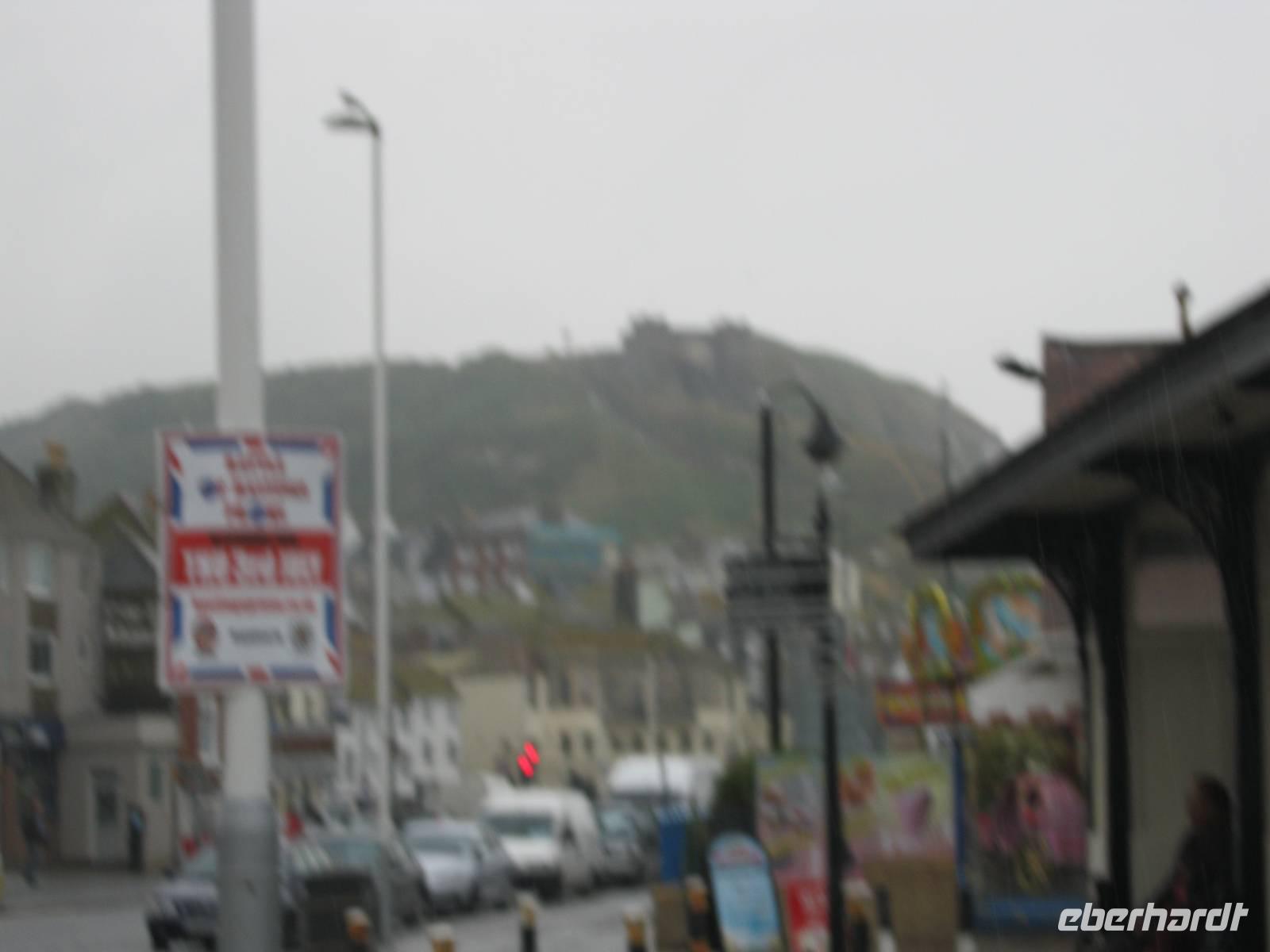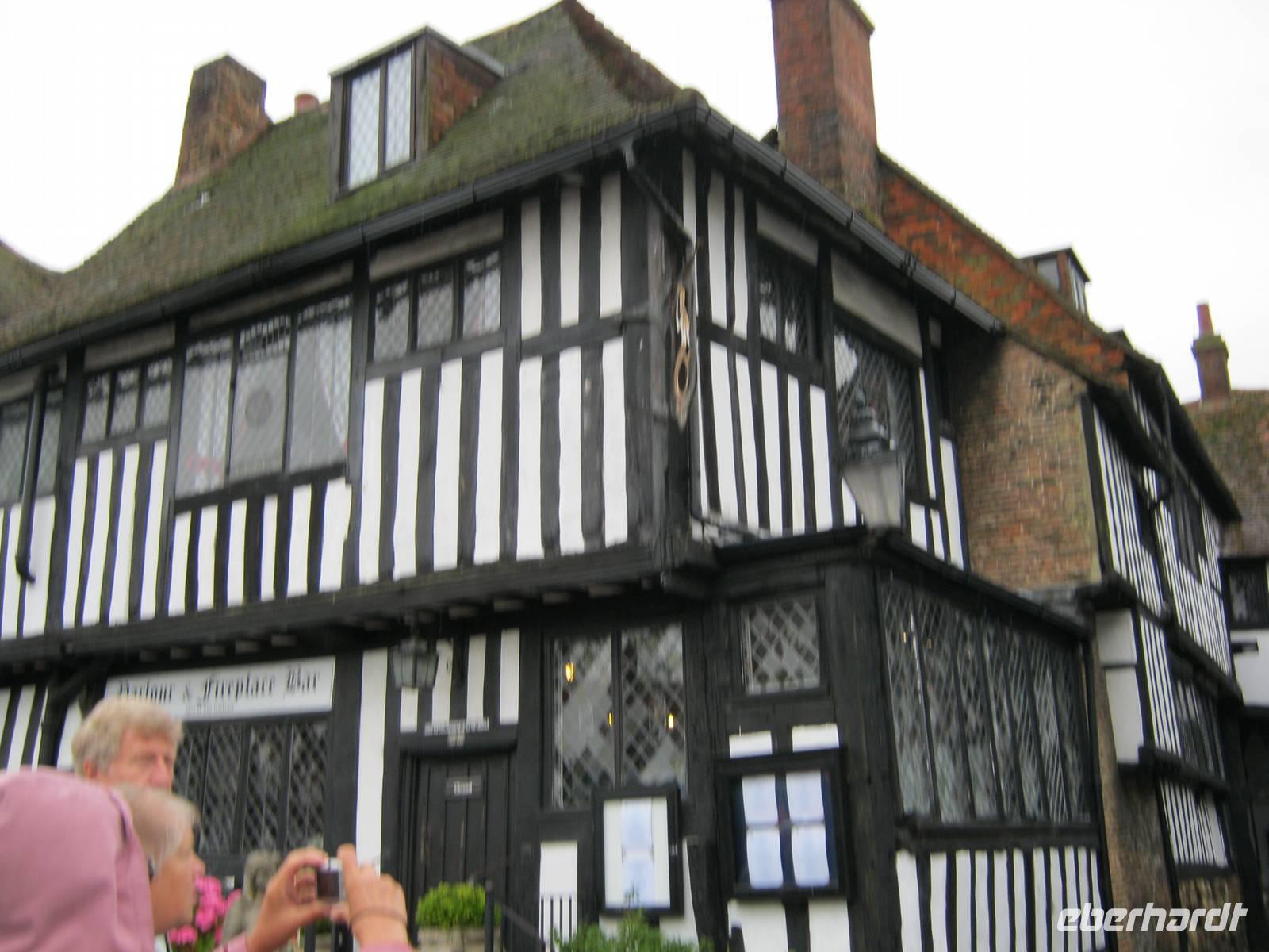 Wenigstens in Rye hatten wir Glück und konnten unseren Rundgang in dem bezaubernden Städtchen trocken absolvieren. Im Mittelalter einer der wichtigsten Häfen an der Kanalküste, liegt es heute kilometerweit landeinwärts, hat sich aber dadurch seinen Charme mit den kopfsteingepflasterten Gassen und der ältesten (?) Kirchturmuhr erhalten können. Schon in Hastings erwischte uns der Regen wieder. Das heutige beliebte Seebad ist bekannt geworden durch die in der Nähe ausgetragene Schlacht zwischen Angelsachsen und Normannen, mit deren Sieg die Weichen für die Geschichte Englands (und auch die Sprachentwicklung) bis heute gestellt wurden.