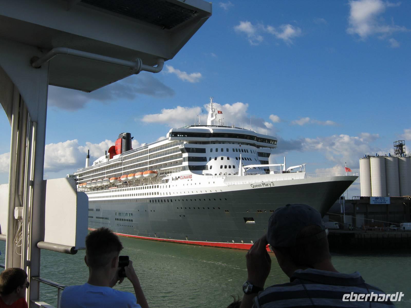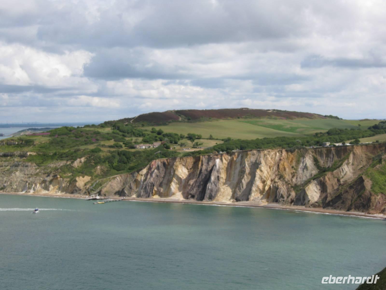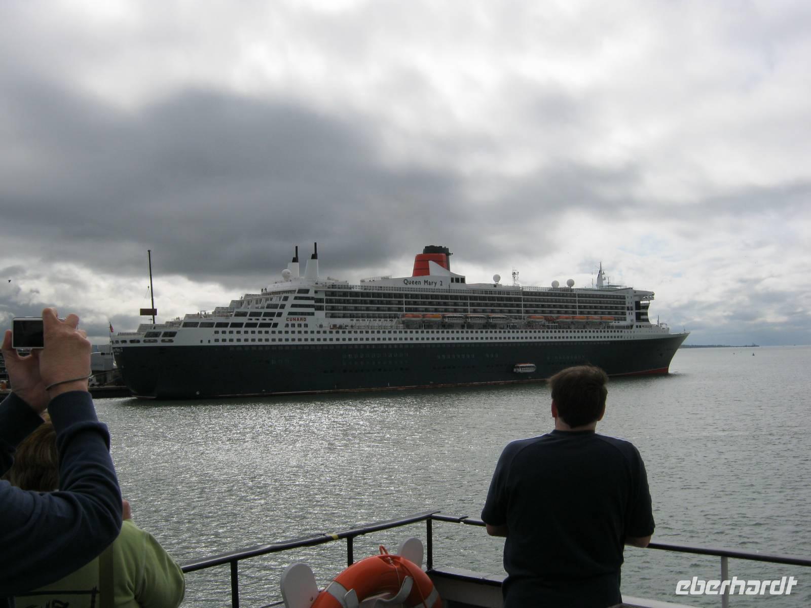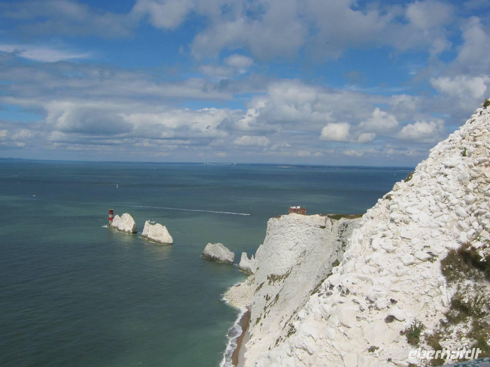 Die Isle of Wight ist ein durch ihre Lage klimatisch begünstigtes Fleckchen Erde. Während der Überfahrt passierten wir die am Kai liegende Queen Mary II, eines der größten Kreuzfahrtschiffe der Welt. Die Insel hat so viel Reizvolles zu bieten, dass es schwerfällt, die notwendige Auswahl zu treffen. Wir entschieden uns für drei Programmpunkte. Ein Muss sind auf jeden Fall The Needles, drei einzeln im Meer stehende Kreidefelsensäulen an der Westspitze der Insel - ein wunderbarer Anblick besonders bei Sonnenschein und Gelegenheit, einen Spaziergang zu unternehmen und die vielfältigen Angebote des Besucherzentrums zu erkunden. Die Produkte einer traditionellen Bonbonmanufaktur (z.B. Humbugs) haben wir auf der Weiterfahrt gekostet. Shanklin, dessen Ortskern von pittoresken reetgedeckten Cottages dominiert wird, hat eine dieser für die Insel typischen Chines aufzuweisen, in deren schattiger Kühle man hinunter zum Strand spazieren kann. Godshill ist wie eine Filmkulisse. Die Bausubstanz von Jahrhunderten ist komplett erhalten und belebt. Es lohnt sich ein Gang hinauf zur Dorfkirche, zumal man auf dem Rückweg im Schokoladenparadies landet.