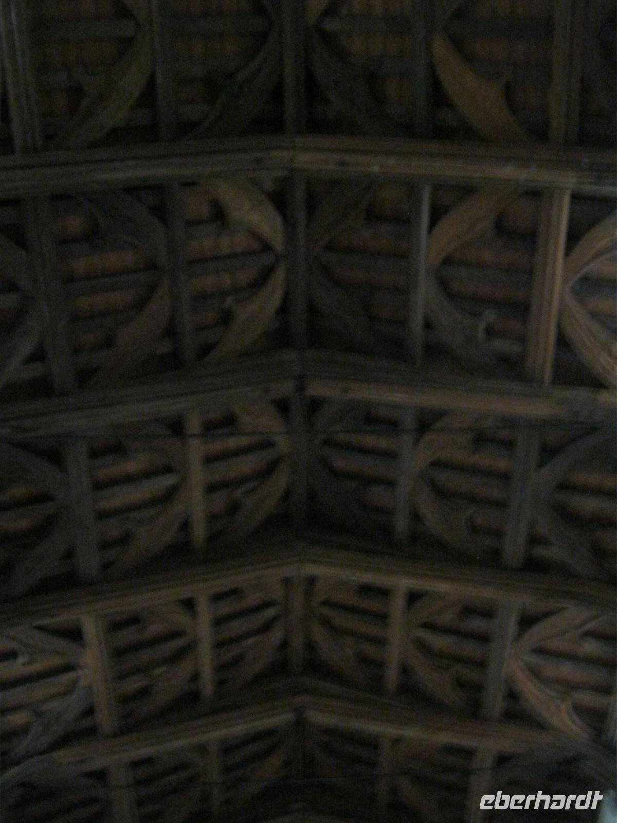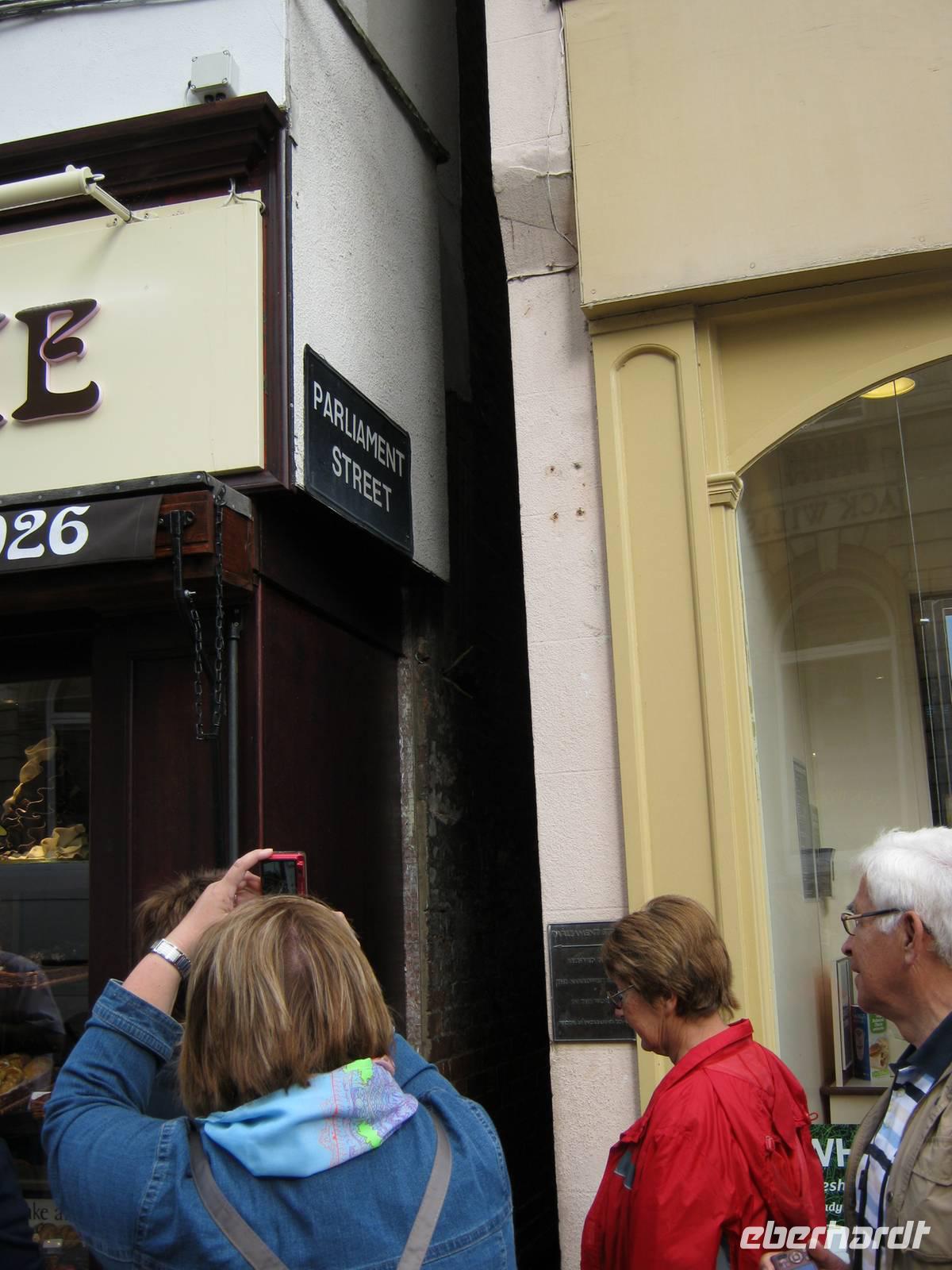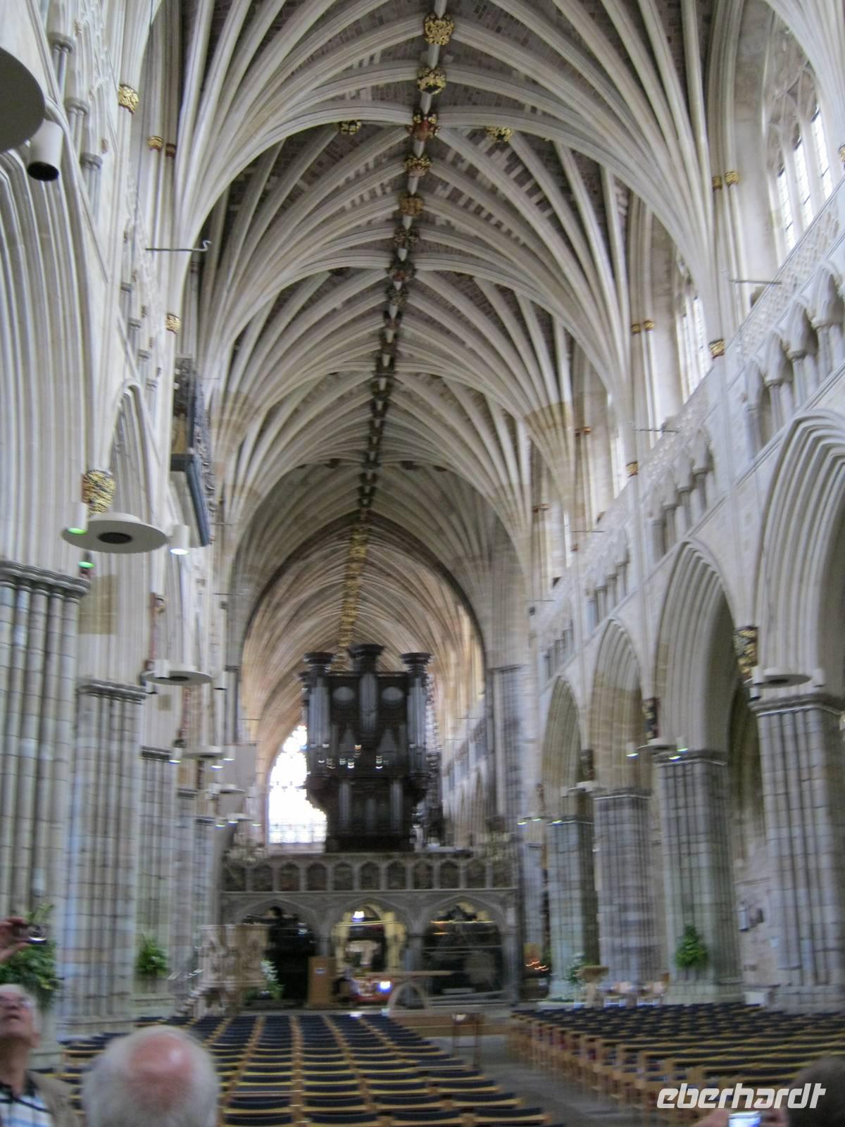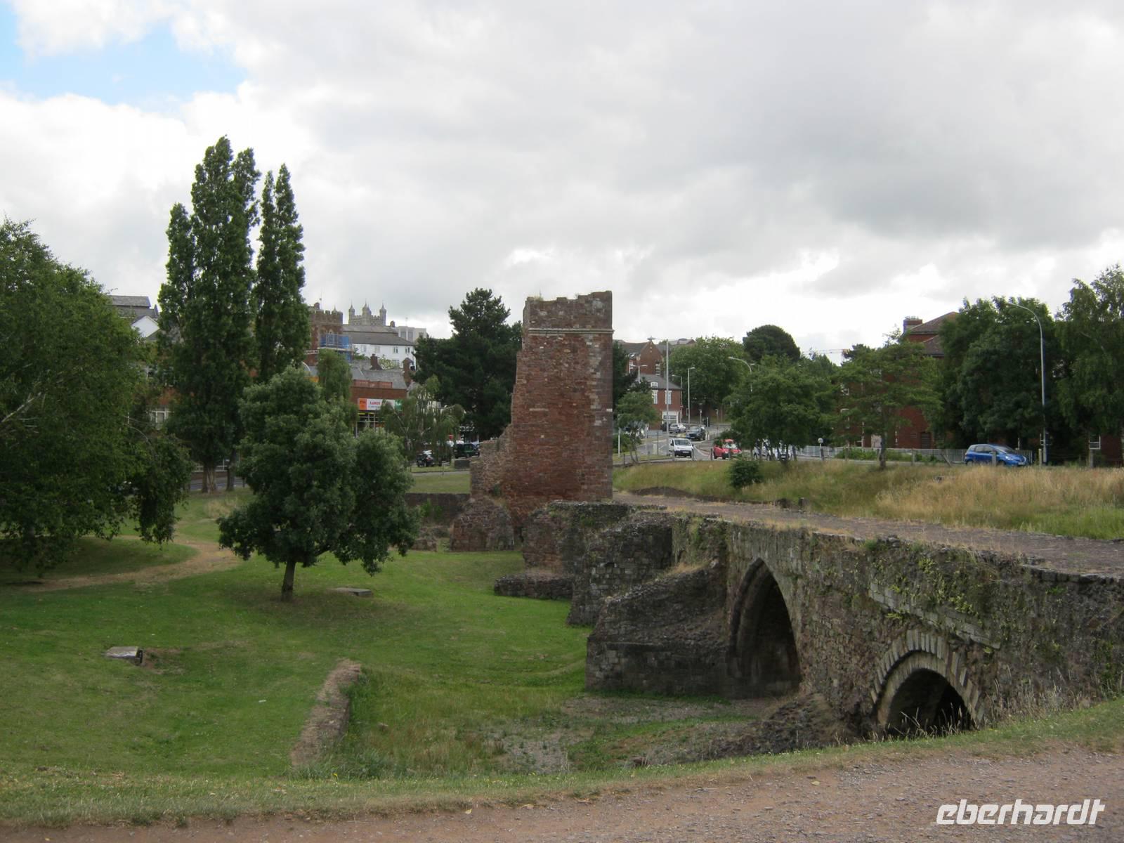 Das auch ein Ketten-Hotel für die Gäste erfreulich gut funktionieren kann, bewies man uns in Exeter. Von den Resten der römischen Stadtmauer die High Street hinunter in Richtung der ehemaligen Hafenanlagen, die heute vielfältig anderweitig genutzt werden, liegt jede Menge sehenswertes am Wege: in den Nachkriegsneubauten integriert die Ruinen eines Klosters, die Stammkneipe von Sir Francis Drake und wieder eine wunderschöne Kathedrale mit dem angeblich längsten gotischen Rippengewölbe der Welt. Dazu die immer noch funktionierende Guild Hall, sowie eine Straße, die so schmal ist, das man nicht einmal mit dem Fahrrad durchkäme. Vor einer Konditorei bot man uns eine Kostprobe köstlichen Mandelgebäcks an - Gastfreundschaft ist wundervoll. Die nette Verkäuferin ist übrigens Slowakin. An der verabredeten Stelle nahm uns der Bus auf; Steffen wie immer zuverlässig. Und ab ging's ins Dartmoor. Diese legendäre Landschaft ist zumindest heutzutage viel angenehmer als ihr Ruf - bis auf die schwierigen Straßenverhältnisse: schmal, mit Hohlwegen und Hecken, die dem Chauffeur seine ganze Kunst abverlangen. Moretonhampstead ist ein typischer Marktflecken, in dem die Zeit stehen geblieben zu sein scheint. Der dortige Gemischtwarenladen erweckt Erinnerungen an die Kindheit. In dem Weiler Postbridge befindet sich das Nationalparkzentrum und neben der für Postkutschen geeigneten schönen Bogenbrücke findet sich eine der berühmten Clapper Bridges, die früher vom Getrappel der Hufe der Tragtiere für den Transport des Erzes widerhallten. Heute beliebtes Fotomotiv. Ebenso wie das berüchtigte Dartmoor Prison. Im Vorbeifahren sahen wir an der Straße nicht nur viele Schafe sondern auch Dartmoor Ponies. Von der Hochfläche hinab ging's über Tavistock, eine der Stannary Towns, deren heutiges Erscheinungsbild von Francis Duke of Bedford geprägt wurde, dessen Statue den halbrunden Marktplatz schmückt. In einem Kreisverkehr das Standbild des berühmtesten Sohnes der Stadt: Sir Francis Drake.