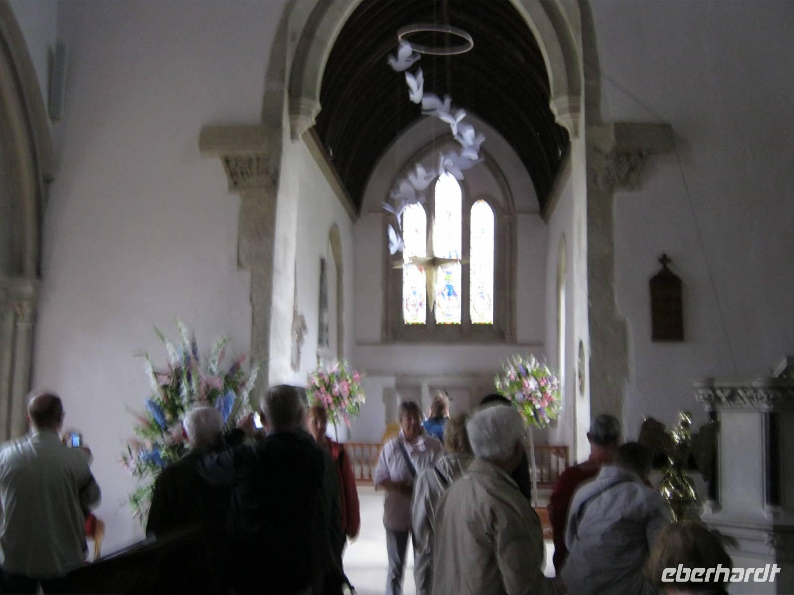 Der dritte Tag brachte uns in mehrerlei Hinsicht in ganz enge Verbindung zur englischen Geschichte. Am Vormittag besuchten wir Arundel Castle, den Sitz der Herzöge von Norfolk, einer der wenigen katholischen Familien des englischen Hochadels. Deshalb findet sich in der weitläufigen von Parks und Gärten umgebenen Anlage auch eine geteilte Kirche: der eine Teil ist die protestantische Pfarrkirche St. Nicholas und hinter dem trennenden Lettner liegt die Familiengruft der Howards. Im Park war wieder einmal Event. Im Bergfried erfährt man viel über die Struktur eines solchen mittelalterlichen Wehrbaus und hat von den Zinnen einen grandiosen Blick über das umliegende Land. Aber man muss schon etliche Stufen hinaufsteigen.