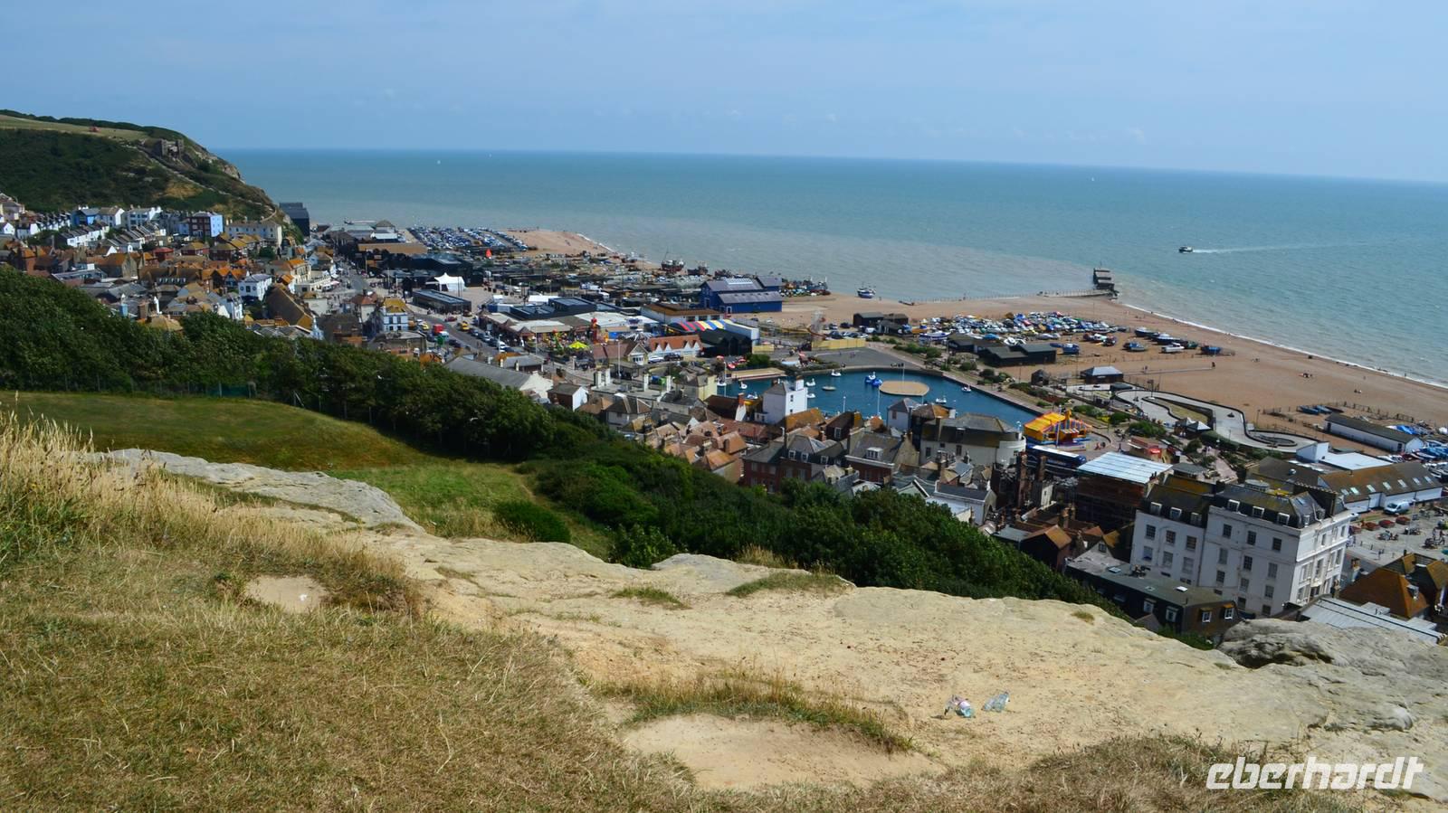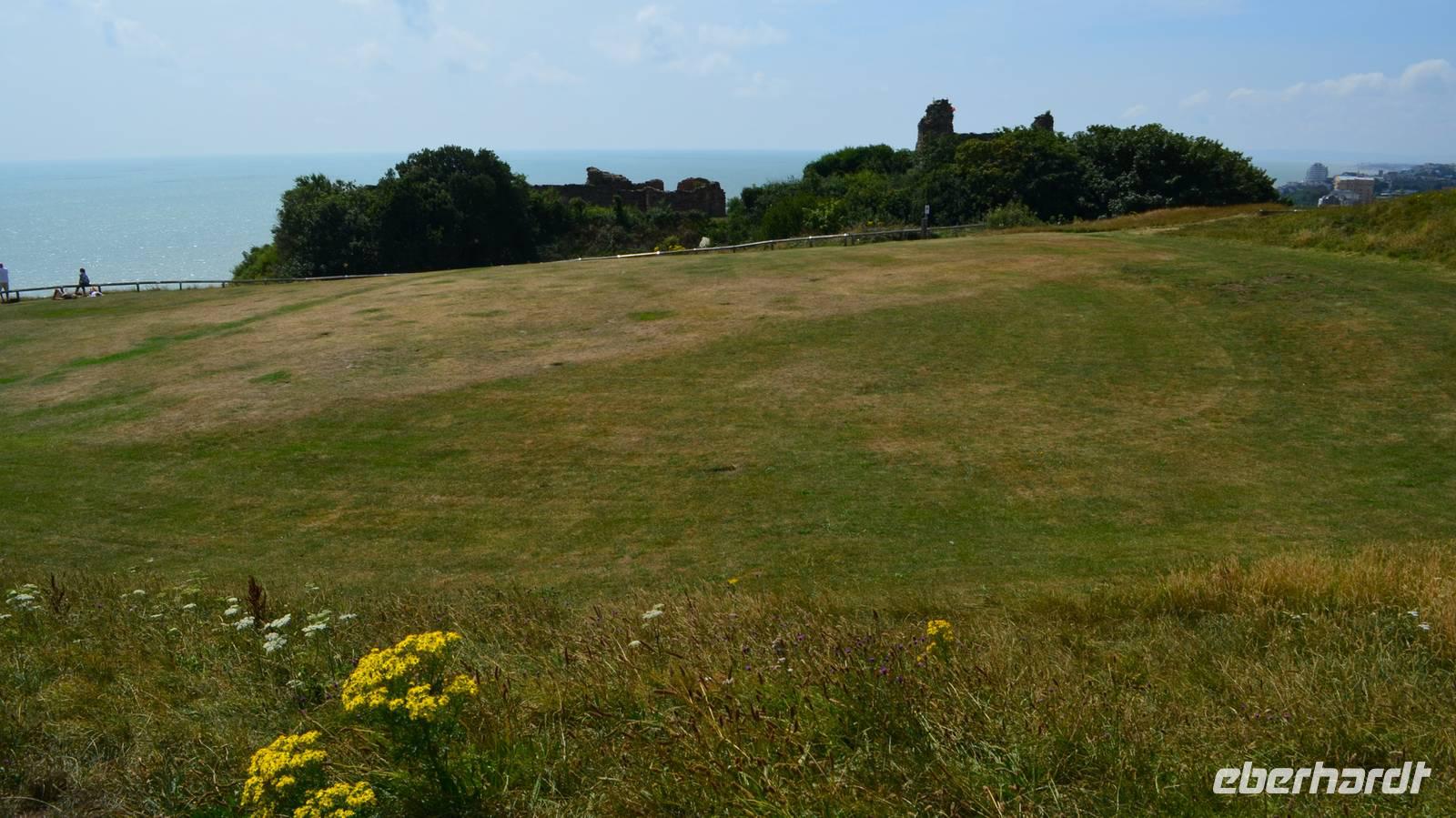 In Hastings machten wir auf dem West Hill mit der Ruine des Normannenpalastes halt. Herrlich die Aussicht von hier oben, hinüber zum East Hill und hinunter auf die Uferpromenade.