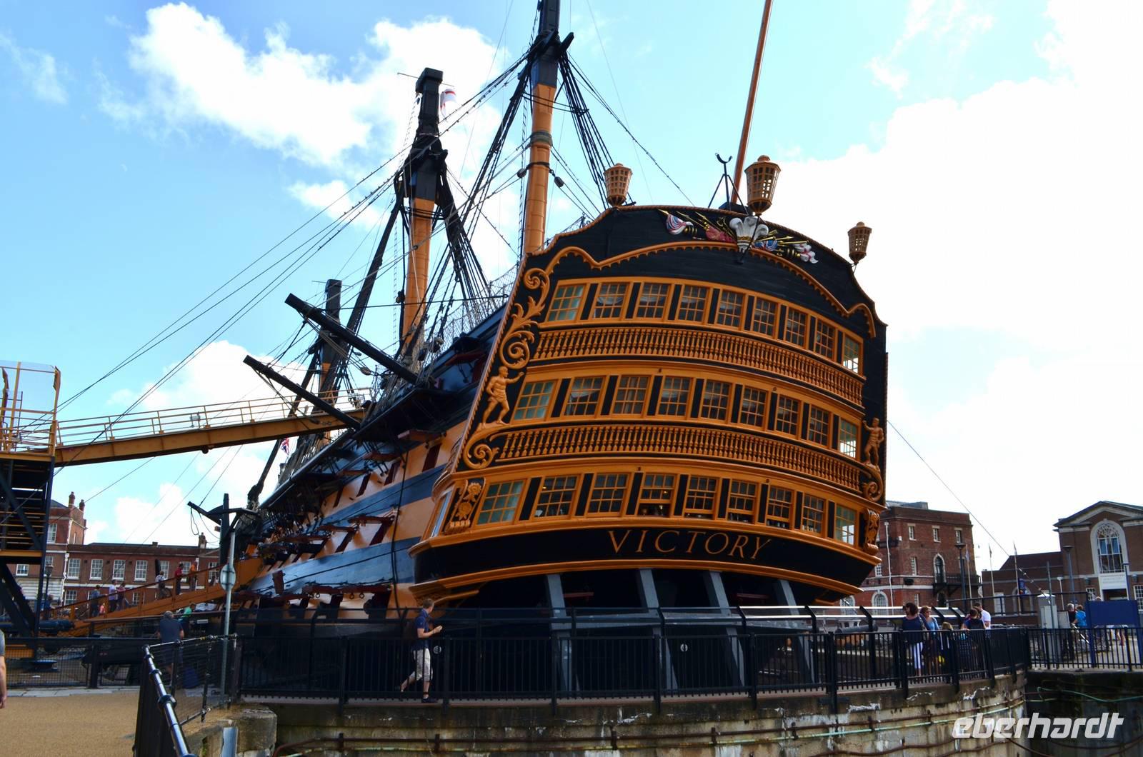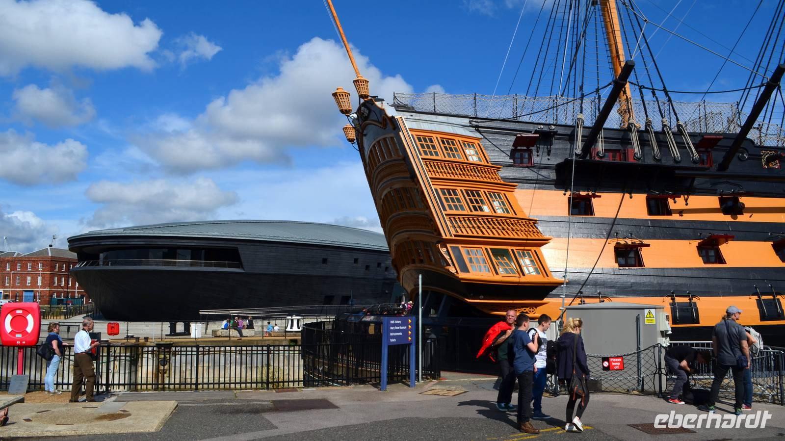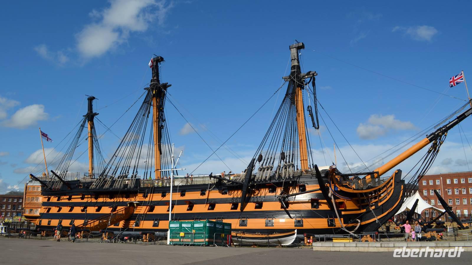 Nach diesem schönen Erlebnis fahren wir nach Portsmouth weiter, der Stadt mit dem größten Marinestützpunkt Großbritanniens. Hier wollen wir zu den Historischen Docks und spazieren gemeinsam zu Ihrer Majestät Schiff (HMS) „Victory", um das alte Kriegsschiff Admiral Nelsons zu besichtigen. Die Karten gelten auch für das Marine-Museum und das Victory-Museum mit der Multimediashow. Wer noch Zeit fotografiert die HMS „Warrior" oder klettert auf den futuristischen Spinnaker Tower am Hafen. Am Abend nur noch die Fahrt zu unserem Holiday Inn Hotel in Fareham.