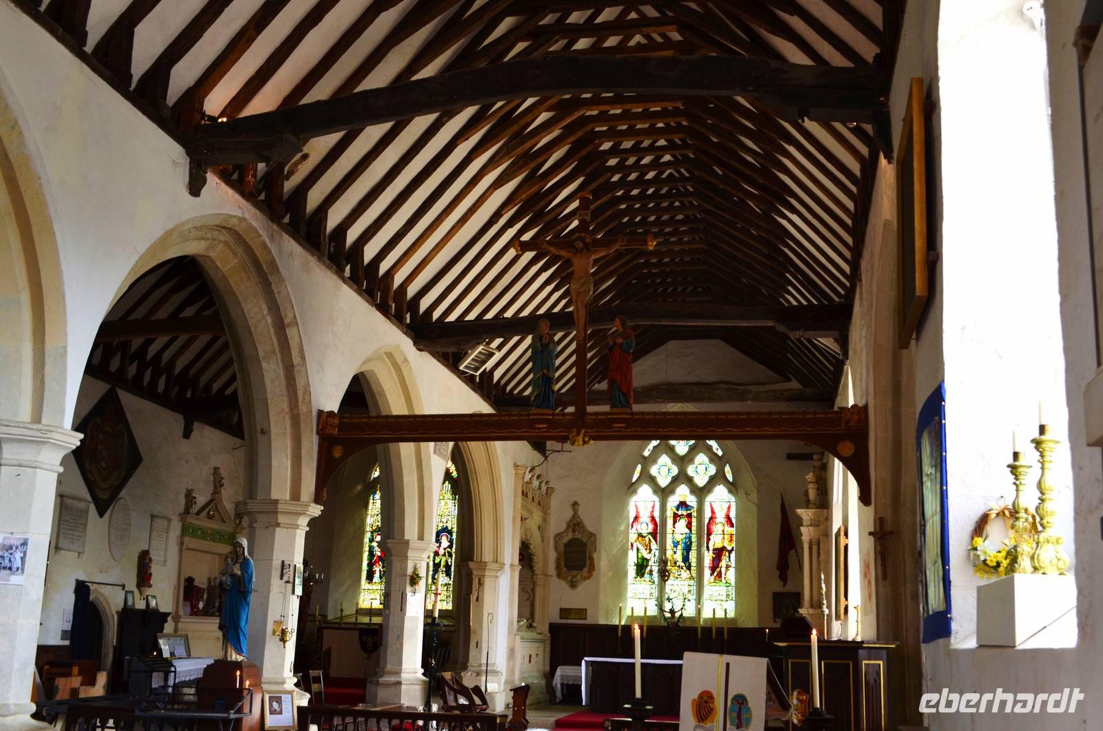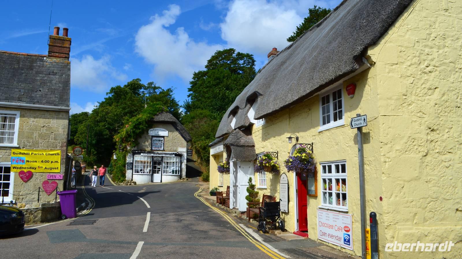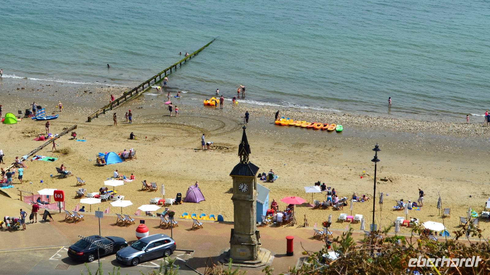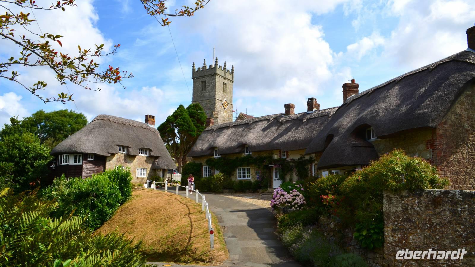 Bei der Besichtigung von Godshill erleben wir zuerst Austin-Oldtimer auf dem Parkplatz, dann machen wir einen gemeinsamen Spaziergang zur Kirche, wo glücklicherweise kurz eine Besichtigung möglich ist und bewundern danach die idyllischen mit Ried gedeckten Cottages. Die Weiterfahrt nach Shanklin erfolgt so, das wir dort zum Mittag ankommen. Hier können wir das Piratenversteck Shine Chine besichtigen oder einen Rundgang Richtung Beach, Promenade und der Old Village machen, bevor wir unsere Panoramatour entlang der Südküste fortsetzen. Am späten Mittag erreichen wir schließlich den Parkplatz neben der Black Chine, von deren Klippen wir einen wunderschönen Ausblick über die Freshwaterbay haben.