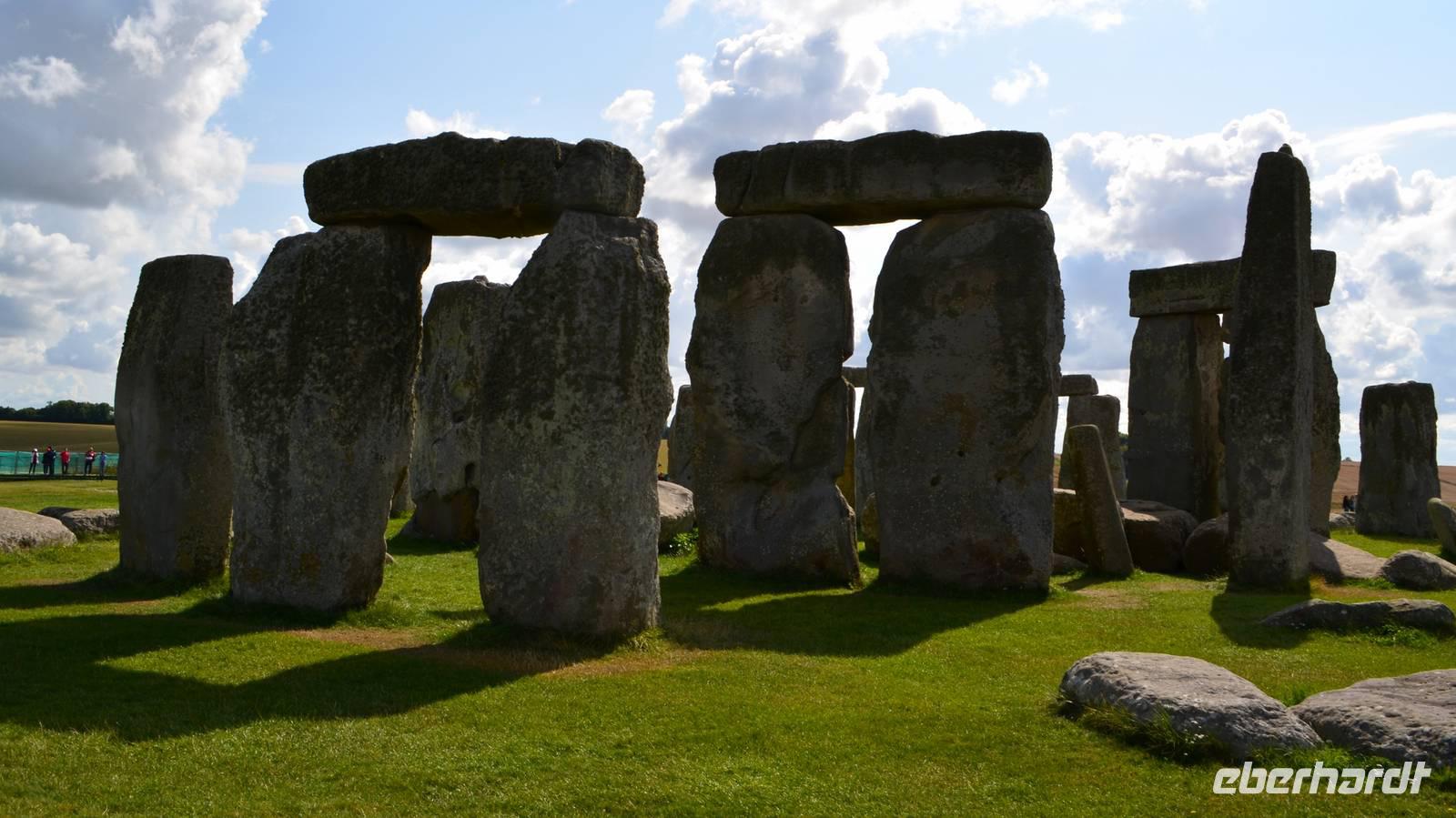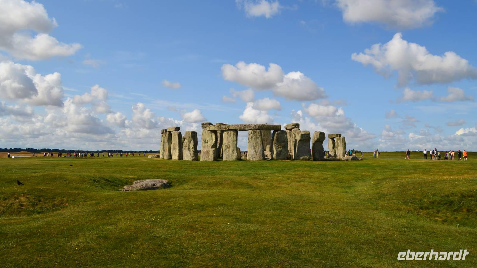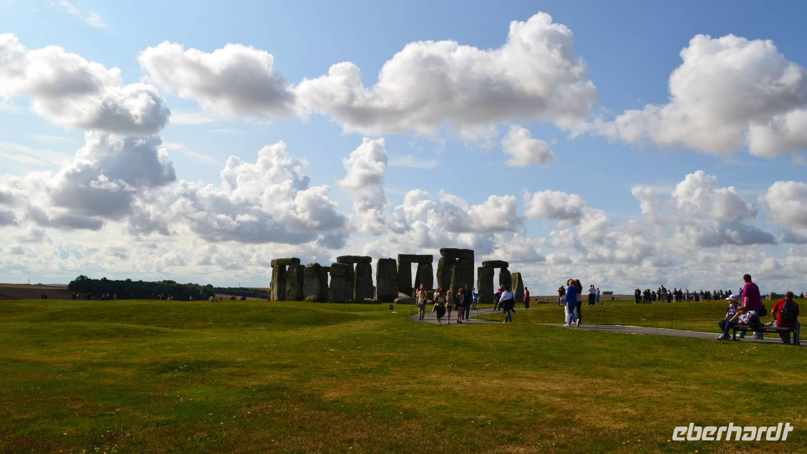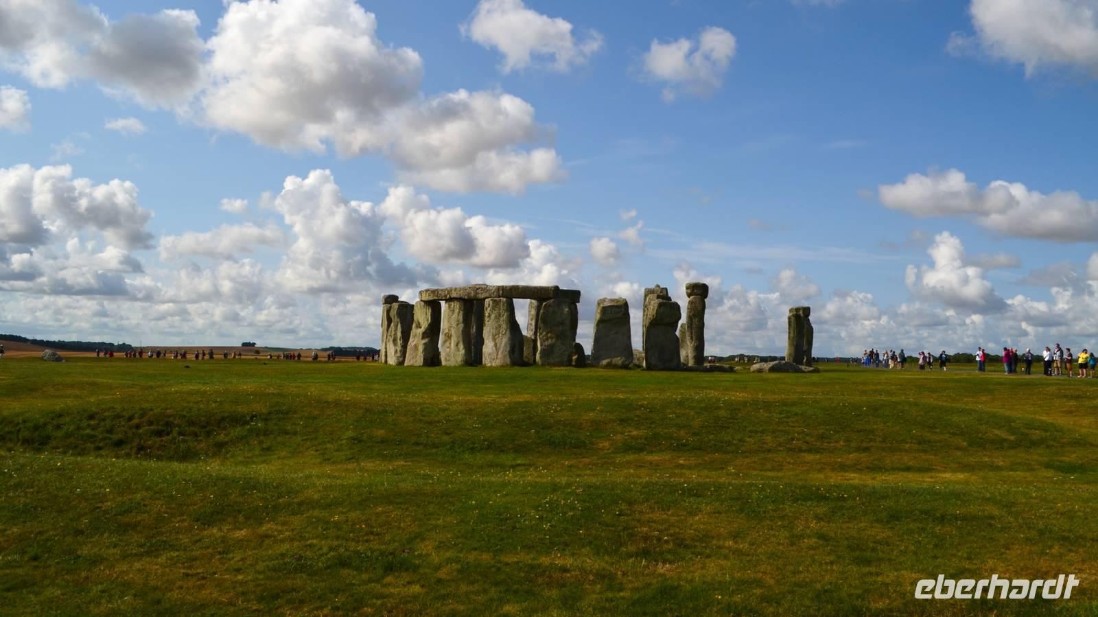 Auf den heutigen Tag haben viele Reisegäste mit Spannung gewartet - wir besuchen den mystischen Ort Stonehenge mit seinem jahrtausendealten Steinkreis. Das Wetter ist teils heiter, teils bewölkt und schön. Trotzdem wir zeitig da sind, ist die Anlage schon von den ersten Touristenströmen umgeben. Nur etwas abseits ist Ruhe zum stillen Betrachten und Erfassen der umliegenden Landschaft mit ihren zahlreichen Hügelgräbern.