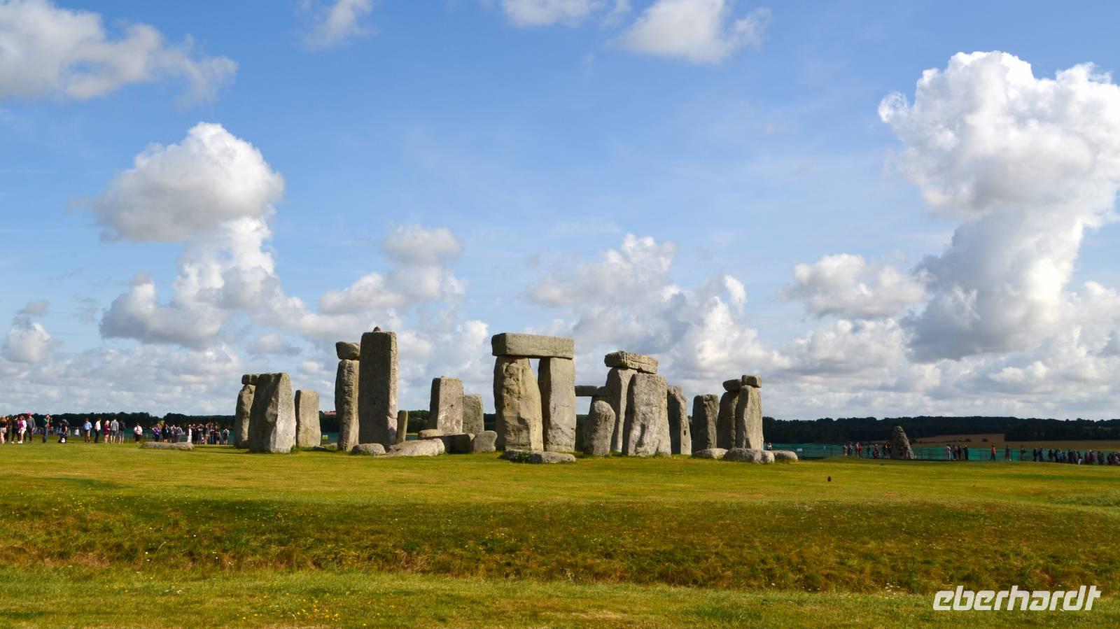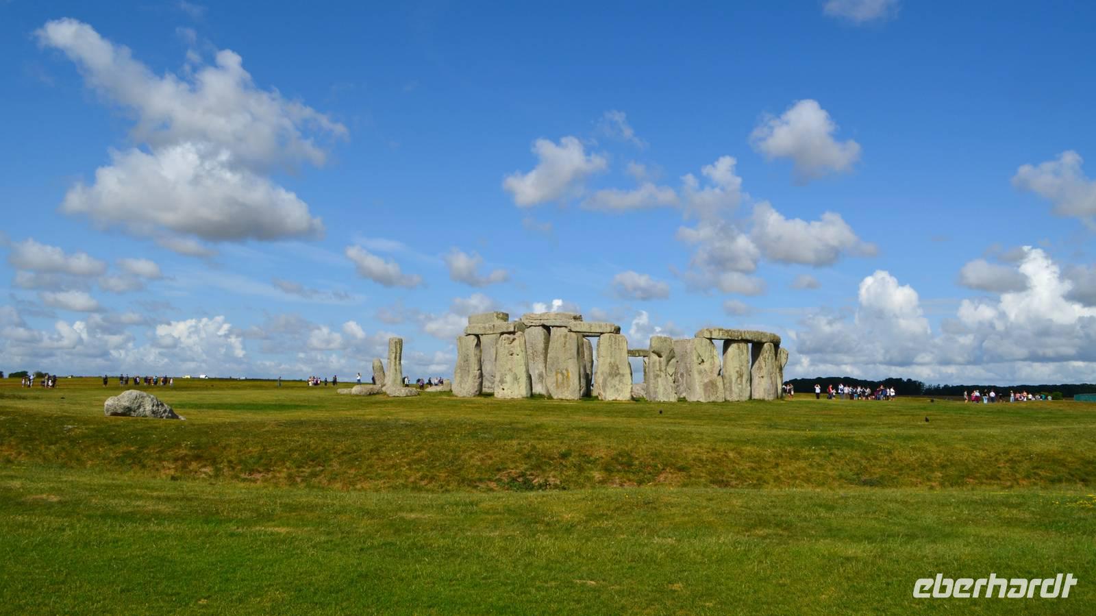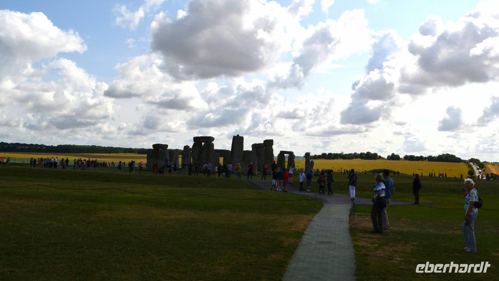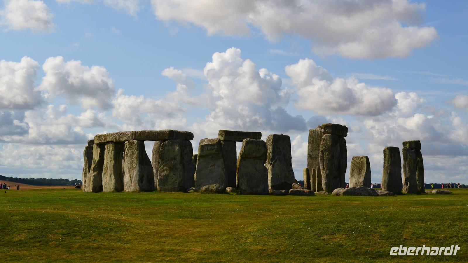 Auf den heutigen Tag haben viele Reisegäste mit Spannung gewartet - wir besuchen den mystischen Ort Stonehenge mit seinem jahrtausendealten Steinkreis. Das Wetter ist teils heiter, teils bewölkt und schön. Trotzdem wir zeitig da sind, ist die Anlage schon von den ersten Touristenströmen umgeben. Nur etwas abseits ist Ruhe zum stillen Betrachten und Erfassen der umliegenden Landschaft mit ihren zahlreichen Hügelgräbern.