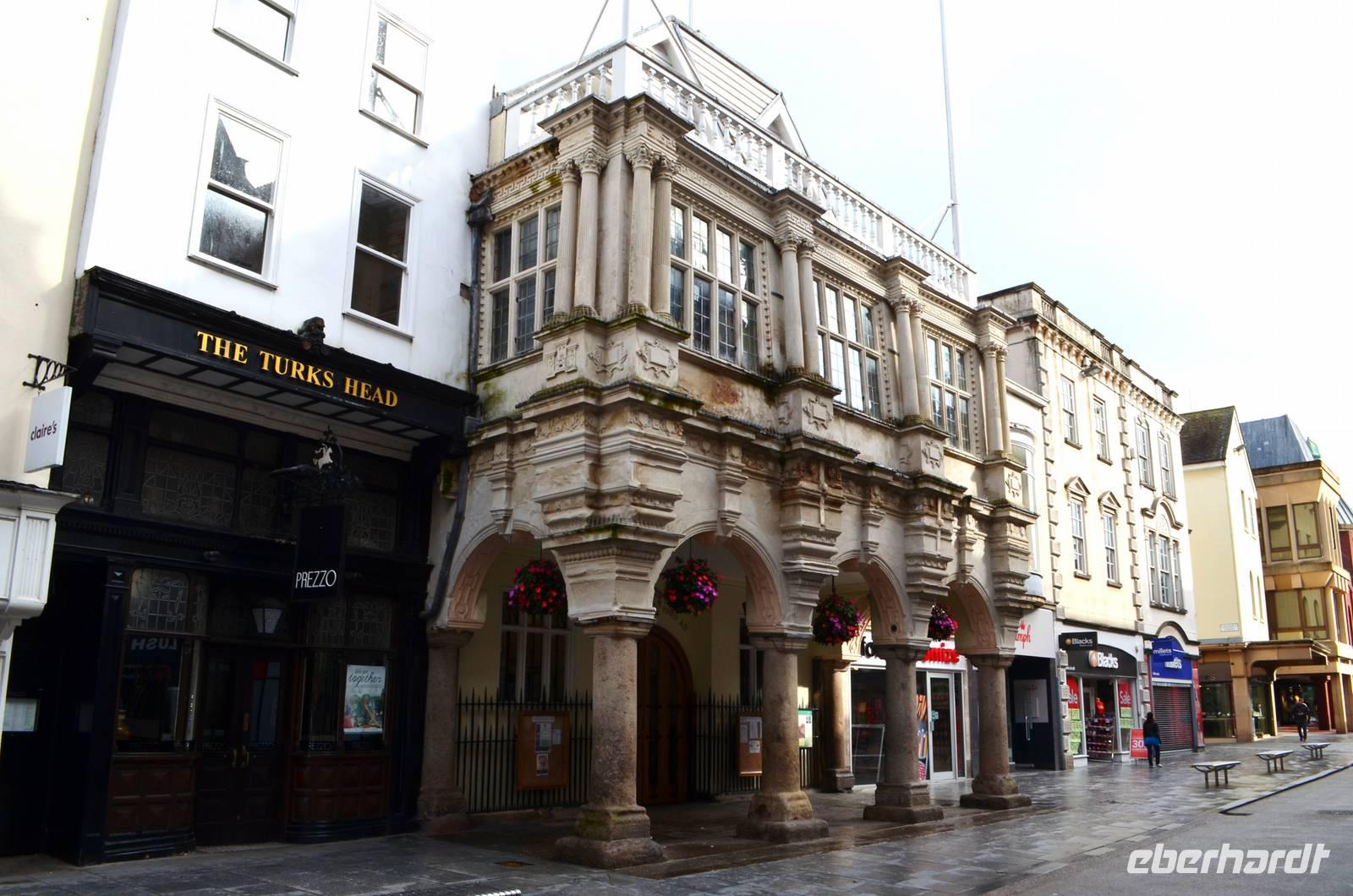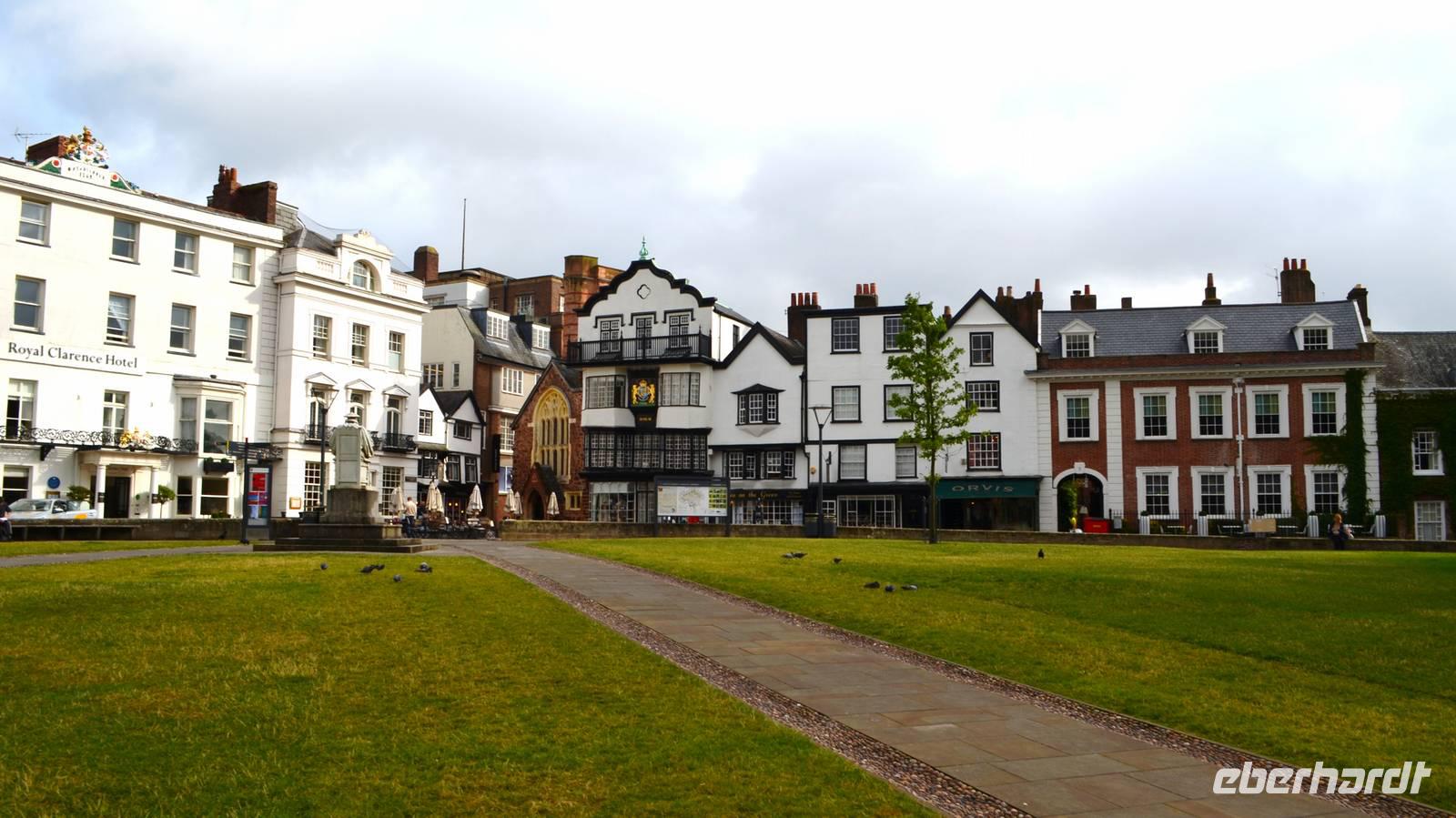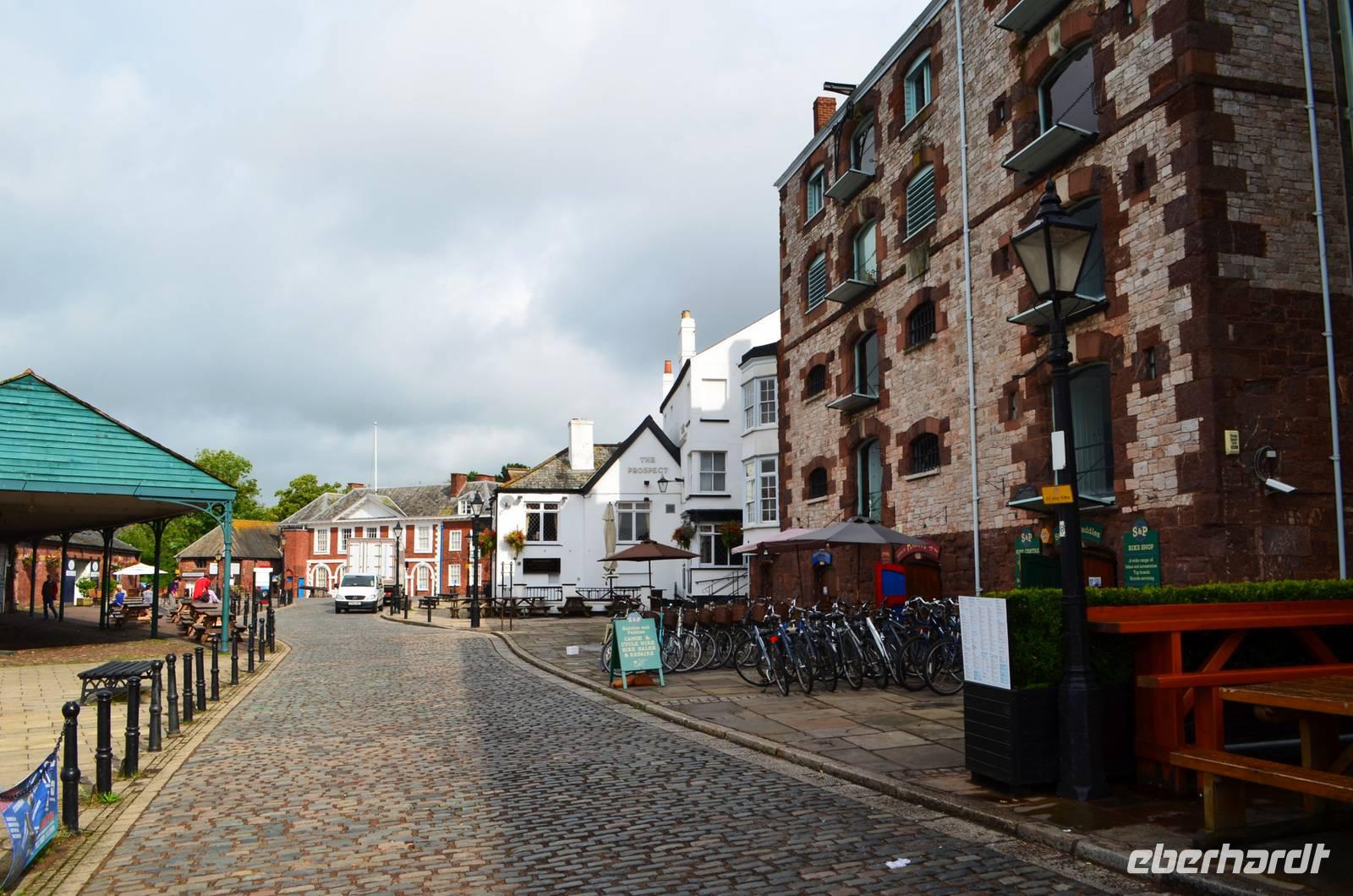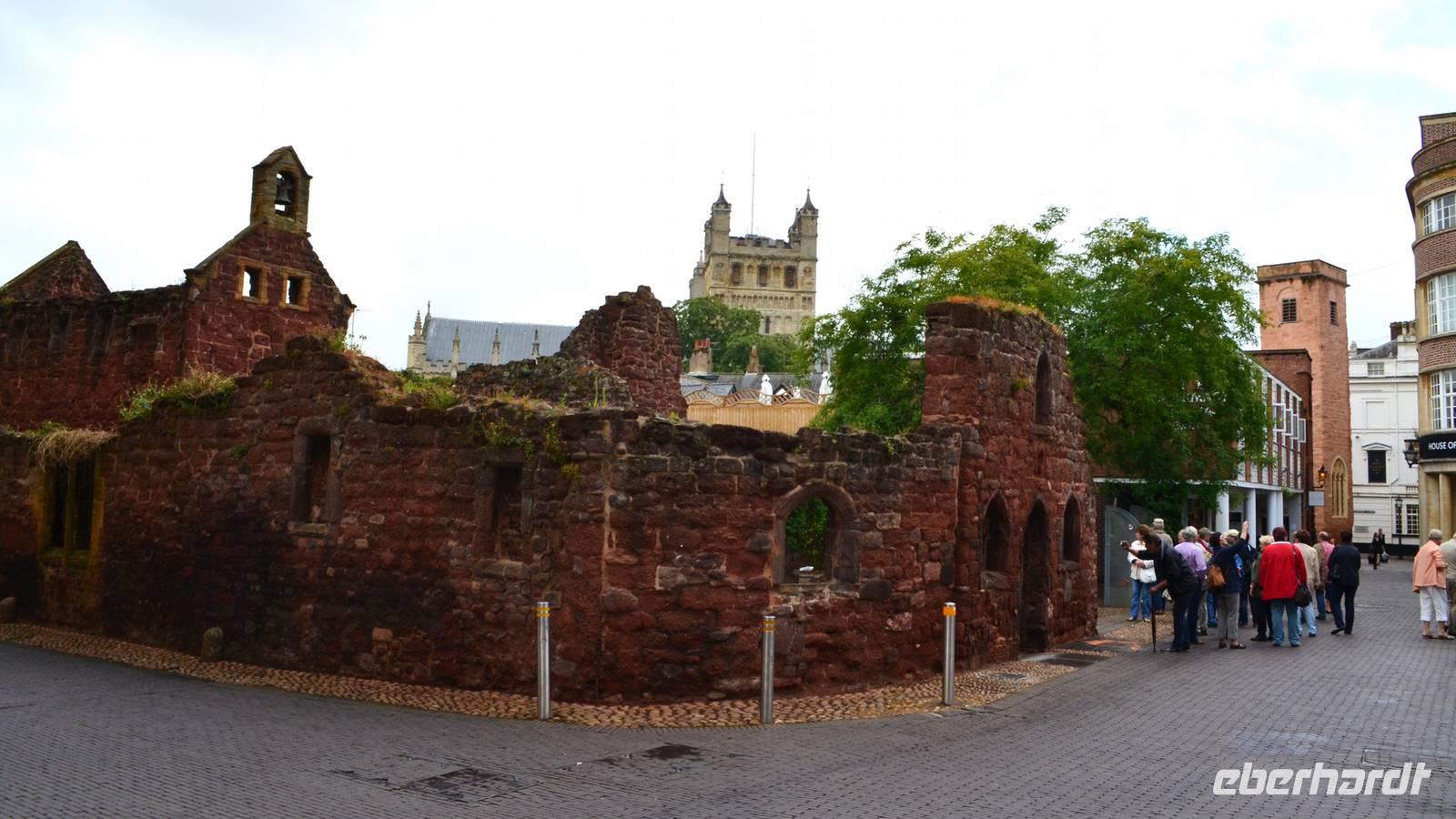 Die gemeinsame Besichtigung von Exeter ist unser erster Tagesabschnitt - wir laufen zur alten Stadtmauer, durch die Einkaufsarkaden zur Hauptstraße und zu den alten Häusern mit dem „Ships Inn", dem Dombezirk mit seinen historischen Bauten und der Cathedral mit ihrer tollen Westfassade, zum alten Rathaus und hinunter zum Hafen. Als kleine Überraschung wollen wir einen Abstecher an die englische Riviera unternehmen und steuern Dawlish an. Aber die roten Sandsteincliffs sehen wir nur hinter einem Regenschleier. Also fahren wir ins sonnige Dartmoor, machen die Einfahrt von Südosten her mit Fotostopp auf den Hügeln hinter Moretonhamstead. Nächster Fotostopp ist an der Postbridge und der daneben befindlichen Clapperbridge. Nach dem Mittag probieren wir heute den für Südengland typischen Old-Navi-Rum und trinken auf die alten englischen Seefahrer.