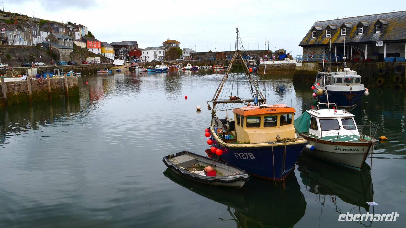 Vom kleinen Geburtsort Sir Francis Drake´s fahren wir Richtung Plymouth weiter, passieren die Tamar-Bridges und erreichen damit Cornwall. Vorbei an St. Austill, der Porzellanstadt, fahren wir zum Hafenstädtchen Mevagissey - einem sehr schönen und idyllischen Hafen mit Mole und schöner Sicht auf die Steilküsten von Cornwall, wo wir den Nachmittag verbringen.