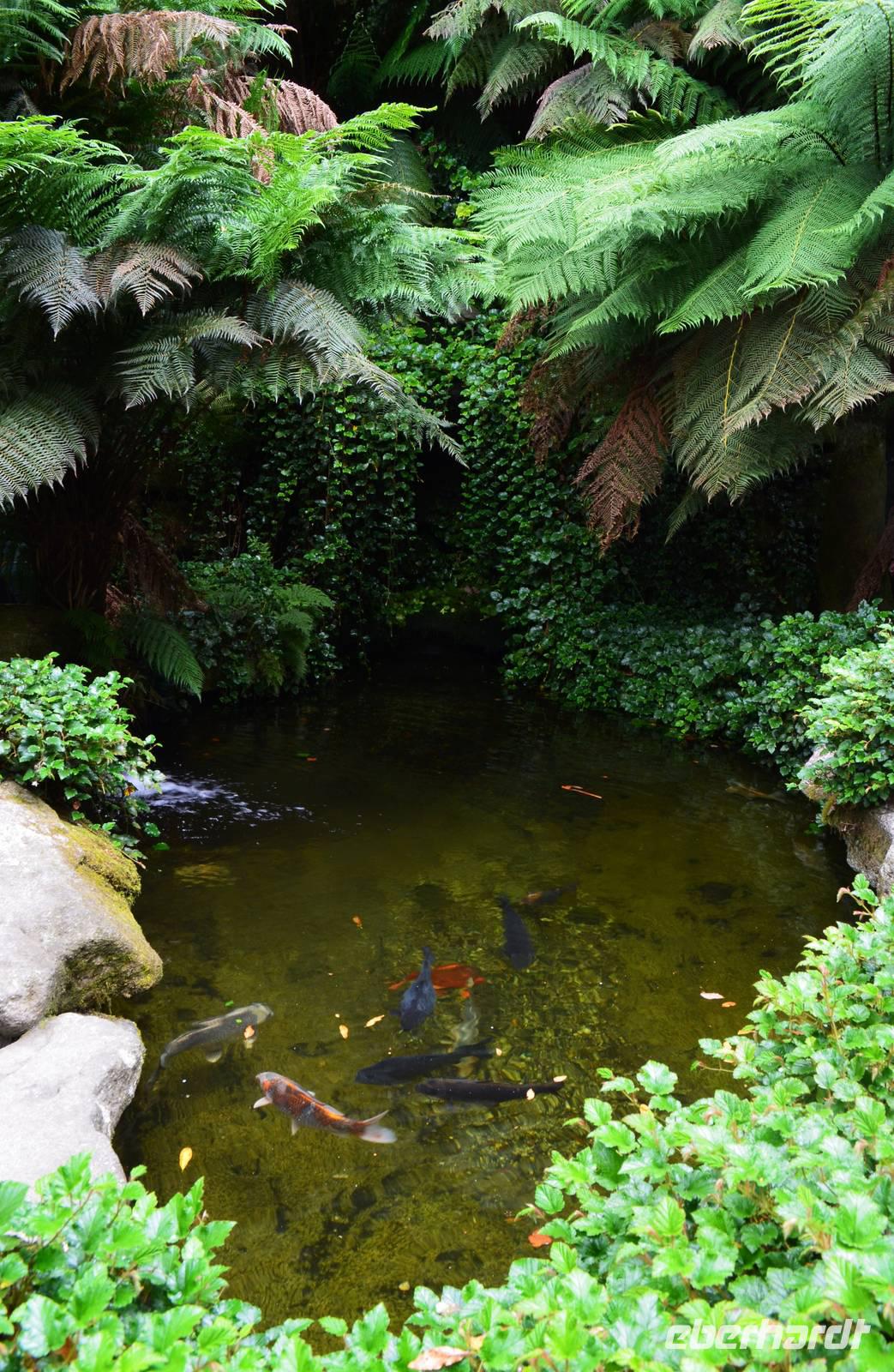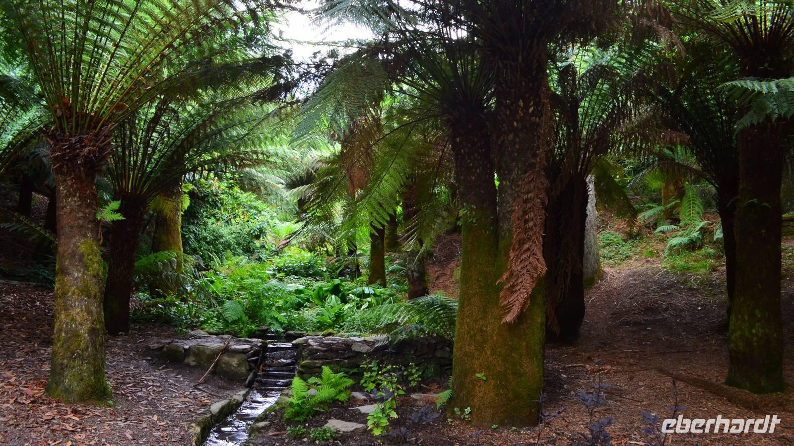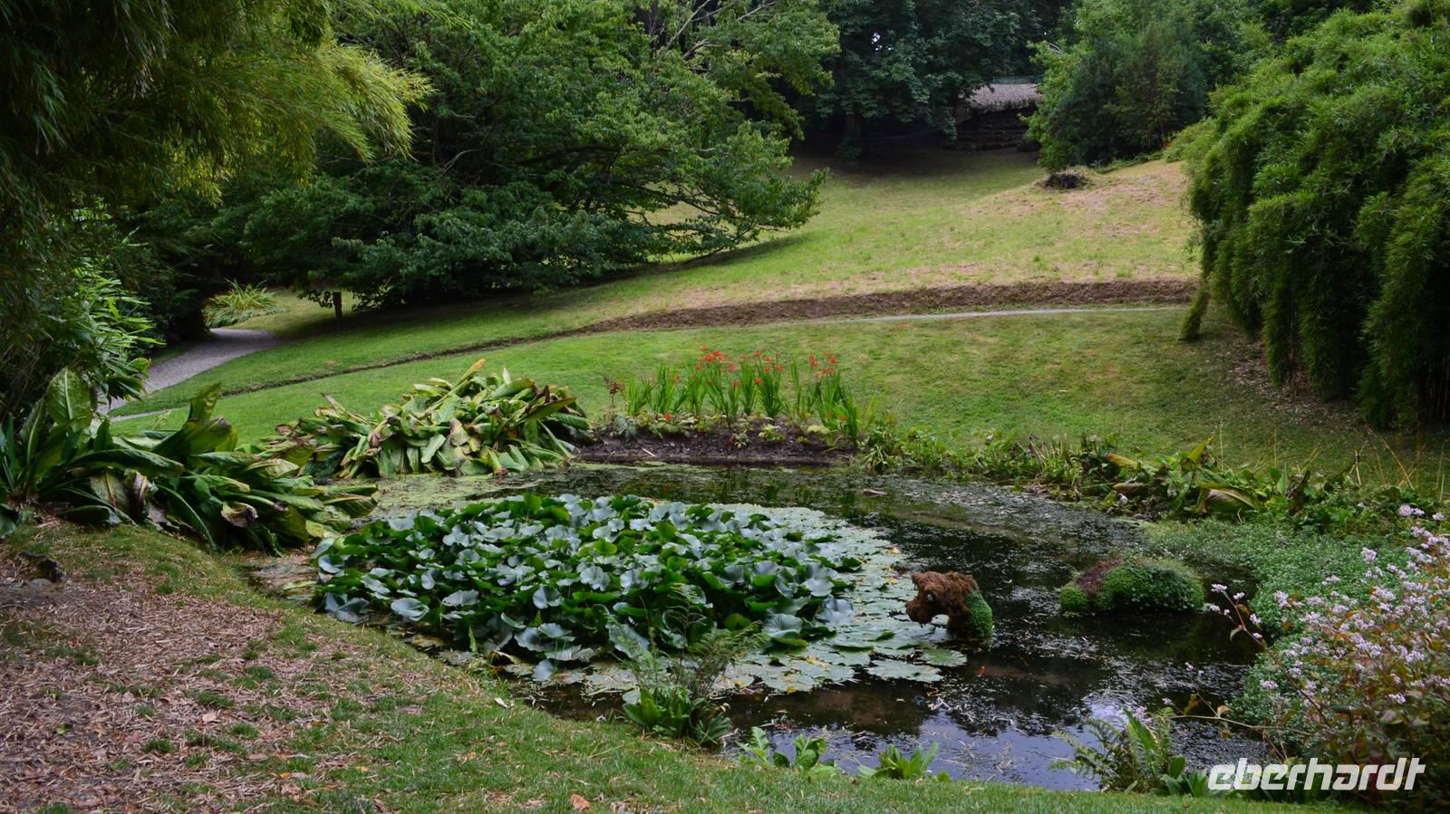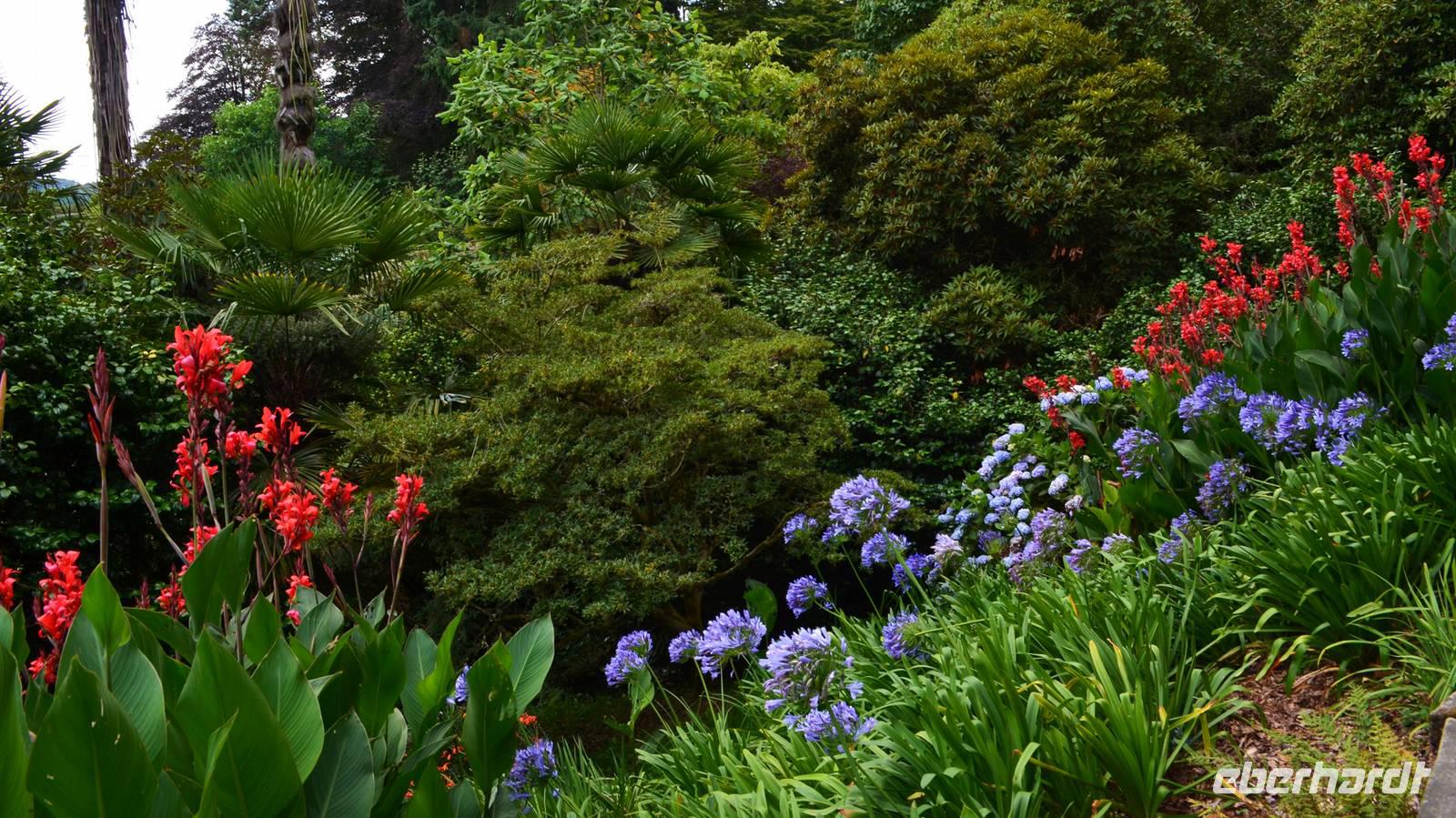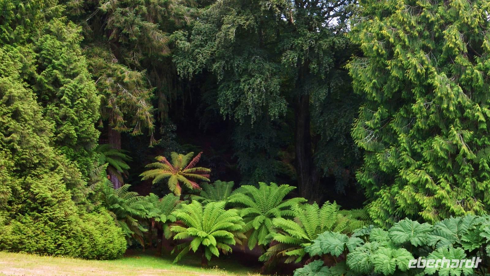 Da nach Auskunft unserer Gäste die Interessen stark bei Gärten liegen, besuchen wir am Nachmittag noch einen schönen Garten in Cornwall, den Trebah Garden, dessen Anlage wir am Nachmittag durchstreifen. Das kleine Tal, in dem er sich bis zur Küster erstreckt, begeistert zu dieser Jahreszeit durch seine kleinen Urwälder, den Riesenrhabarber und die blühenden Hortensien.