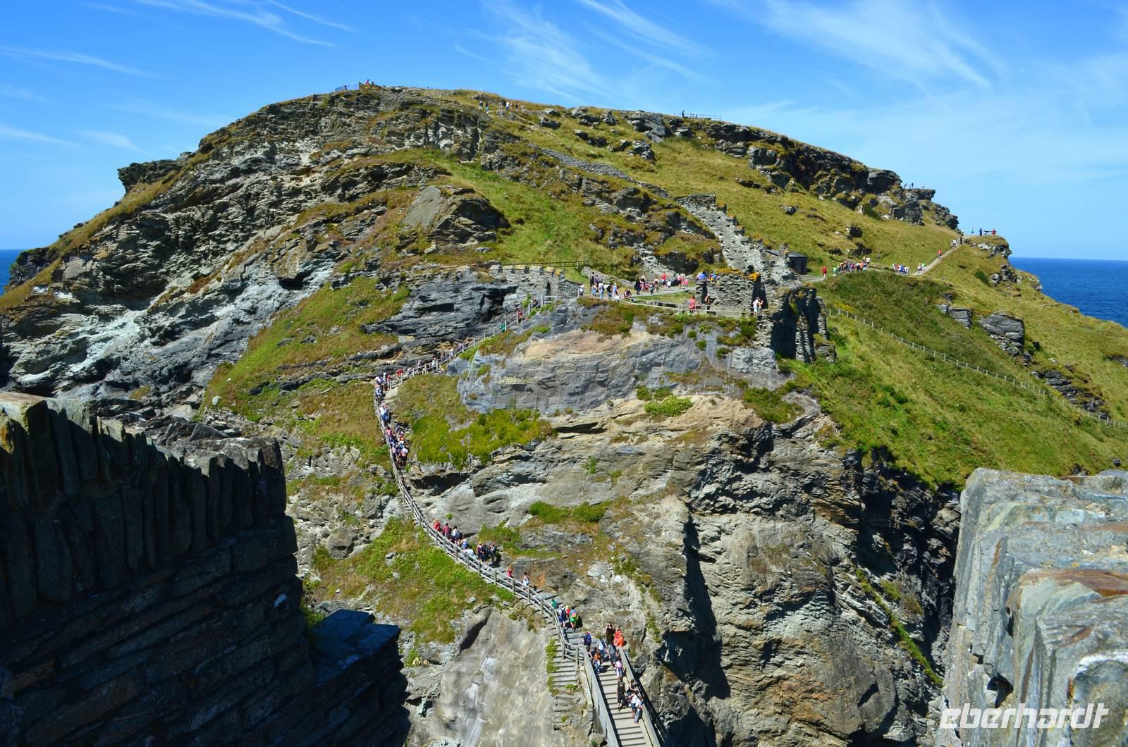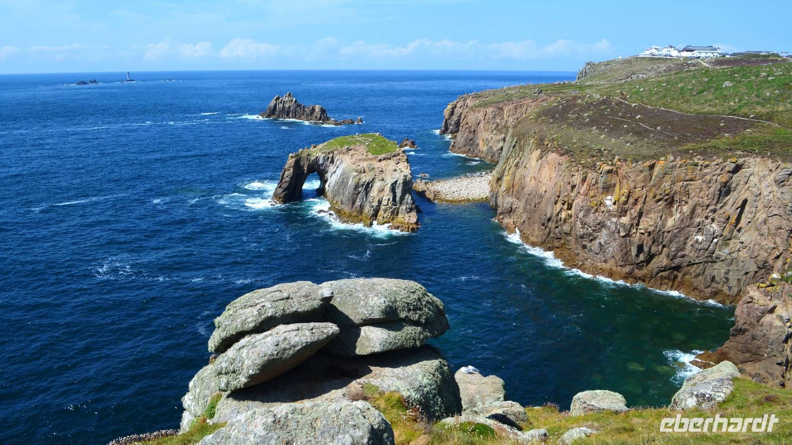 Wieder schönes Wetter und wir fahren zum St. Michael's Mount, machen hier einen gemeinsamen Spaziergang zum Bootsanleger, denn es herrscht Flut. Die Überfahrt geht zügig und nach gemeinsamem Aufstieg und Besichtigung des Schlosses geht es mit dem Boot zurück und mit dem Bus weiter nach Land´s End. Herrliches Wetter und sehr klare Sicht machen den Aufenthalt hier zum besonderen Erlebnis. Eine kleine Klippenwanderung machen fast alle mit und wir genießen herrliche Aussichten, die alle begeistern.