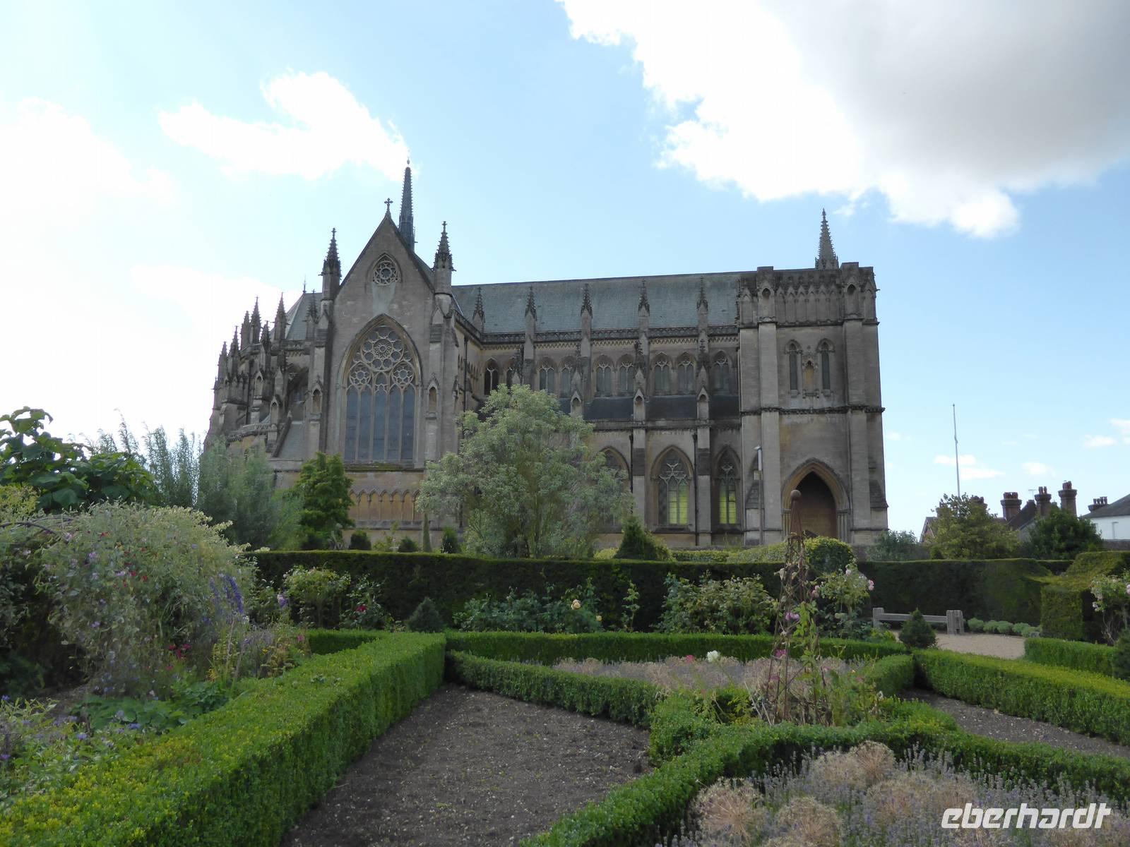 Nach unserem ersten englischen Frühstück führte uns die Reise weiter nach Arundel. Von Weitem grüßten uns bereits die trutzigen Rundtürme der Bilderburgburg. Bei einem kleinen Bummel durch das kleine Dörfchen lernten wir den Marktplatz sowie die Kathedrale kennen. Zum Samstag früh war aufgrund des Bauernmarktes schon reger Betrieb. Im Anschluss besichtigten wir den Schlossgarten, die Kapelle sowie die ummauerten Gärten von Schloss Arundel. Zur Mittagszeit wurden wir dann in die Schlossgemächer vorgelassen. Besonders beeindruckten die 40 m lange und 15 m hohe Baronenhalle mit einer gewaltigen eichenen Decke, die Gemäldegalerie, der Speisesaal sowie die Bibliothek. Dieses kleine Dörfchen mit der Bilderbuchburg.