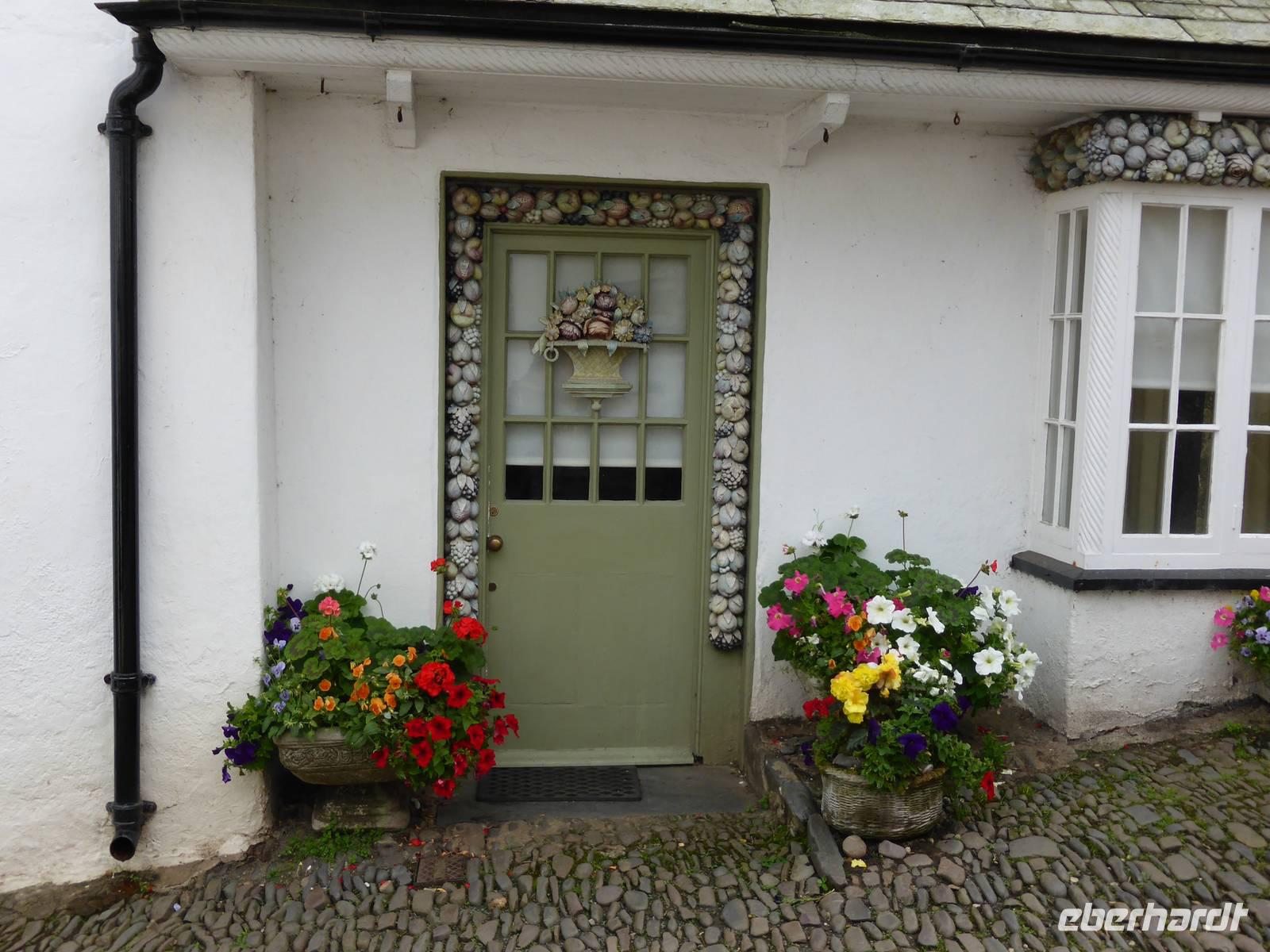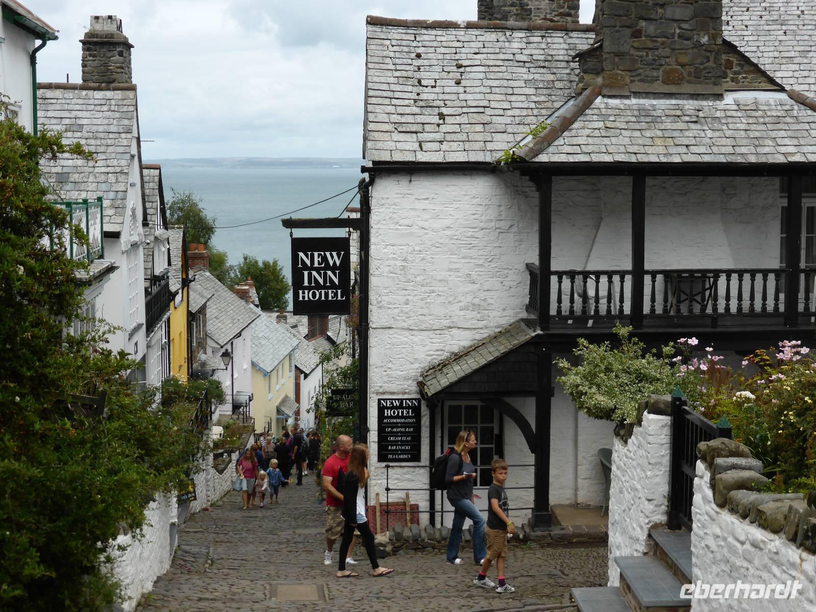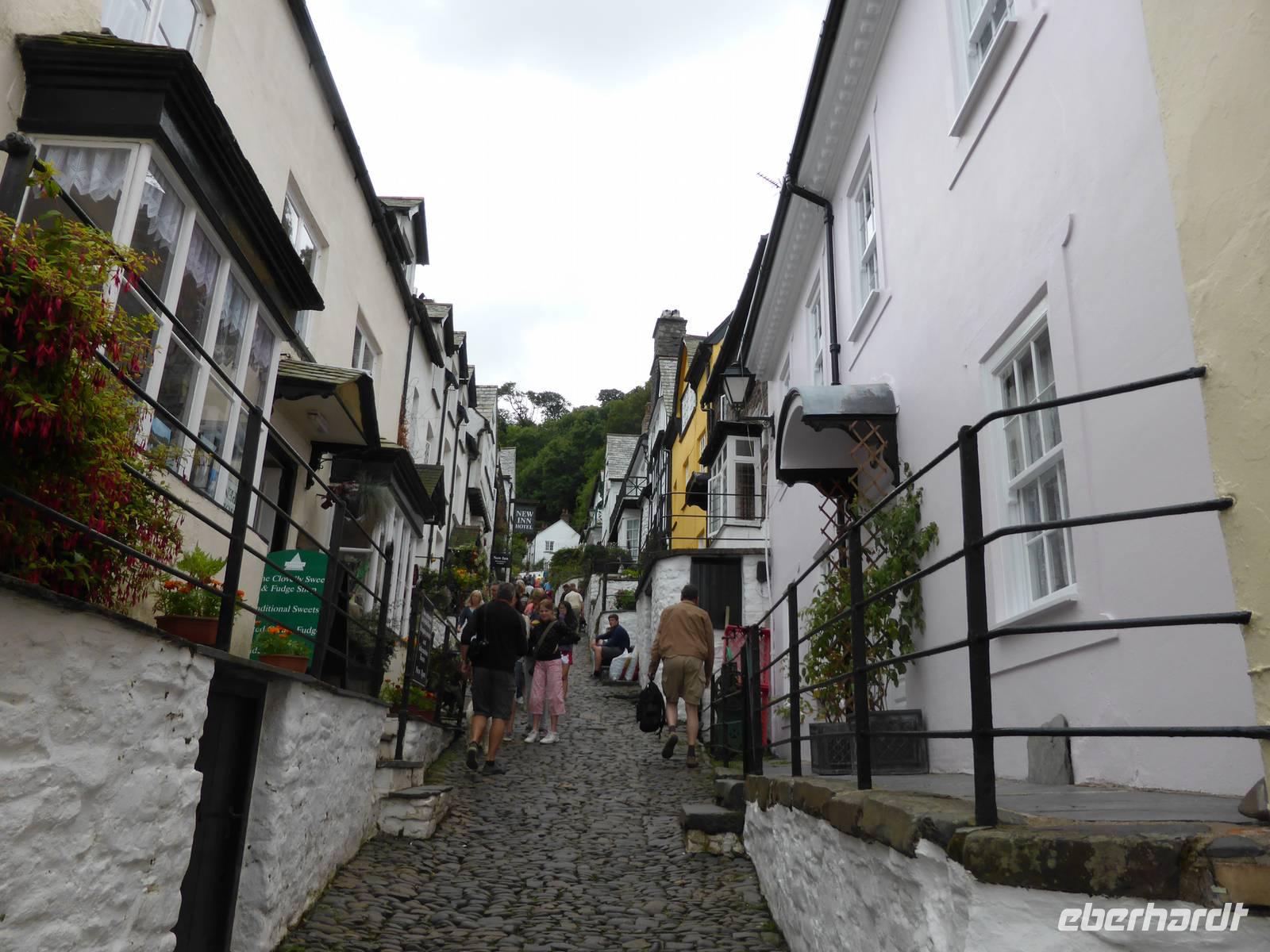 Über Boscastle, einem winzigen Weiler und ehemalige Schmugglerhochburg erreichten wir Clovelly. Dieses Dorf mit ca. 100 Einwohnern befindet sich heute im Privatbesitz. 120 m Höhenunterschied überwanden wir auf Kopfsteinpflaster hinunter zum Hafen. Diese Dorfstrasse ist gesäumt von blumengeschmückten Cottages sowie liebevoll dekorierten Hauseingängen. Am Wegesrand konnten wir die zahlreichen Transportschlitten erkennen. Für den steilen Rückweg nutzen wir den Landroverservice. Pünktlich zur Abfahrt fing es an zu regnen - gutes Timing!!