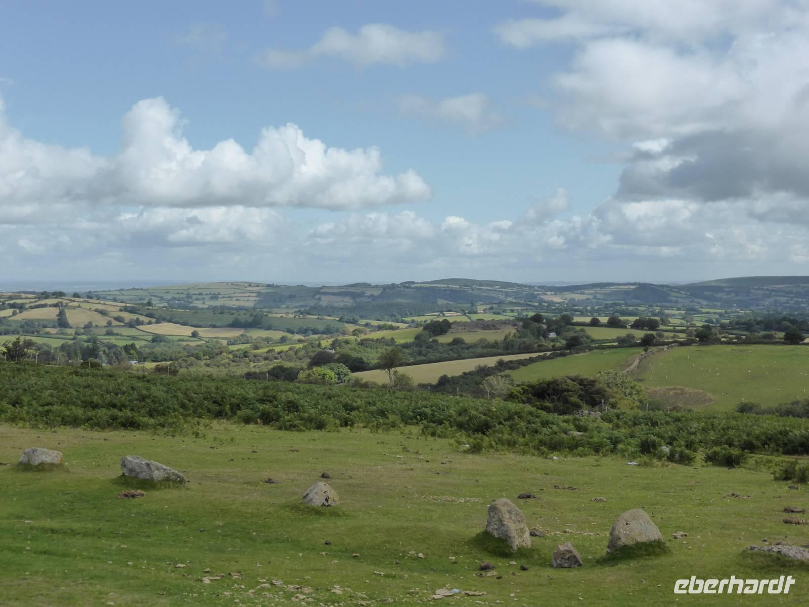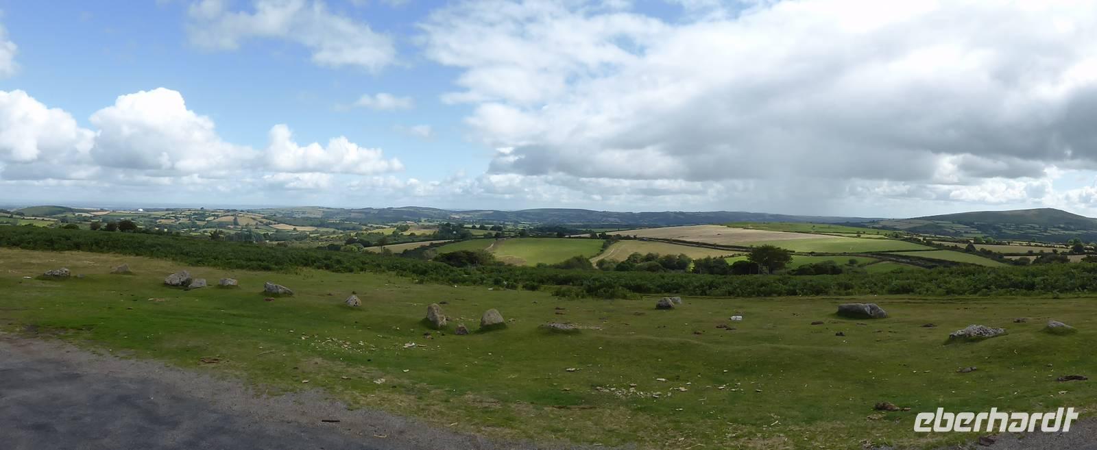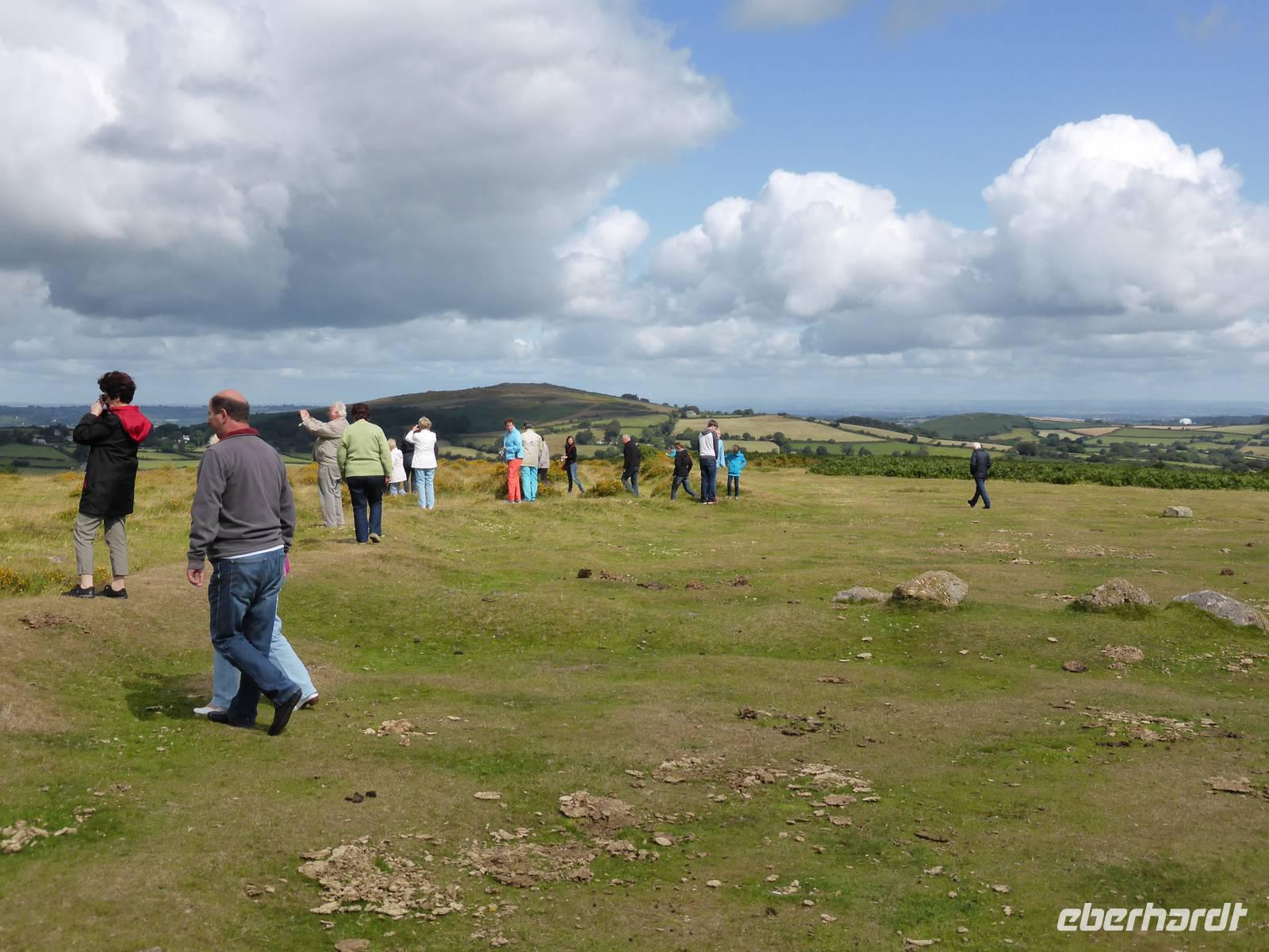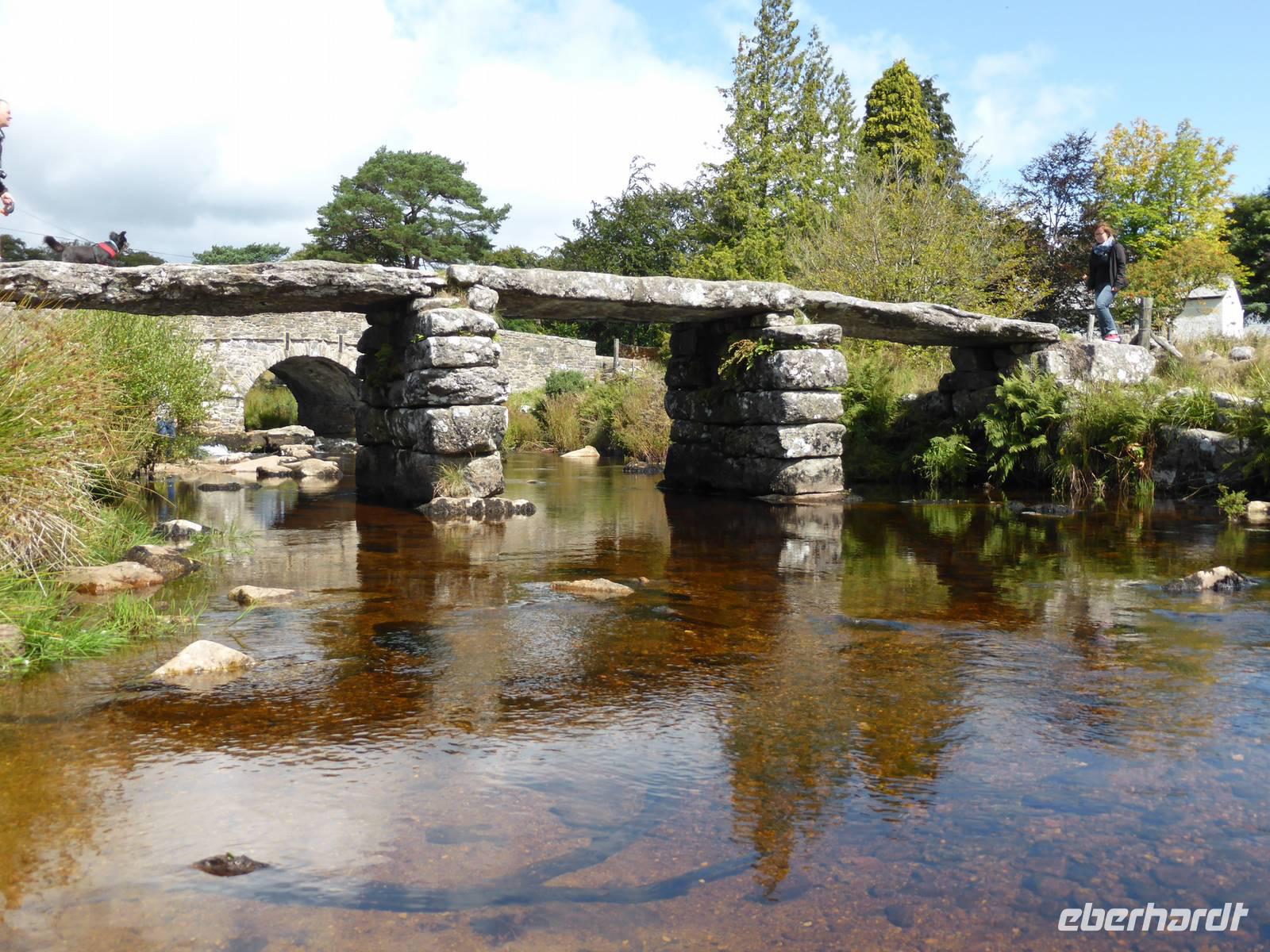 Nach unserem Aufenthalt in Exeter fuhren wir weiter durch das berühmte Dartmoor. Das Dartmoor entstand aus dem Zusammenwirken von menschlichen Einflüssen sowie Klimaveränderungen. Aufgrund des recht sonnigen Wetters erwartete uns eine bezaubernde Landschaft. Die Dartmoor Ponys und die weißen Kleckse der Schafe in den sanft geschwungenen Hügelhängen, die verschiedenen Grünschattierungen sowie die einzelnen Tors (Berge) ließen das Dartmoor sich von seiner schönsten Seite zeigen. Über Moretonhampstead, einem kleinen Marktort im nördlichen Dartmoor erreichten wir Postbridge mit seiner bekannten Clapperbridge, einer Steinplattenbrücke. In Tavistock, einer alten Stannary Town (Zinnstadt) besuchten wir die berühmten Markthallen.
