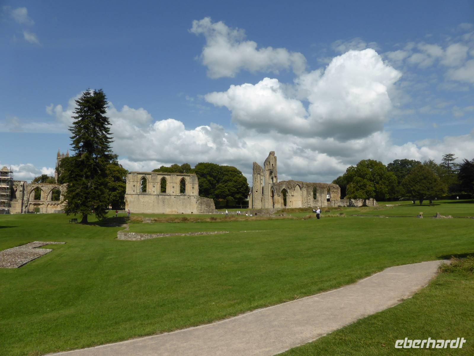 Unser nächstes Ziel war Glastonbury. Glastonbury ist ein Wallfahrtsort für Esoteriker aller Art. Dies spiegelte sich auch in den zahlreichen Geschäften des Ortes wieder. Wir besuchten allerdings die ehemalige Abtei von Glastonbury. Hier soll Joseph von Arimathäa den Heiligen Gral vergraben haben und sich das Avalon von König Artus befinden. Während unseres Rundganges sahen wir die vermeintliche Grabstätte von König Artus und seiner Frau Guinevere, da 1191 Mönche der Abtei das Grab entdeckt haben wollen. Die beeindruckenden Ruinen der ehemals fast 180 m langen Klosterkirche beherrschen heute noch das grünbewachsene Areal. Gut erhalten sind die Marienkapelle sowie die Abtsküche.