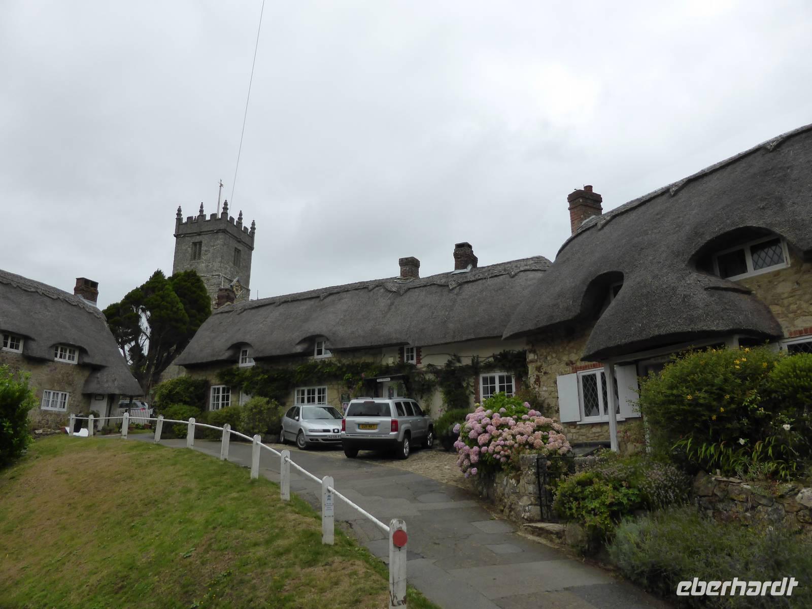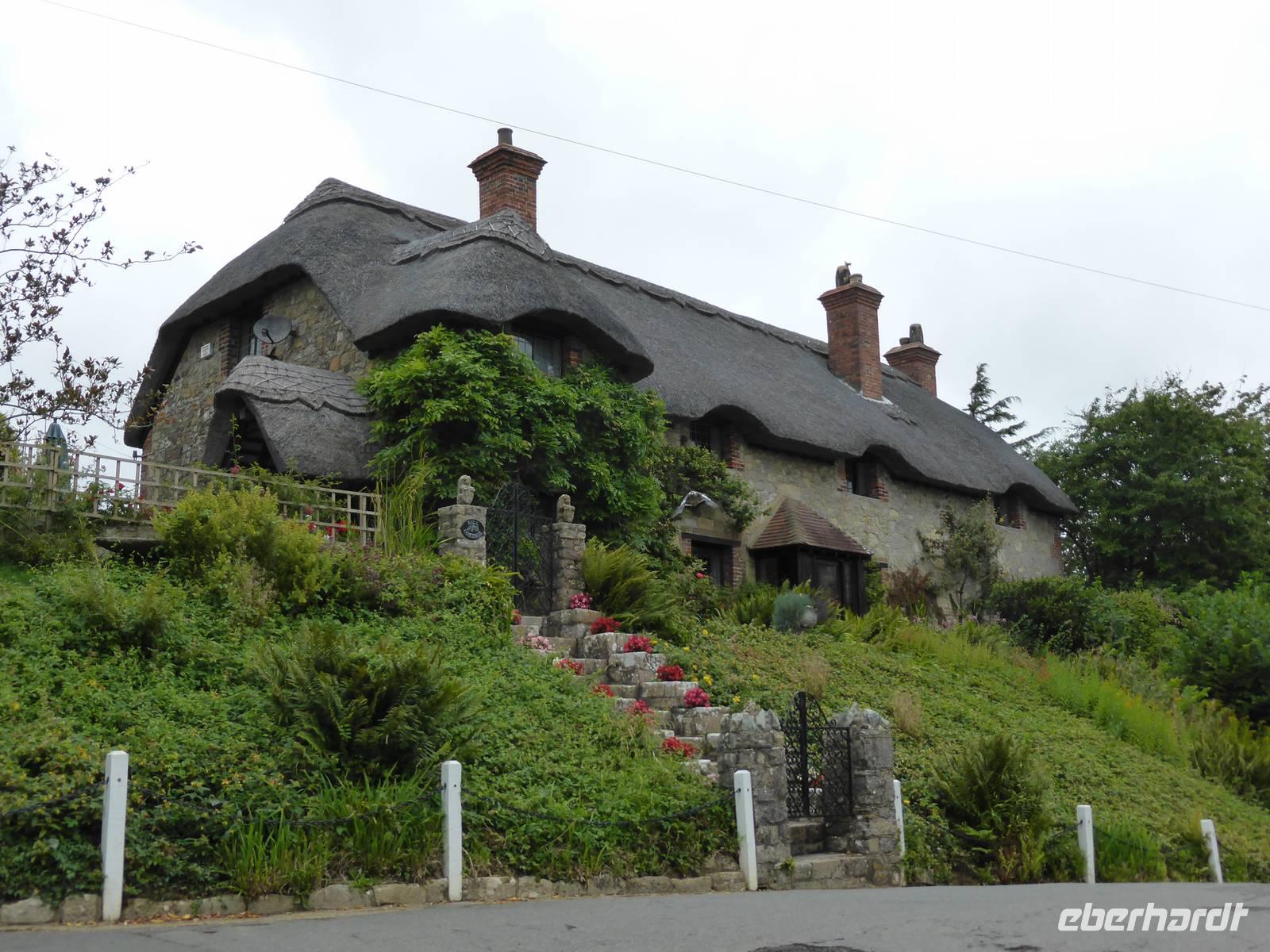 Unsere Rundfahrt führte uns durch das Inselinnere vorbei an der Hauptstadt Newport nach Godshill. In diesem Puppenstubendörflein reihen sich kleine reetgedeckte Cottages aneinander. Den Namen erhielt das Dorf von der Kirche St. Lawrence auf dem Hügel, da Gott wollte, dass diese Kirche auf der natürlichen Erhebung errichtet wird. Von oben genossen wir einen schönen Blick auf die umliegende Landschaft.