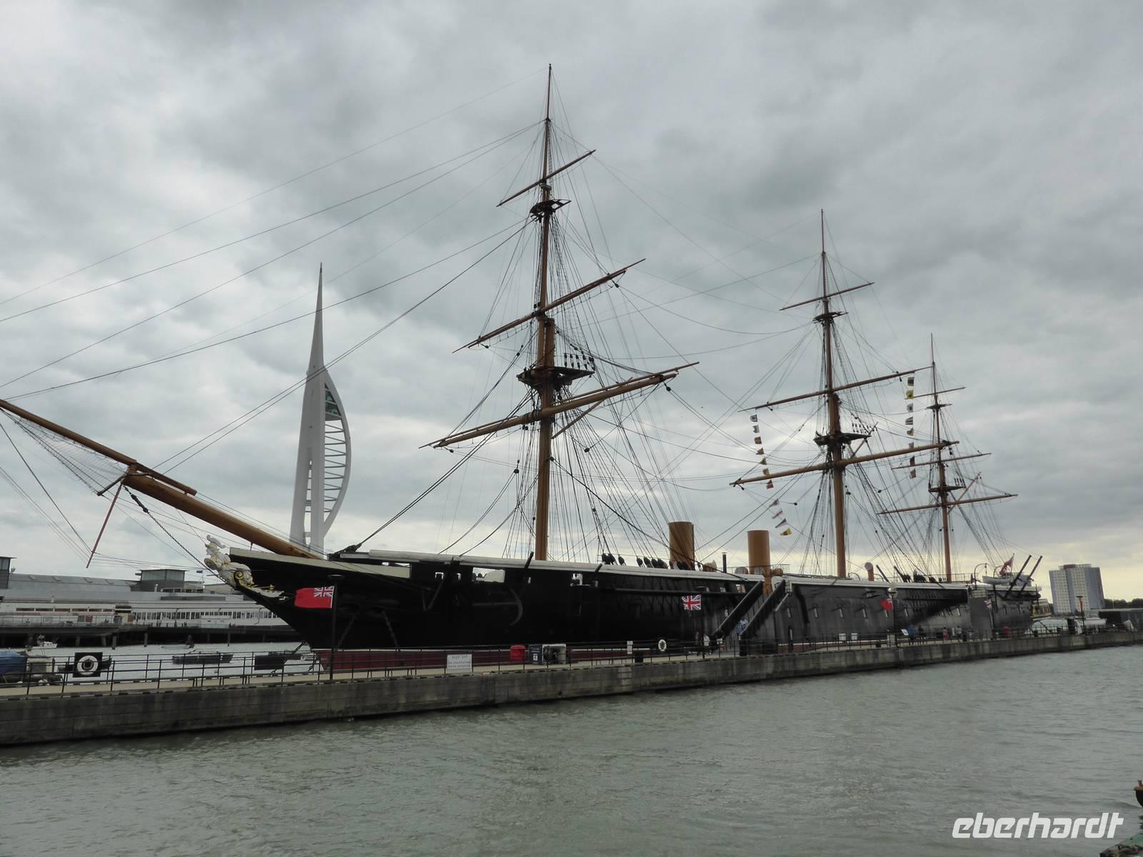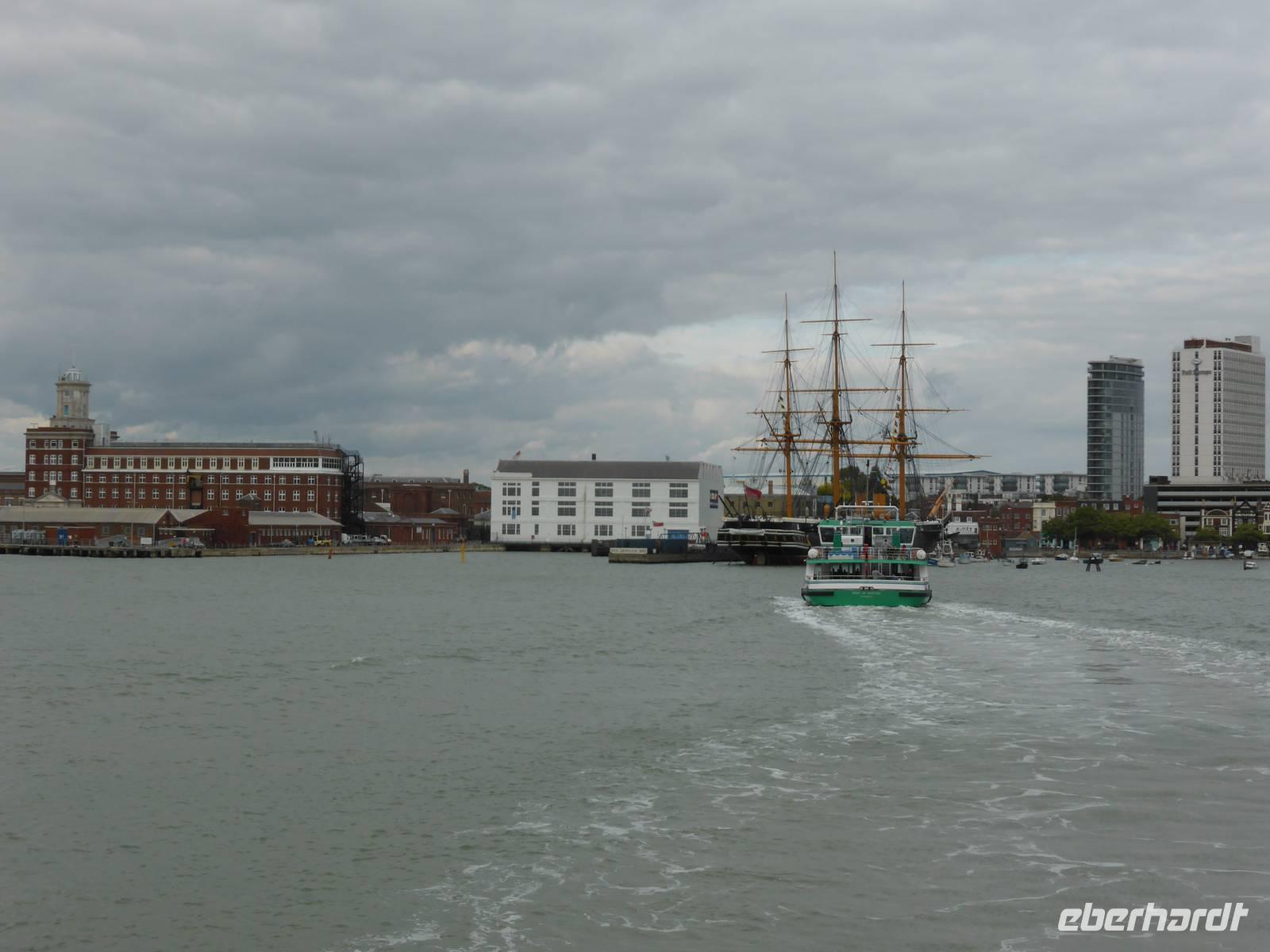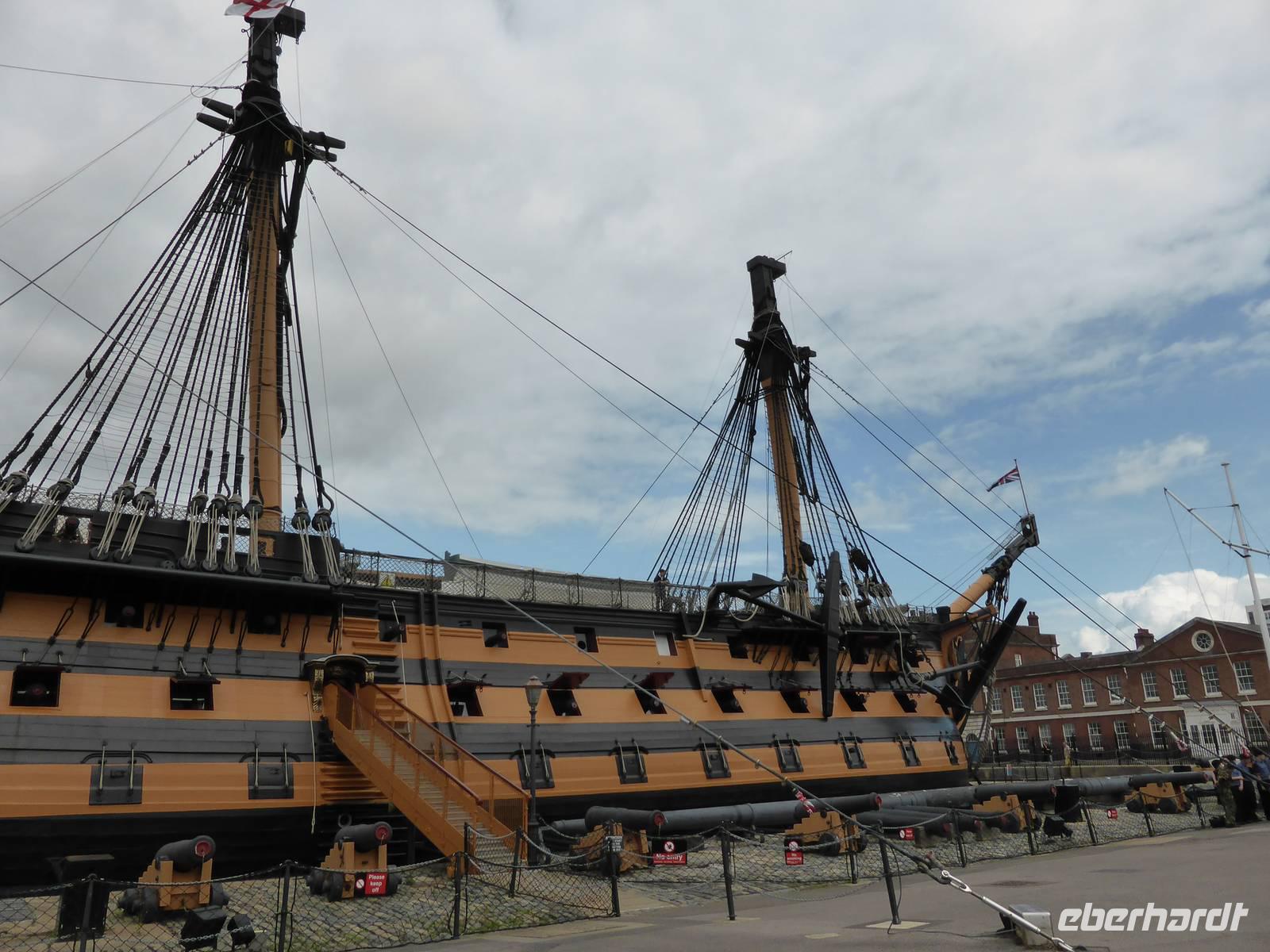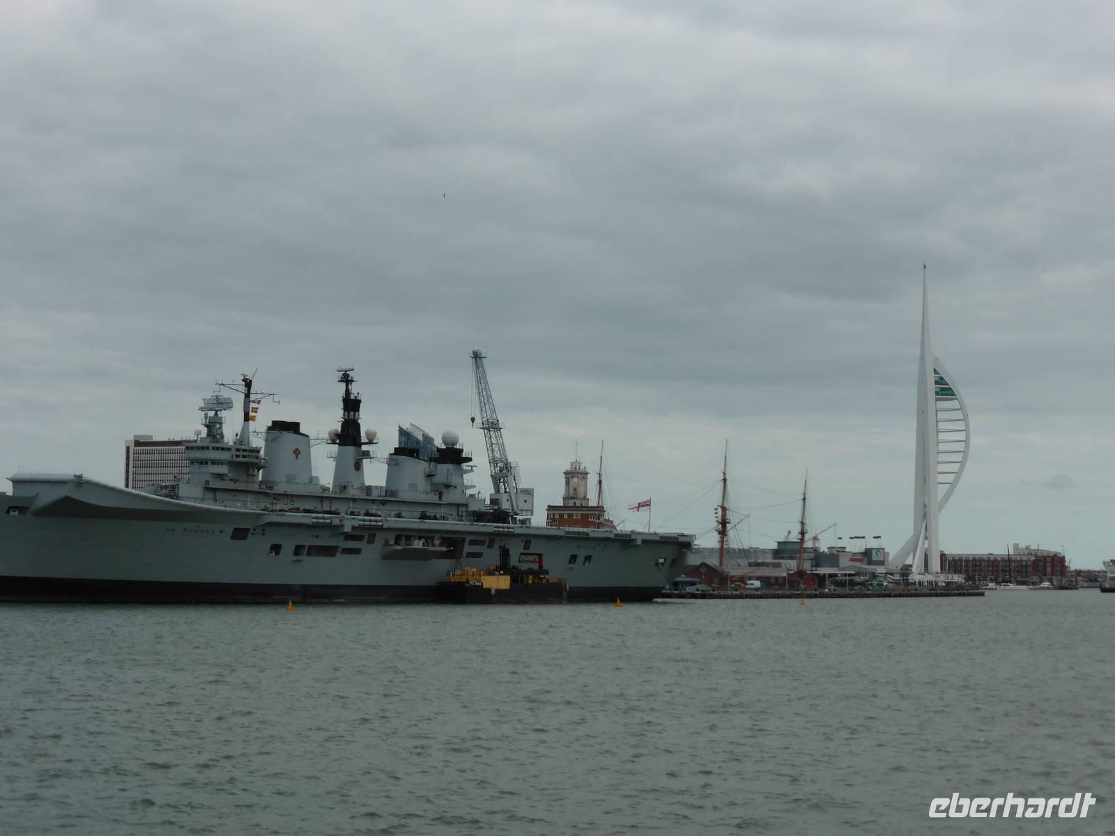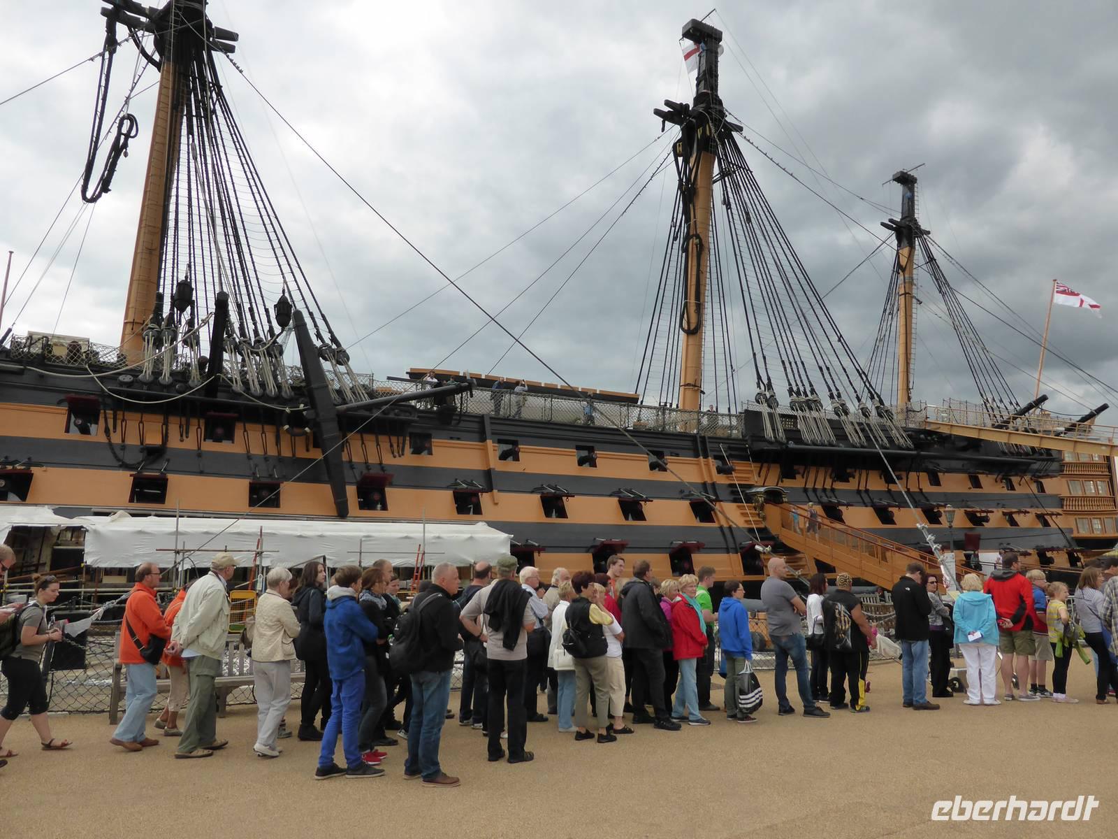 Die Weiterreise führte uns nach Portsmouth, dem wichtigsten Marinestützpunkt England. Der sichere Naturhafen von Portsmouth wurde Ende des 15. Jh. befestigt und trägt den Beinamen „Flagship of Maritime England". In dem Historischen Hafenanlagen befinden sich die HMS Warrior, das erste stahlbewehrte Kriegsschiff, welches 1860 vom Stapel gelaufen ist, die Mary Rose, der Stolz der Kriegsmarine von Heinrich VIII., das Royal Naval Museum sowie die HMS Victory. Unser Ziel war die HMS Victory, das Flaggschiff von Admiral Nelson, die immer noch uneingeschränkt seetüchtig ist. Während eines kleinen Rundganges über die 9 Decks erfuhren wir viel über die Lebensweise der Matrosen, warfen einen Blick in die Kabine von Lord Nelson. Im Anschluss nutzen einige Gäste die Möglichkeit, das Museum zu besuchen bzw. den Militärhafen während einer Hafenrundfahrt kennen zu lernen. Während dieser Rundfahrt erblickten wir zahlreiche Marineschiffe sowie das neue Wahrzeichen von Portsmouth - den Spinaker Tower.