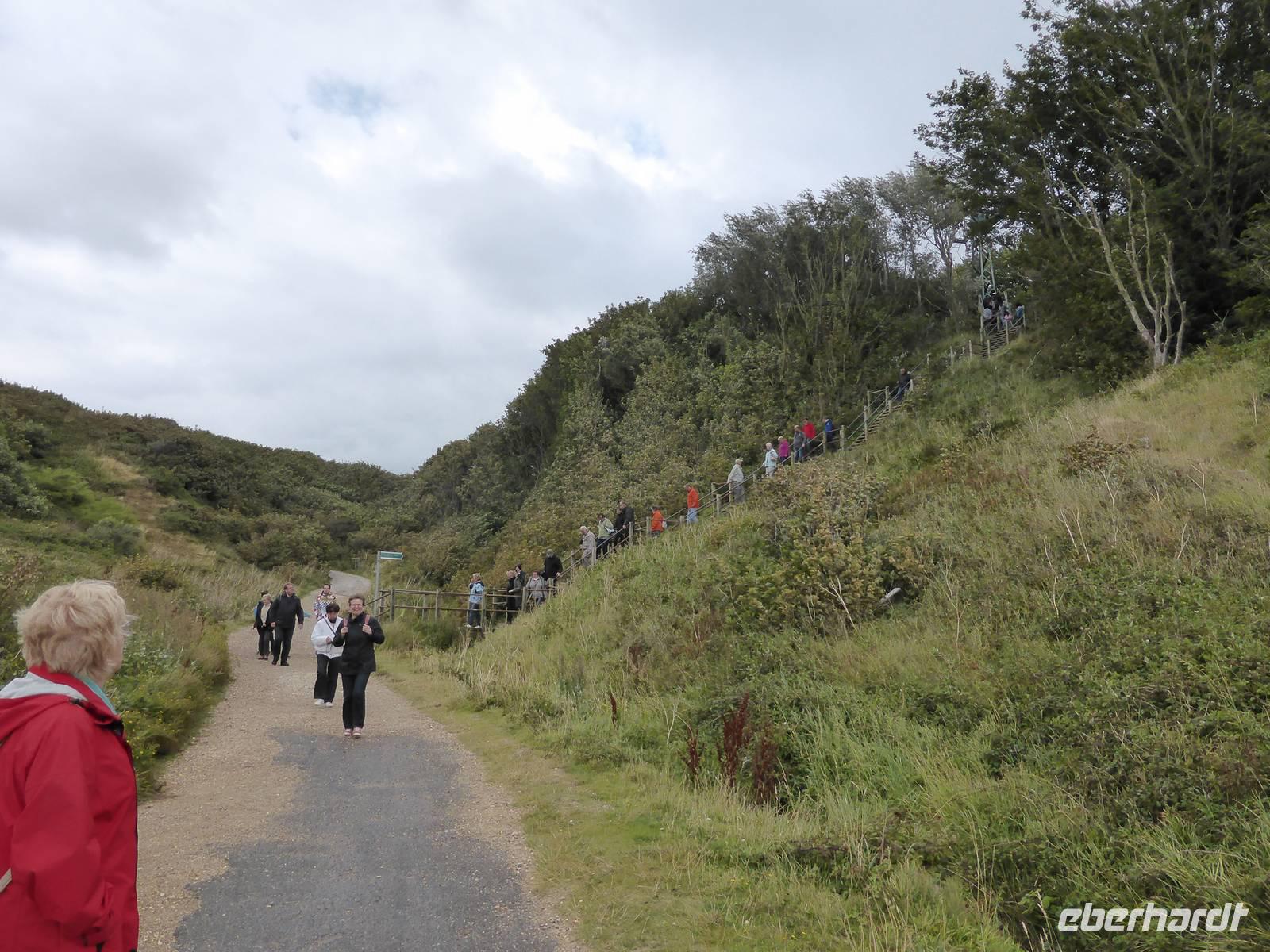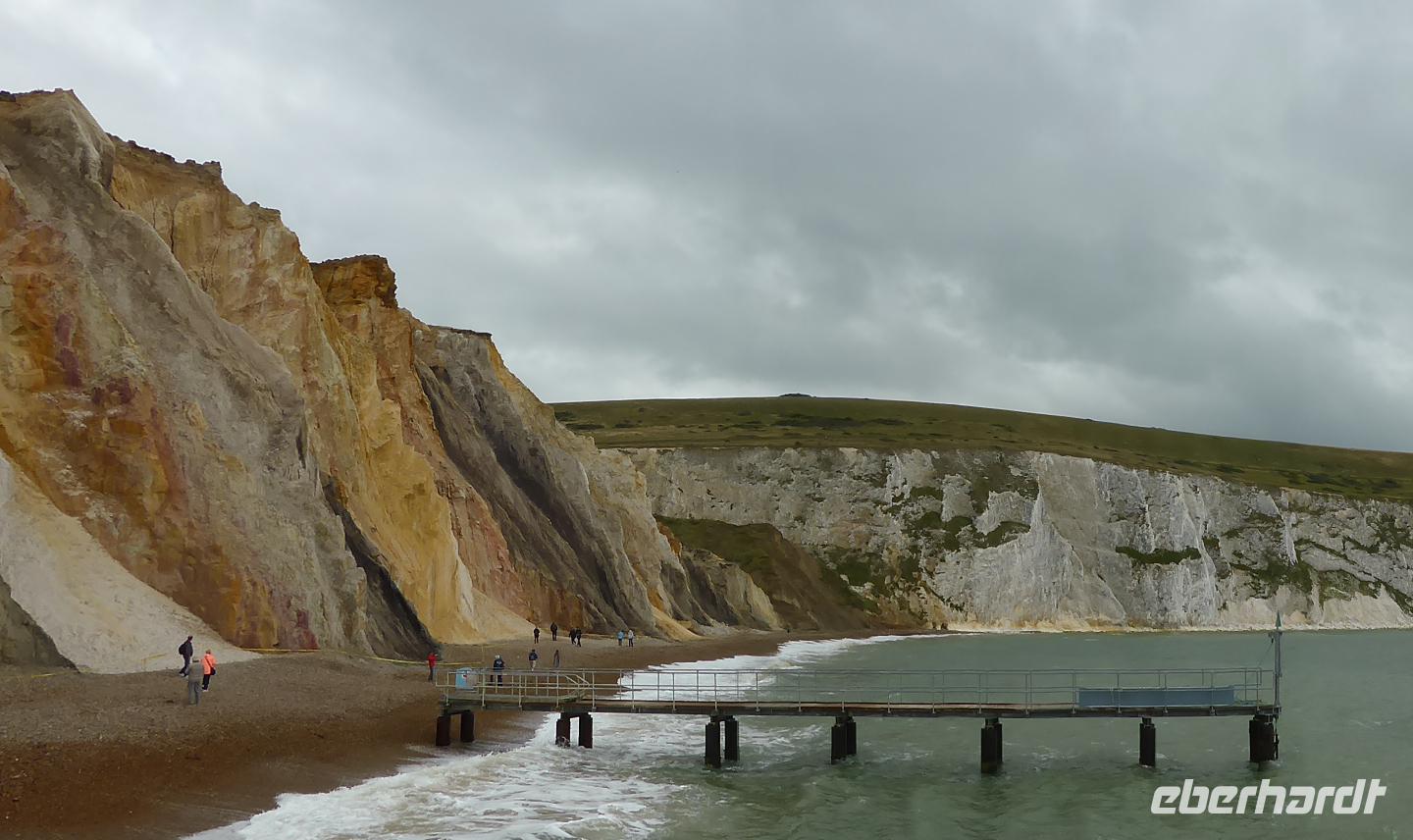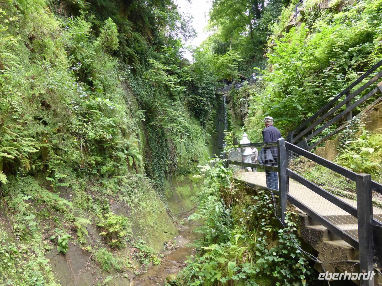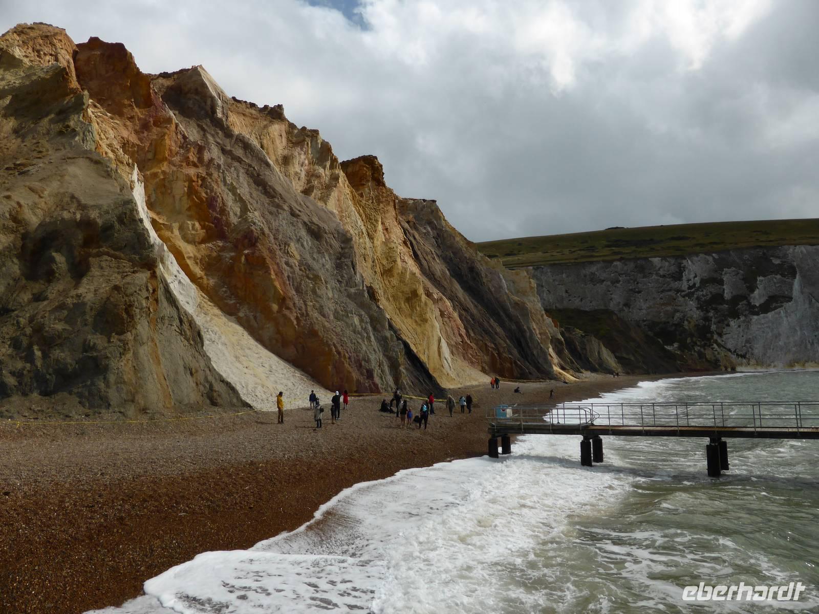 Unsere Mittagspause verbrachten wir in Shanklin. Einige Gäste wanderten durch die Shanklin Chine, eine tiefe, in Jahrmillionen vom Wasser ausgewaschene Klamm. Die Schlucht war in den vergangenen Jahrhunderten oft der Unterschlupf für Schmugglerbanden, heute säumen selten Pflanzen, hohe Bäume sowie das Bächlein den Weg.
