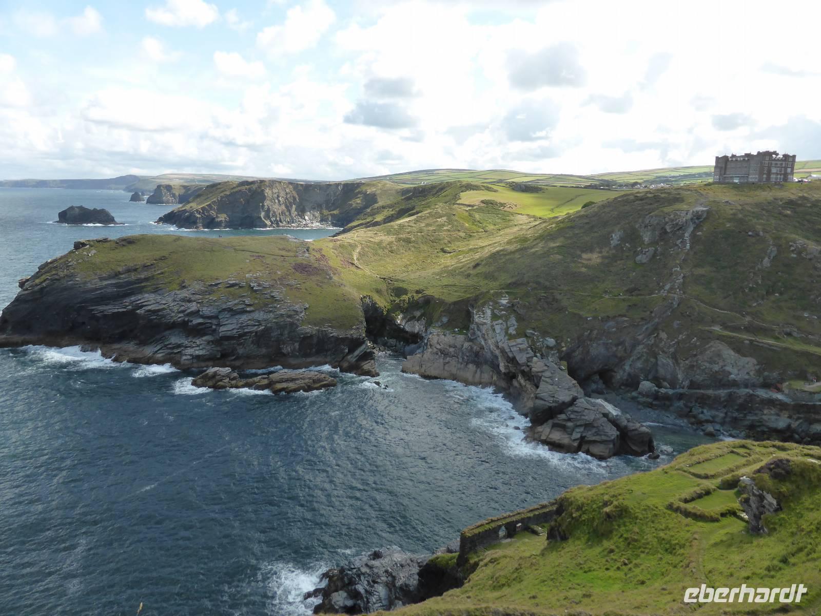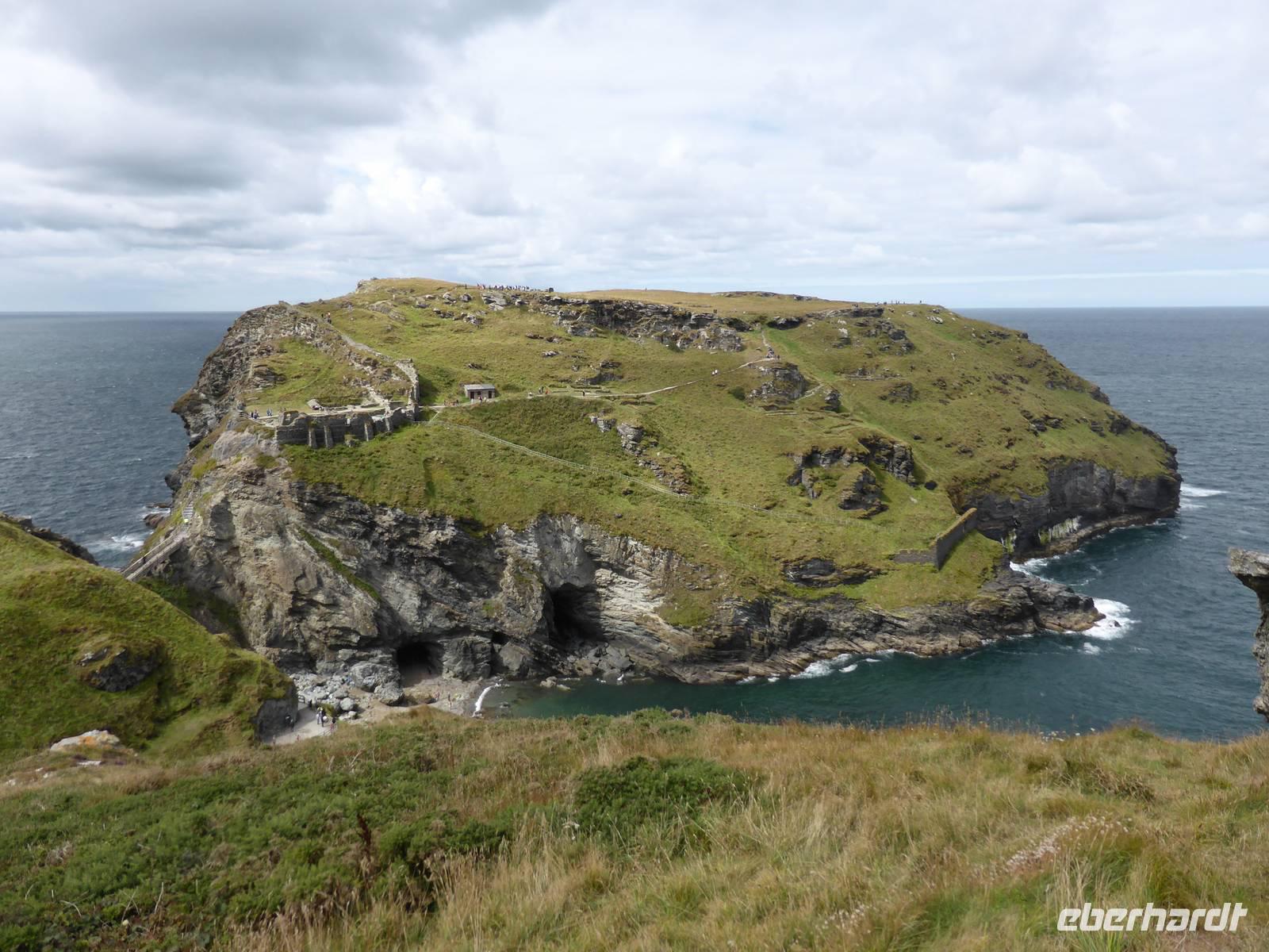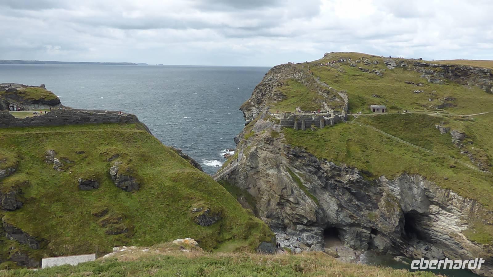 Am Vormittag stand Tintagel, König Artus´ Burg auf dem Programm. Anziehungspunkt ist eine Burgruine auf zwei Klippen, wo Artus gezeugt und unter Anleitung des Zauberers Merlin aufgewachsen sein soll. Allerdings wurde die Burg ca. 700 Jahre nach König Artus anstelle einer keltischen Klostersiedlung errichtet. Während eines kleinen Spazierganges erkundeten wir die beiden Teile der Burganlage und genossen die wunderschönen Ausblick auf die Küstenlandschaft.
