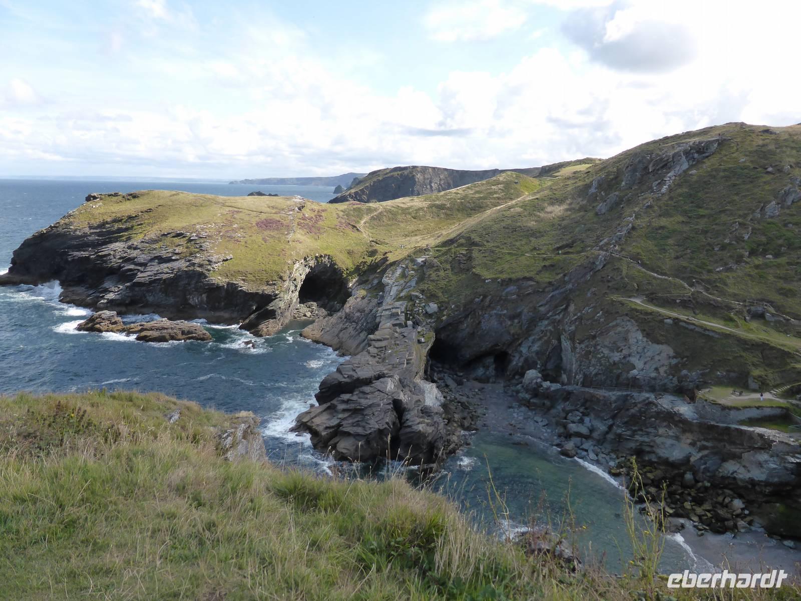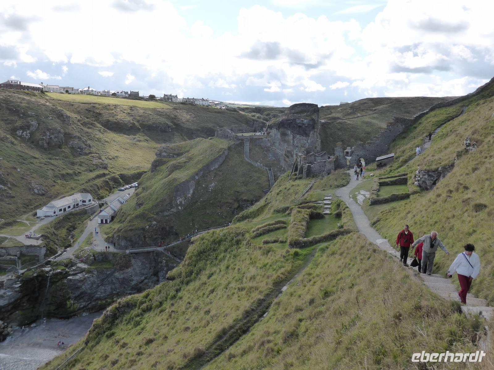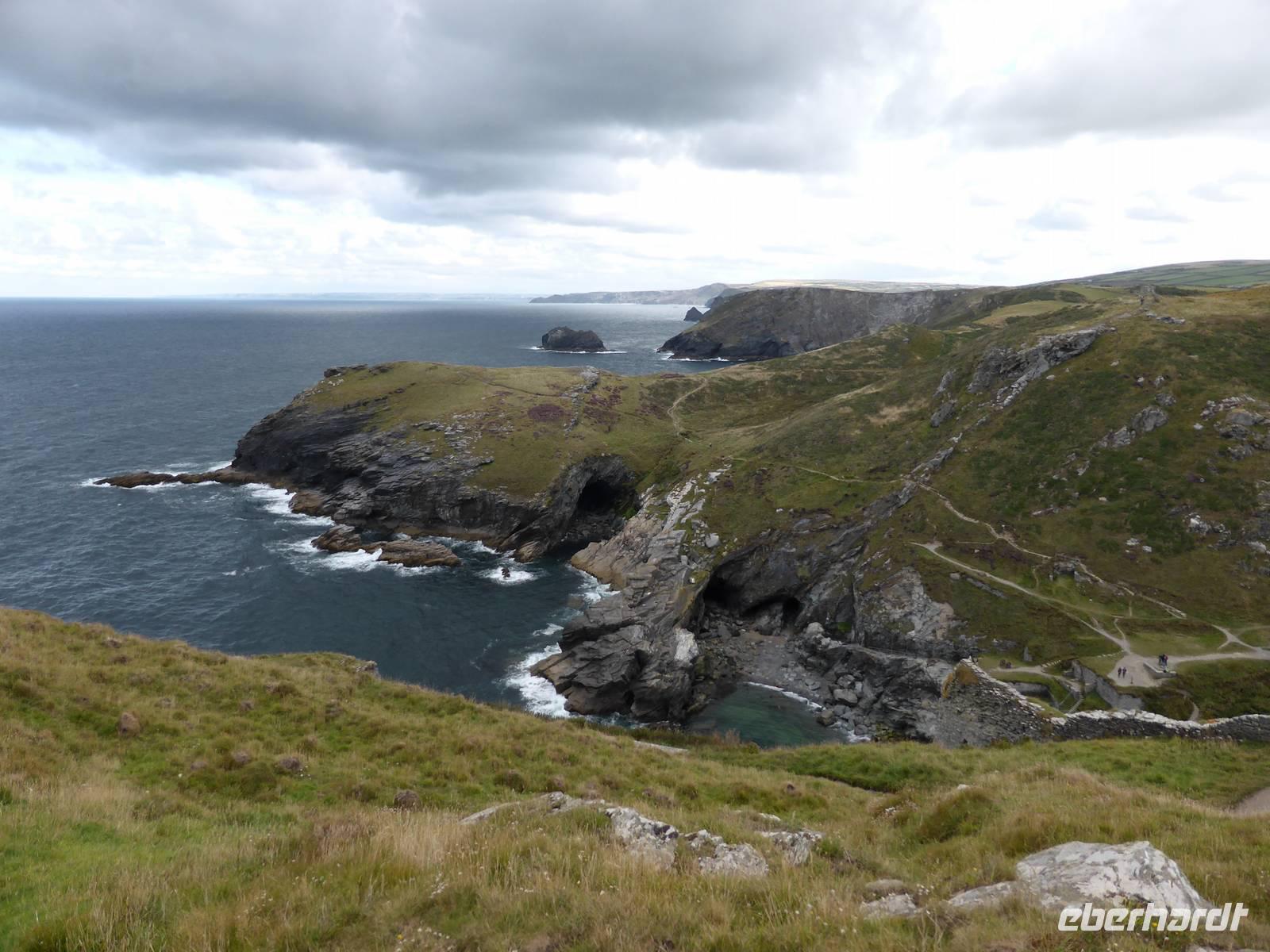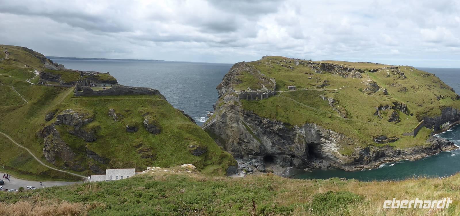 Am Vormittag stand Tintagel, König Artus´ Burg auf dem Programm. Anziehungspunkt ist eine Burgruine auf zwei Klippen, wo Artus gezeugt und unter Anleitung des Zauberers Merlin aufgewachsen sein soll. Allerdings wurde die Burg ca. 700 Jahre nach König Artus anstelle einer keltischen Klostersiedlung errichtet. Während eines kleinen Spazierganges erkundeten wir die beiden Teile der Burganlage und genossen die wunderschönen Ausblick auf die Küstenlandschaft.