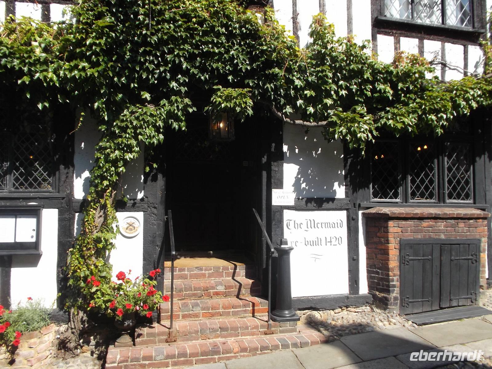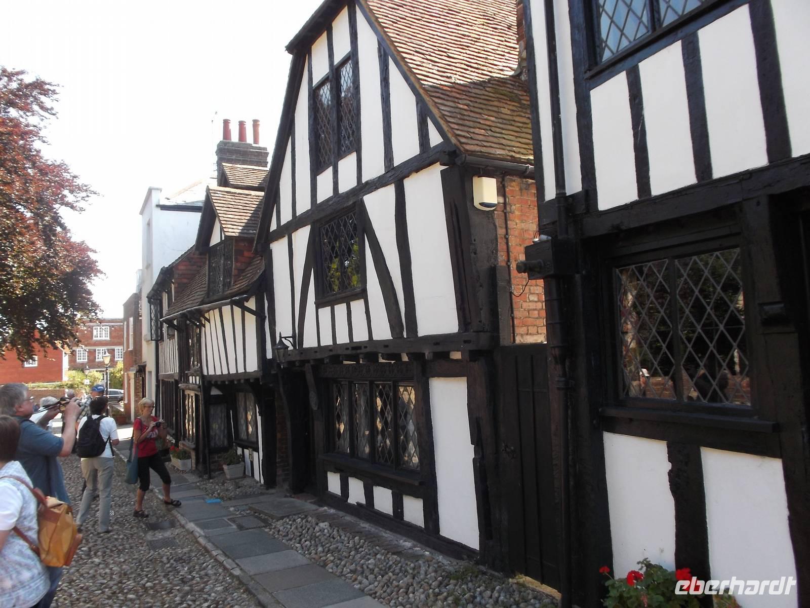 Bei herrlichem Wetter erreichten wir den Fährhafen Dover und konnten reibungslos und pünktlich von Bord rollen. Den ersten Stopp legten wir im historischen Hafenort Rye ein. An vielen Stellen hat die historisch bedeutsame Stadt mittelalterlichen Charakter bewahrt. Ihr kleines Kastell, die Stadtburg, und einige ihrer alten, kopfsteingepflasterten Straßen wie z.B. die „Mermaid Street" , sehen noch genauso aus wie vor ein paar hundert Jahren. Einst gehörte Rye war eines der tragenden Mitglieder des „Cinque Ports"-Städtebundes, der bis ins 16. Jh. die Seefahrt im Süden Englands beherrschte. Einst war diese militärische und wirtschaftliche Allianz der fünf Städte Dover, Hastings, Hythe, Romney und Sandwich, der wenig später Rye und Winchelsea beitraten, im spätmittelalterlichen England eine einflussreiche politische Macht, eine Art „kleiner Hanse"., die vom 12. Bis 15. Jh. weitgehend autonom blieb. Sie waren nicht nur von Abgaben und Zöllen befreit und mit der Gerichtsbarkeit für ihre Seeleute betraut, sondern da Piraterie und Schmuggel toleriert wurden, hatten diese Städte besonders hohe Einnahmen.