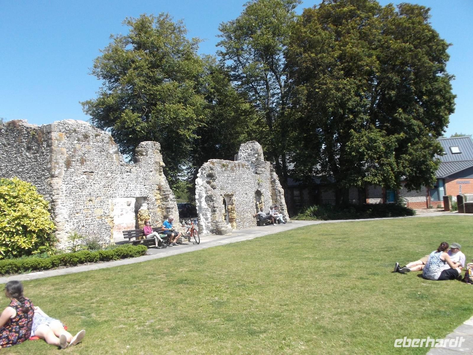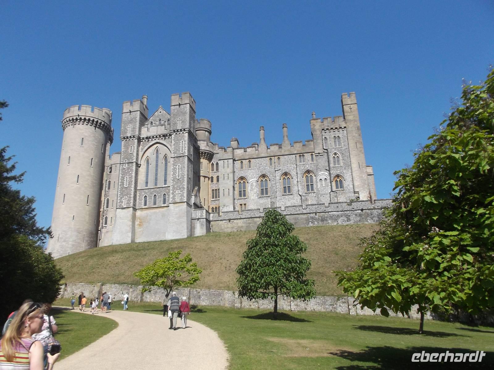 Unsere heutige Fahrt führte von Brighton zunächst an der Küste entlang nach Arundel, einer Kleinstadt in den South Downs und der Grafschaft West Sussex. Die bekannteste Sehenswürdigkeit des etwa 3000 Einwohner zählenden Städtchens ist zweifellos Arundel Castle, eines der malerischsten und besterhaltenen Schlösser Großbritanniens. Schon im Mittelalter, in der Zeit von Eduard dem Bekenner, als wehrhafte Burg mit Zinnen und Zugbrücken erbaut, wurde es nach dem Sieg der Normannen Hauptsitz eines ihrer bedeutendsten Anführer. Seither ist das Schloss stets Sitz der bedeutendsten Adelsgeschlechter des Landes gewesen und diente in den vergangenen Jahrzehnten oft genug als Filmkulisse. Heute ist die von herrlichen Gärten umgebene Anlage der Wohnsitz des Herzogs von Norfolk und seiner Familie, ein Teil kann aber besichtigt werden. Nach einem Bummel durch das Städtchen zur neogotischen Kathedrale des Bistums Brighton & Arundel, die weithin sichtbar auf dem Stadthügel thront, konnten wir dann die Gärten, den alten „Tower Keep", den auf einem künstlichen Hügel errichteten alten Kern der Burganlage, und schließlich ab Mittag das Schloss besichtigen.