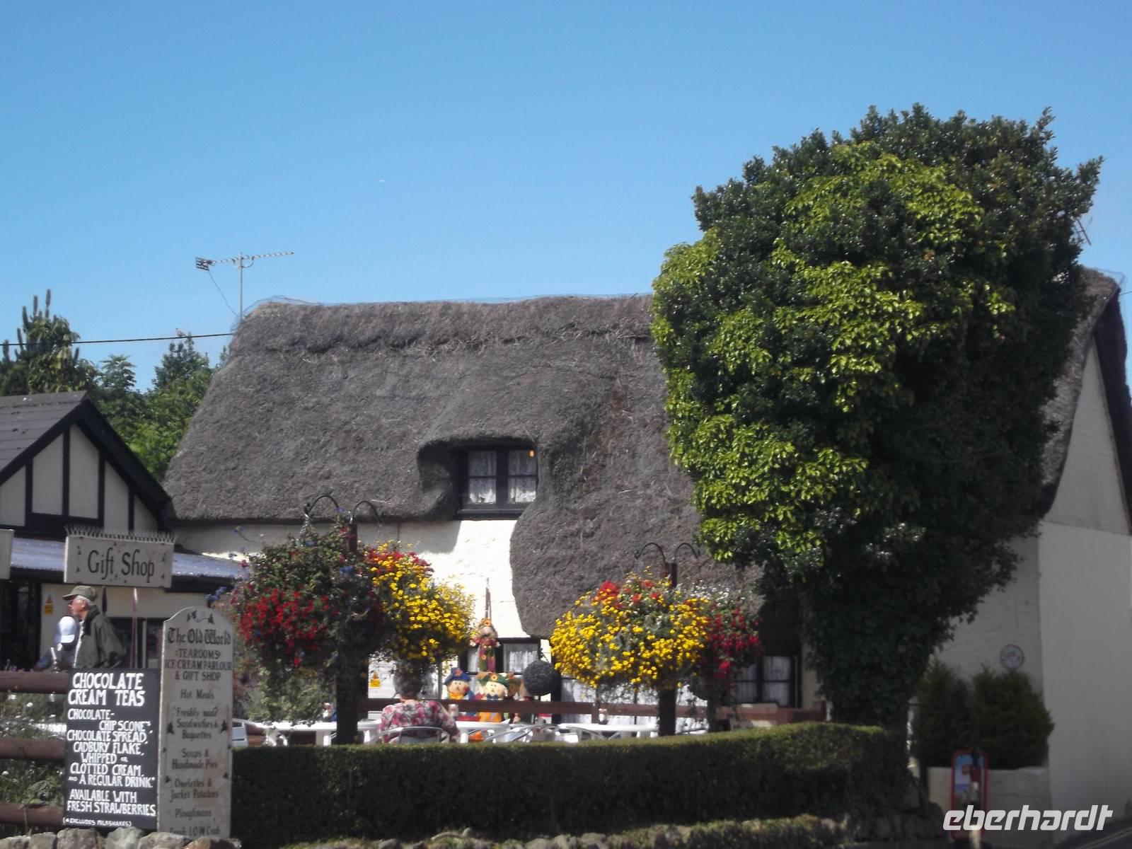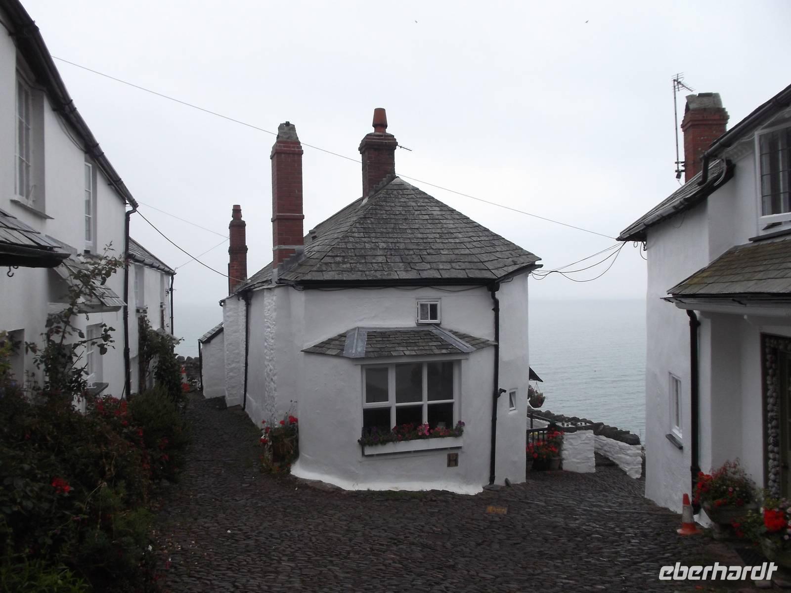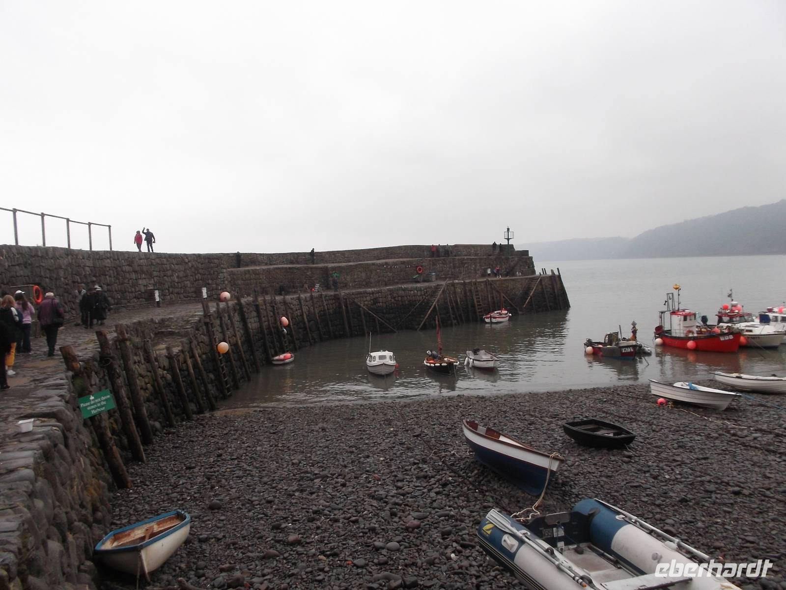 Der letzte große Höhepunkt an diesem Tag war dann der Aufenthalt in Clovelly. In malerischer Lage und ebenfalls einstmals durchaus mit Piraterie verbunden, lockt dieser Ort täglich viele Touristen an. Clovelly kann man nur zu Fuß besichtigen - Autos sind nicht erlaubt und könnten hier aufgrund aufgrund des steil abfallenden Kopfsteinpflasters auch nicht fahren. Kurioserweise wickelt man Lieferungen und Warenverkehr wie vor Urzeiten mit einer Art provisorischer Gleitschlitten a. Steil ist der etwa 800 Meter lange Weg, gepflastert mit glatten Kieseln, der durch den unglaublich malerischen Ort bis hinunter zum Hafen aus dem 14. Jh. führt. Die derzeit etwa 400 Einwohner des Ortes, viele davon noch klassische Fischer, die in ihren uralten weißen Fischerhäuschen wohnen, sind offiziell wie das gesamte Dorf seit 250 Jahren im Privatbesitz der Familie Rous. Nach uraltem Recht Eigentümer von Land und Leuten nutzen die Erben heute die Eintrittsgelder, um das Dorf in all seiner Urwüchsigkeit zu erhalten. Sie sind gleichzeitig größter Arbeitgeber im Ort und betreiben eine Reihe von Webereien, Textilgeschäften sowie eine Handelskette.