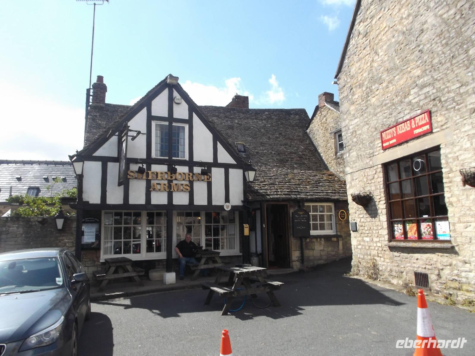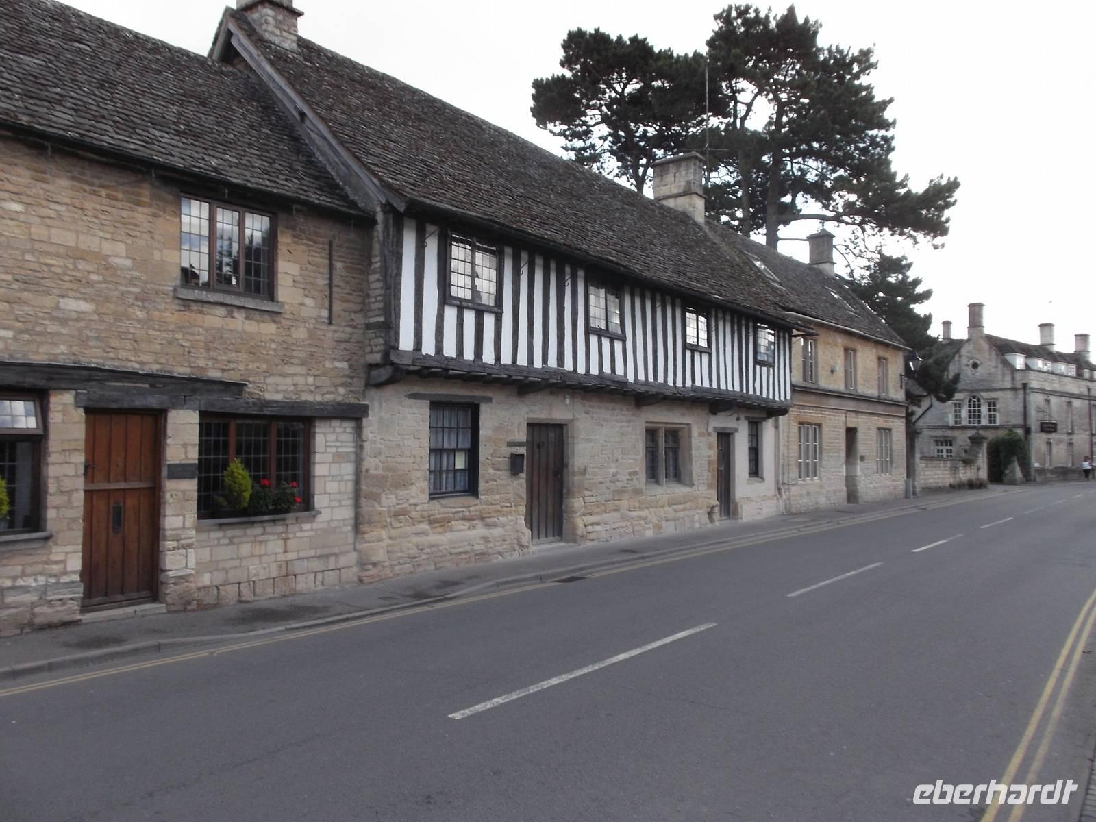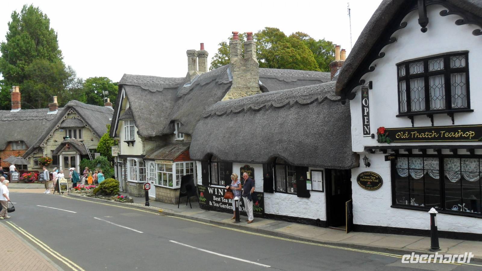 Heute Morgen fuhren wir nach dem Frühstück in die Cotswolds. Bei wieder schönem Wetter konnten wir die in England als Naherholungsgebiet beliebte Hügelkette erleben. Die Cotswolds waren eine der ersten Regionen, denen das Tourismusministerium das Prädikat: „area of outstanding natural beauty" - Gebiet außergewöhnlicher natürlicher Schönheit - verlieh. Bekannt ist der Landstrich für seine seit dem 15. Jahrhundert bestehende intensive Schafzucht und Wollproduktion. Das bescherte den Cotswolds gediegenen Reichtum und eine Reihe von schmucken Dörfern und Marktstädtchen, erbaut für Schafzüchter, Wollhändler und Tuchmacher. Ihre Häuser ließen die Bewohner aus honiggelbem einheimischem Sandstein errichten - dem sogenannten Oolith. Unser erstes Ziel hier in den Cotswolds war das Vorzeige-Städtchen Burton-on-the-Water. Hier verläuft das Leben traditionell und für den heutigen Samstag war für das winzige Städtchen am Fluss Windrush mit einem Ansturm von Ausflüglern aus den umliegenden Großstädten zu rechnen. Zahlreiche, das hier kaum knietiefe Flüsschen überquerende Bogenbrückenm ohne Geländer haben Bourton-on-the-Water zu seinem Beinamen „Venedig der Cotswolds" verholfen.