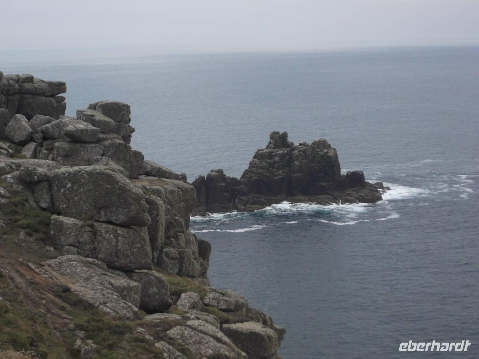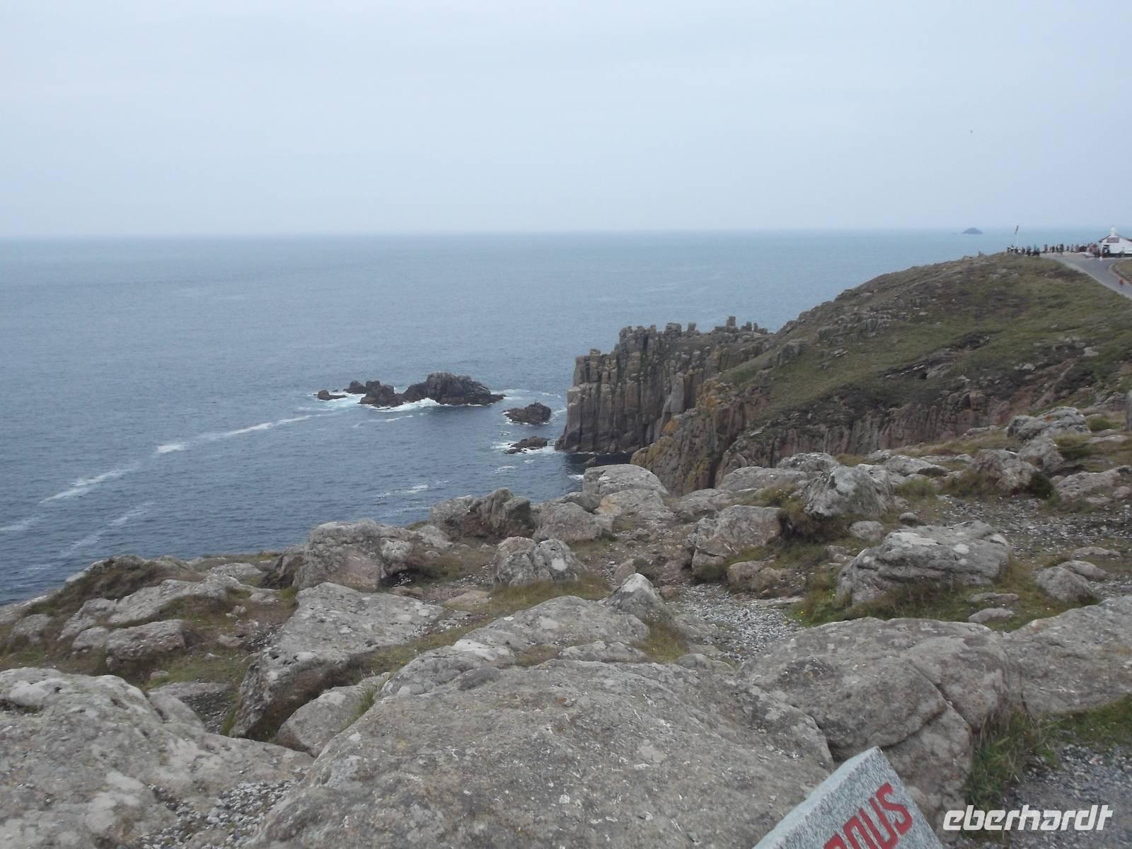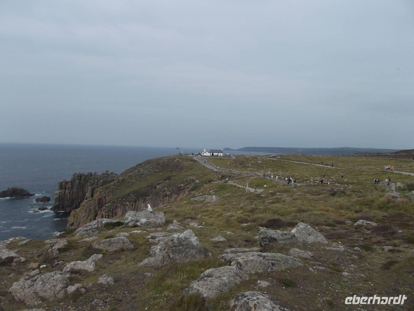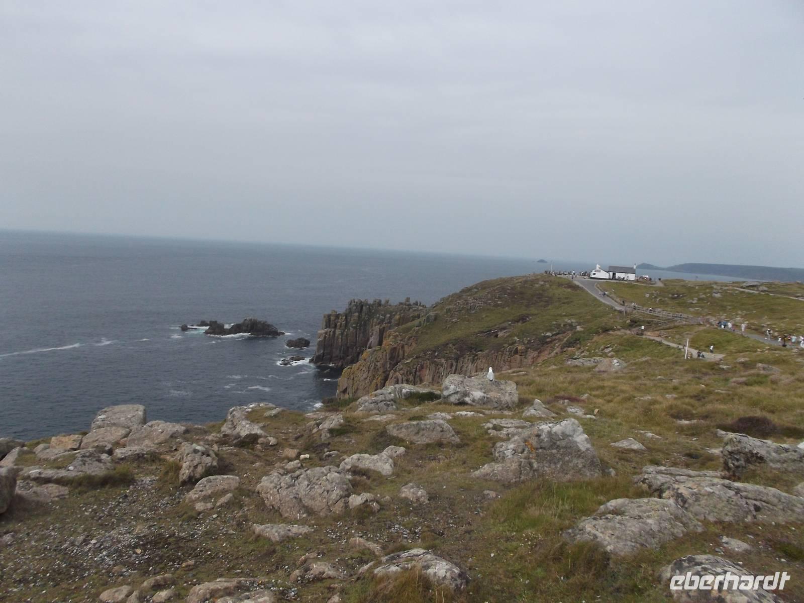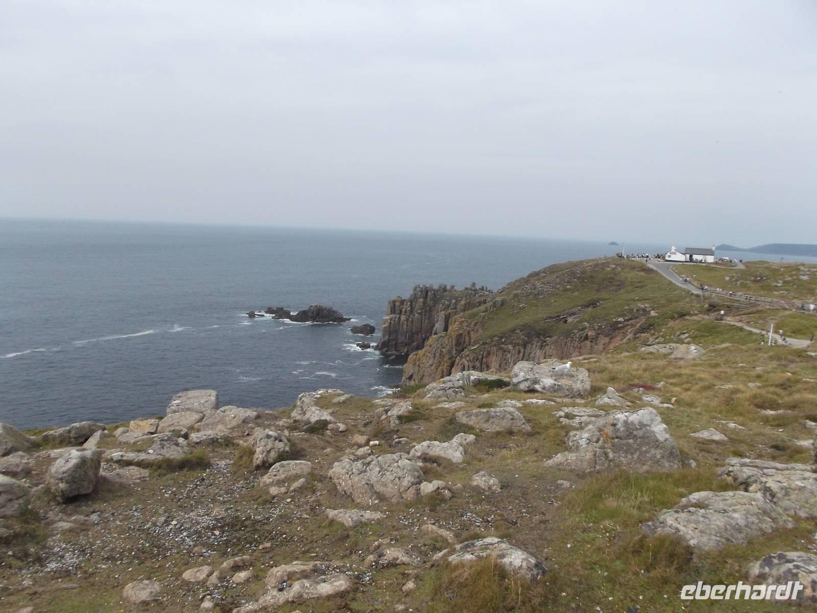 Unser weiteres Ziel für heute hieß Lands End. Es handelt sich um die Südwestspitze Cornwalls, die den wild zerklüfteten südwestlichen Zipfel Großbritanniens bildet und entgegengesetzt" der Nordostecke John O'Groats in Nordostschottland liegt. wo wir auf unserer Reise „Schottlands westliche Inseln und die Magie der Highlands" verweilen. Die Spitze der Landzunge ist der westlichste Punkt Englands auf der Hauptinsel Großbritannien. Für die Schiffahrt unerlässlich und markante Landmarke ist der etwa zwei Kilometer von Land's End südlich vorgelagerte Longship Leuchtturm. Wegen der geographischen Lage ist Land's End oft Ausgangspunkt von Wanderungen quer durch Großbritannien oder auf den Küstenpfaden und man blickt - der Legende nach - von der Felsenwildnis vobn Land's End direkt in das versunkene Königreich Lyonesse, das der Artussage zufolge zwischen hier und den Scilly-Inseln gelegen haben soll.