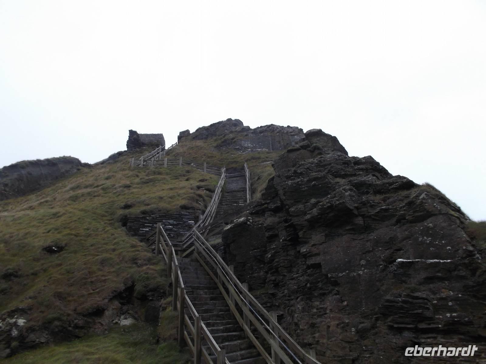 Die nur noch in wenigen Resten erhaltene, riesige Burg Tintagel, an der cornischen Küste gelegen, wird als sagenhafter Geburtsort von Artus vermutet. Trotz drohendem Regen besuchten wir die legendäre Stätte, deren imposante Ruinen sich über zwei Berggipfel mit einer Schlucht dazwischen erstrecken. Herrliche Ausblicke über das Meer und die Küste von Cornwall, eine eindrucksvolle Höhle unter dem Burgberg, in der einst der Zauberer Merlin mit seinem Drachen gelebt haben soll und das stimmungsvolle Ambiente des nahegelegenen Dörfchens Tintagel sorgten für eine tatsächlich fast mythische Atmosphäre.