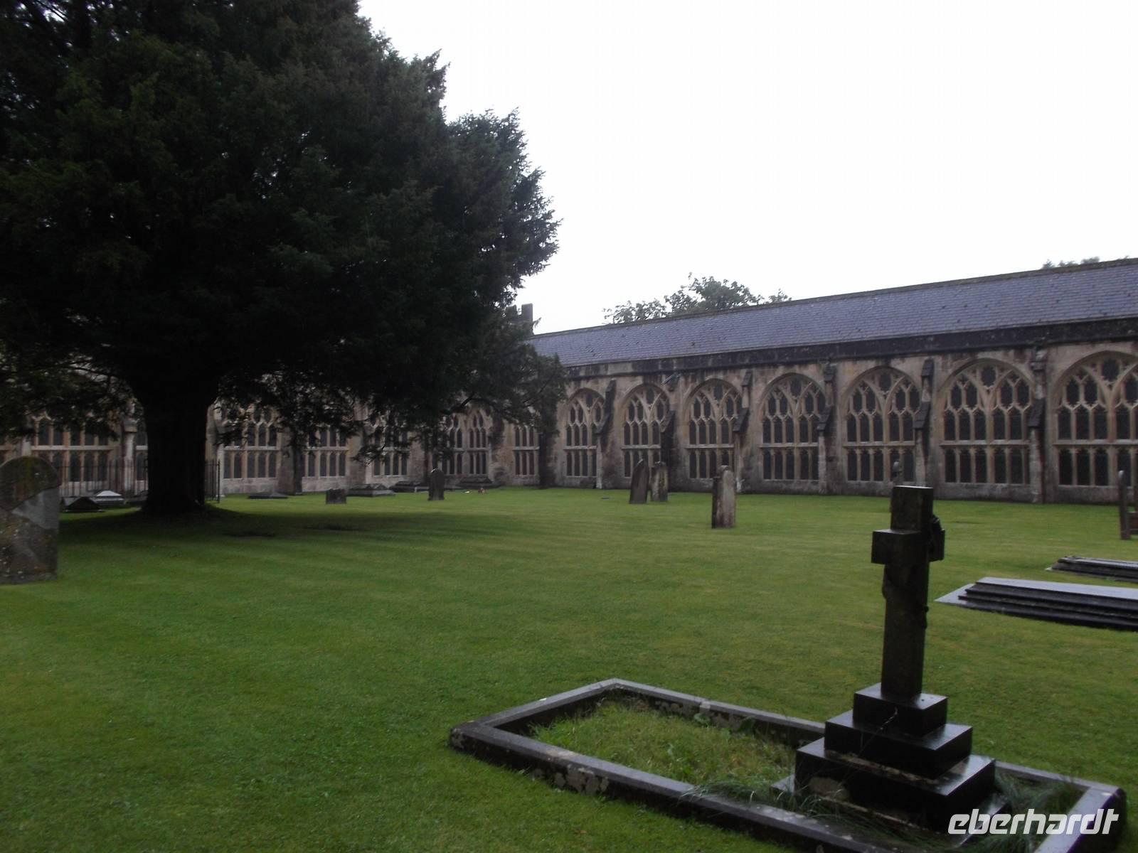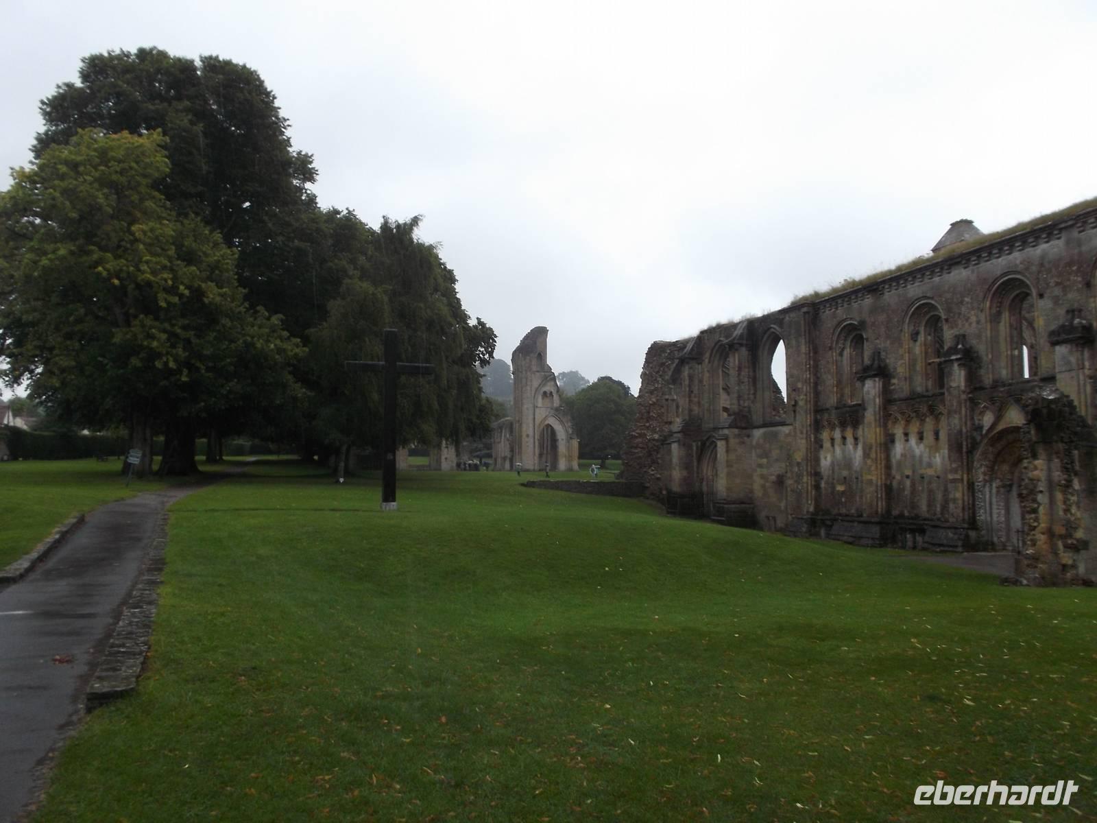 Nach dem Frühstück machtern wir uns auf den langen Weg über Schnellstraße und Autobahn von Falmouth bis ins Herz der Grafschaft Somerset. Unser Ziel, das wir nach mehreren Staus und in sdtrömendem Regen erreichten, hieß Glastonbury. Einst beherbergte die hiesige Abtei die größte Kirche Englands und war das reichste Kloster des Landes. Heute ist die Kleinstadt aufgrund der Ruinen der Glastonbury Abbey und der darum rankenden Mythen und Legenden - die auch den nahegelegenen Hügel Glastonbury Tor mit einschließen - fast so etwas wie ein moderner Wallfahrtsort. Zudem erhob früher Glastonbury den Anspruch, das sagenhafte Avalon zu sein. Anknüpfenmd an unsere Erlebnisse vom Vortag tauchte auch hier der im Süden Englands allgegenwärtige Artus auf. Seit dem 12. Jahrhundert zeigten die hiesigen Mönche sein Grab in der Abtei von Glastonbury. Diese einstige Benediktinerabtei war das reichste, bedeutendste und wohl auch an Legendenreichtum führende Kloster des Landes - bis Heinrich VIII. bei der Einführung der anglikanischen Kirche das Kloster auflöste und den letzten Abt hinrichten ließ.