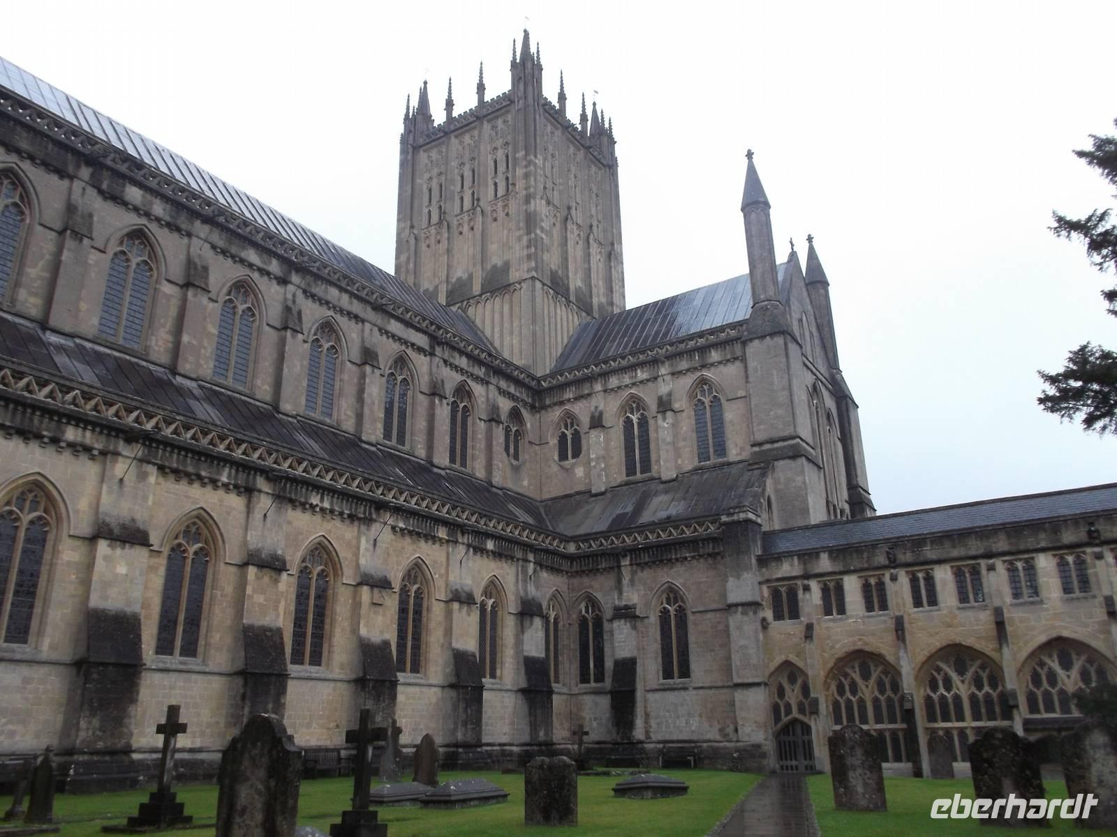 Leider verhinderte einsetzender strömender Regen unsere ausgiebigere Besichtigung des geheimnisvollen Steinkreises von Stonehenge , für den Kalenderfunktionen und die Nutzung für astronomische Berechnungen von Sonne, Mond- und Sternumläufen nachgewiesen sind. Es ging weiter nach Salisbury, wo wir bei einer kleinen Führung das „Cathedral Close", den Kathedralbezirk der der Jungfrau Maria geweihten Domkirche von Salisbury kennenlernten. Der gewaltige gotische Bau steht inmitten eines umfangreichen ummauerten Bereiches mit Colleges und Verwaltungsgebäuden, die früher den Kernbezirk des Bistums bildeten. Das Bauwerk selbst hat viele Höhepunkte zu bieten - die „Kirchenfreiheit", englisch „Cathedral Green" ist die größte ihrer Art in Großbritannien, beherbergt den größten Kirchenbau des Landes mit dem höchsten Kirchturm des Königreiches und besitzt das längste Langhaus. Prachtvolle Gotik schmückt die Kirche, die man im 13. Jahrhundert in relativ kurzer Bauzeit errichtete, wenn auch ihre komplette Fertigstellung weitere zwei Jahrhunderte andauerte. Für die Besichtigung des wundervollen Bauwerkes sollte man sich Zeit lassen - sowohl die Außenansicht mit einer ansatzweise vorhandenen Schirmfassade, die damals gerade erst modern wurde und die anders aussieht als deutsche oder französische Kirchenbauten der gleichen Zeit, als auch das eindrucksvolle Kircheninnere mit seiner unglaublichen Raumwirkung sind weltweit etwas ganz Besonderes. Die Vielfalt des Innenraumes nimmt einen sofort gefangen und man kann erst allmählich Details, Verzierungen und Schmuckelemente erkennen. Auch Großbritanniens größter Kreuzgang gehört zur Kathedrale und sein Kapitelhaus beherbergt ein kleines Museum mit einer der vier erhaltenen Urschriften der „Magna Charta", eines Privilegienbriefes für die britischen Adeligen, ausgefertigt in Runnymeade 1215 von König Johann. Für Großbritannien ist es die einzige geschriebene Art von Verfassung, die das Land besitzt.