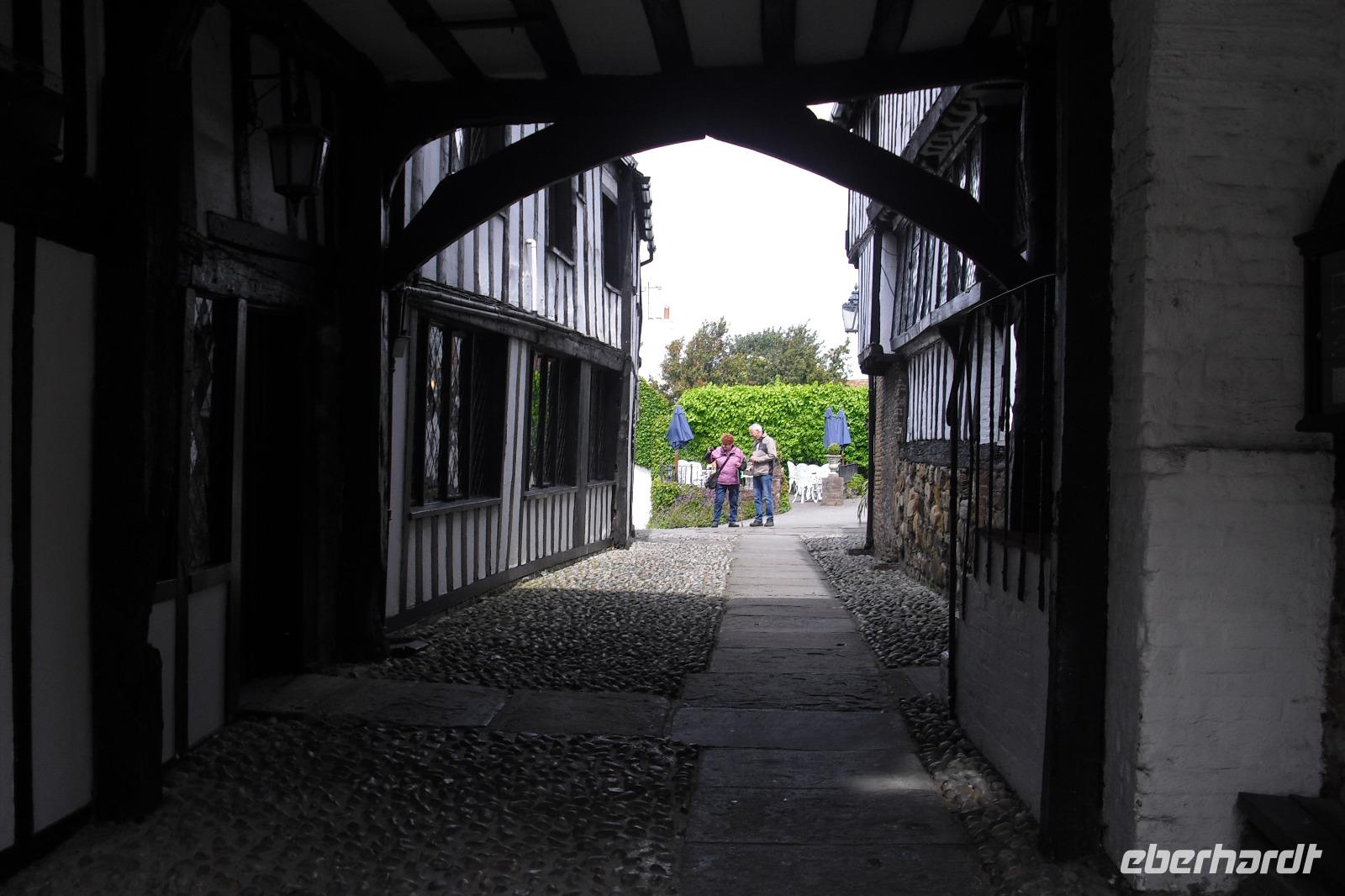 wieder heraus.Einen Blick hatten wir auch in die erste und am längsten zusammenhängend bewohnte Reihenhaussiedlung der Welt - VICAR`S CLOSE . Geplant wurde die Straße 1348 von Bischof Ralph von Shrewsbury mit 42 Häusern. Hier wohnen die Lehrer der Domschule.