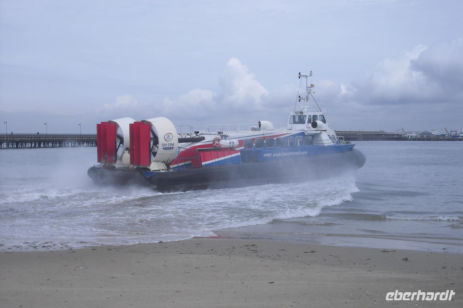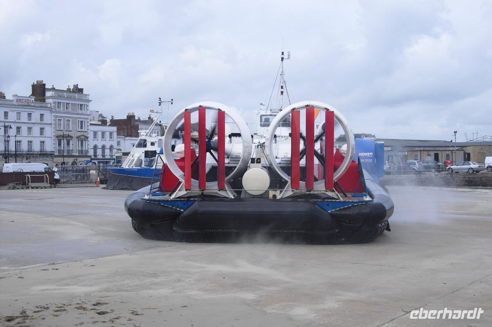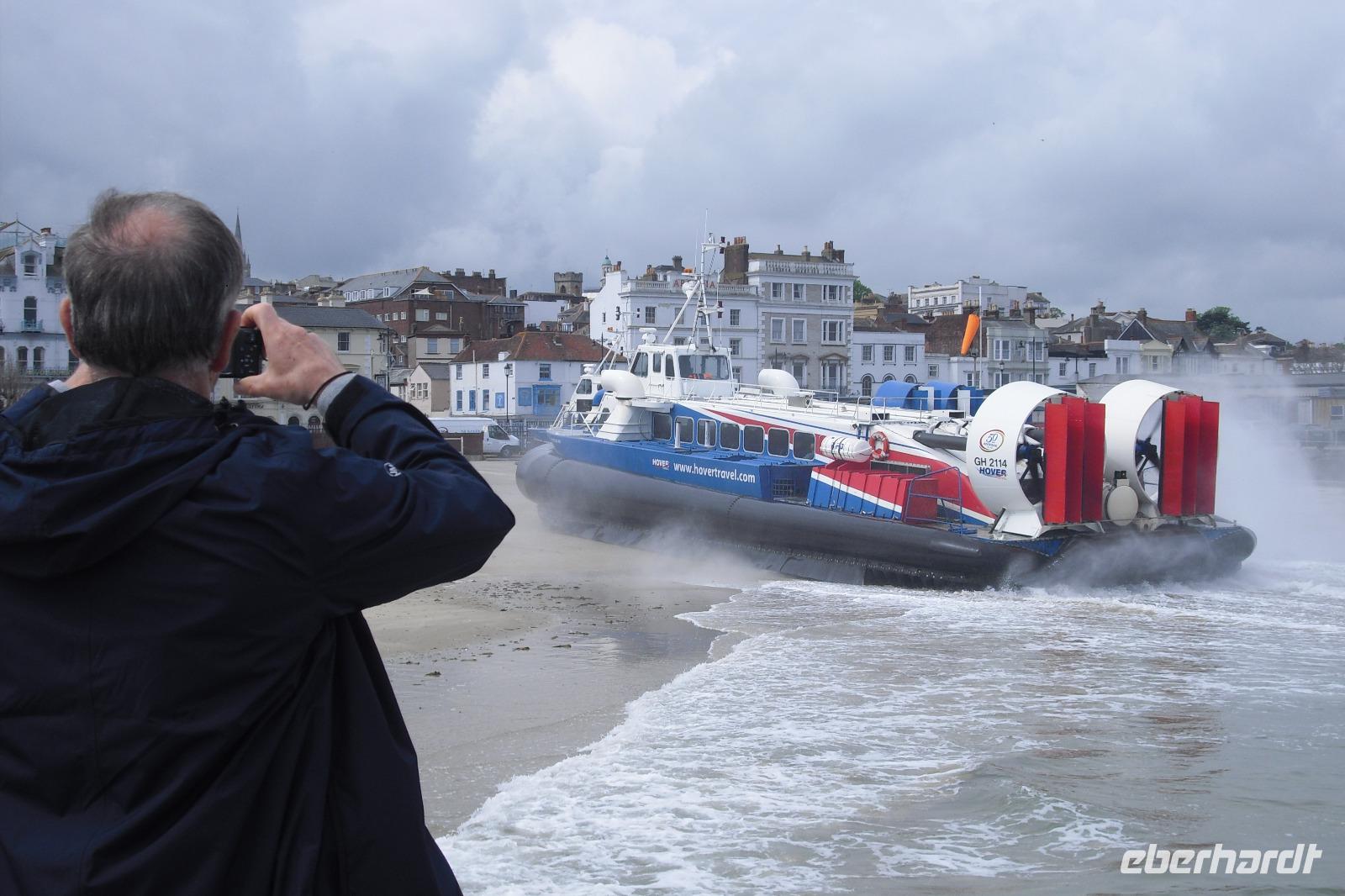 Wir erreichten unsere Fähre und setzten zur "Blumeninsel" über, der kleinsten Grafschaft Großbritanniens. Das erste Ziel war Ryde, die Metropole der sonnenscheinreichsten Insel Großbritanniens. Hier machten wir einen kurzen, aber nicht japanischen Fotostopp, um die Landung eines Luftkissenbootes von HOVER TRAVEL zu erleben, der einzigen Luftkissenbootsverbindung Großbritanniens. So viele einzigartige Attribute Großbritanniens! Nicht schlecht, aber es ging weiter. Weiter nach Godshill, einem pittoreskem Dorf mit reetgedeckten Dächern, einem Pub von 1600, vielen geschmückten Cottages, einem Model Village und der Kirche auf dem Gotteshügel, der Fotografen schon einmal ins Schwärmen geraten läßt. So auch viele von uns, die den Hügel erklommen haben.