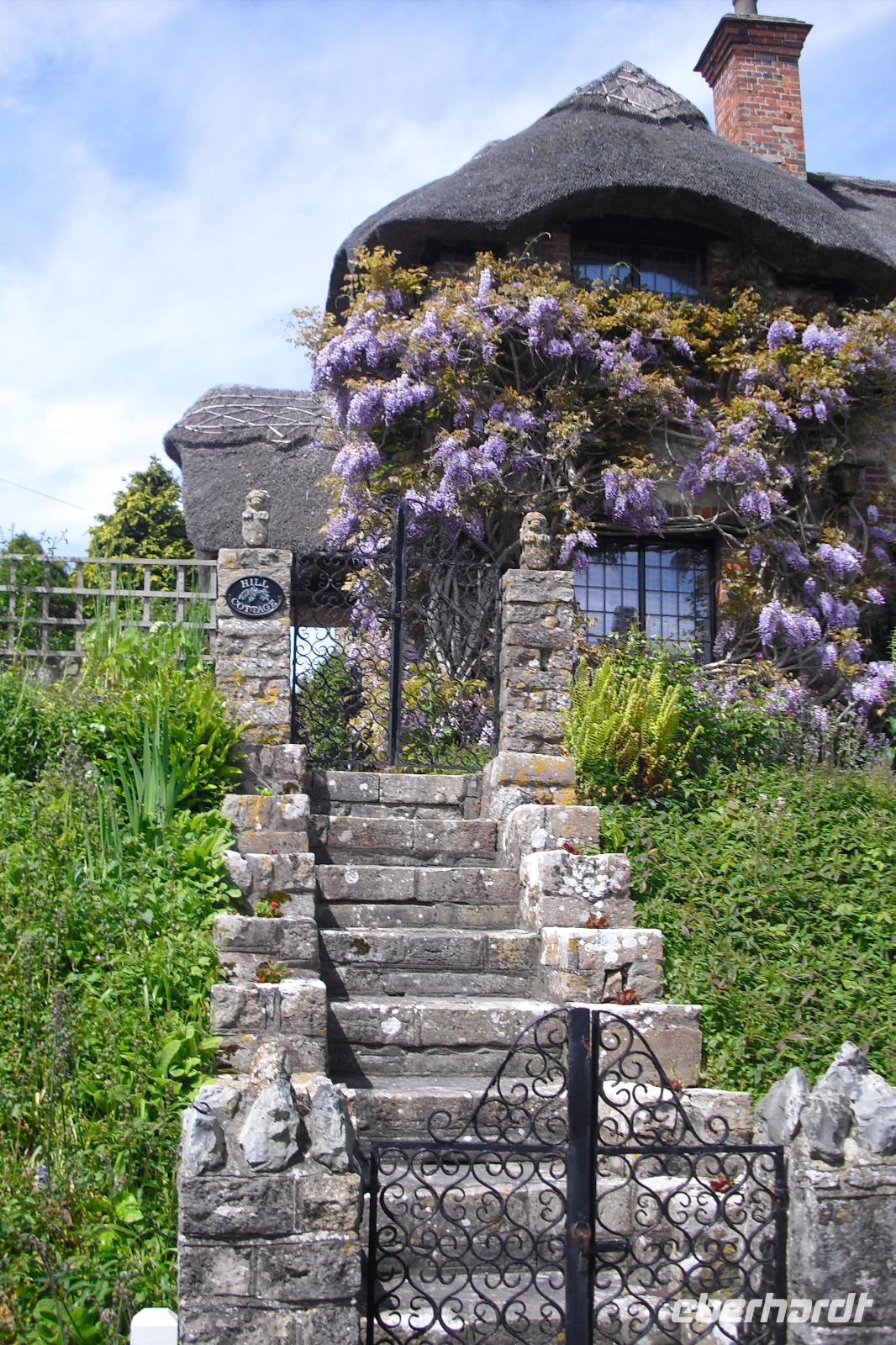 Ein pittoresker Ort aber kein Alterswohnsitz. Ein Dorf mit etwas mehr als 100 Einwohnern und einer steil nach unten (oder nach oben) führenden Dorfstraße, die gesäumt ist mit blumengeschmückten Cottages. Für Besucher Idylle pur. Wir konnten hier eine Tea Time genießen, auch weil das Wetter gut mitmachte.