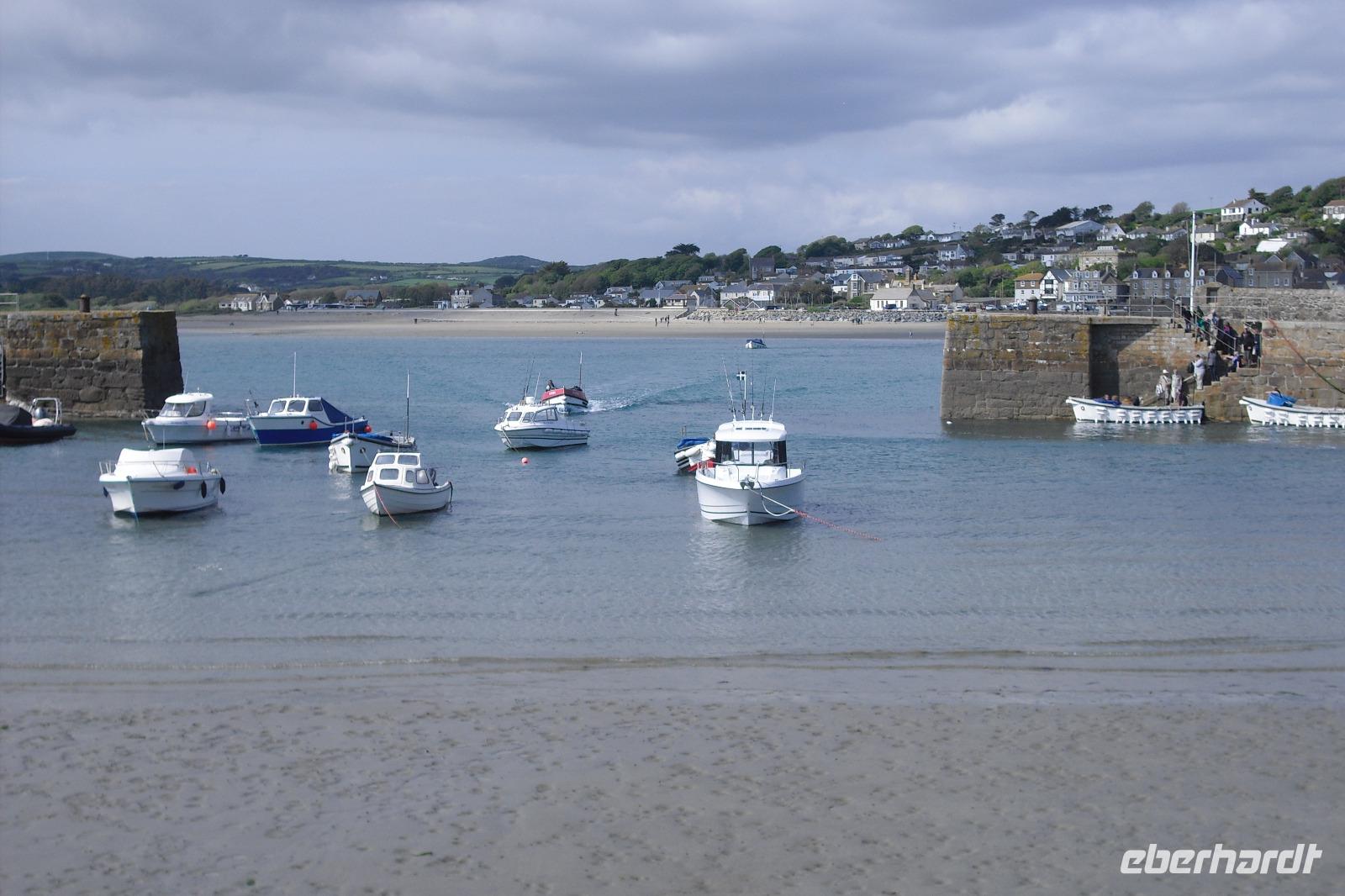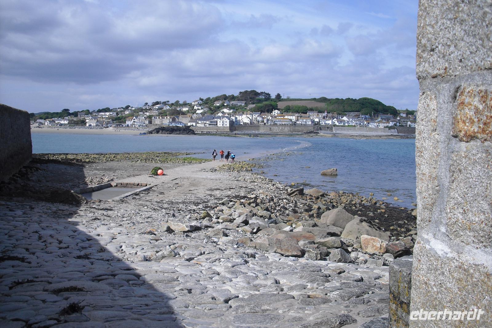 Der Nachmittag gehörte dem Besuch von St. Michael`Mount. Im Jahr 495 soll den Fischern der heilige Michael erschienen sein und somit galt nun dieser Platz als heilig. Wilhelm der Eroberer überließ den bretonischen Benediktinermönchen des Mont St. Michel die Bruderabtei und diese begannen zu bauen. St.Michael´s Mount war bald eine der Stationen des irisch-schottisch-englischen Pilgerweges. Heinrich VIII. beendete die kirchliche Nutzung und ließ die heilige Stätte in eine Burganlage umbauen. Mitte des 17.Jh. übernahm die Familie St.Aubyn die Gezeiteninsel und baute die Burganlage zu einem Landsitz um. Seit 1954 wird die Anlage vom National Trust verwaltet und betreut. Wir bewegten uns zu Fuß zur Insel, besichtigten das Innere des Gemäuers und mußten wegen der Flut mit Booten zurückfahren.