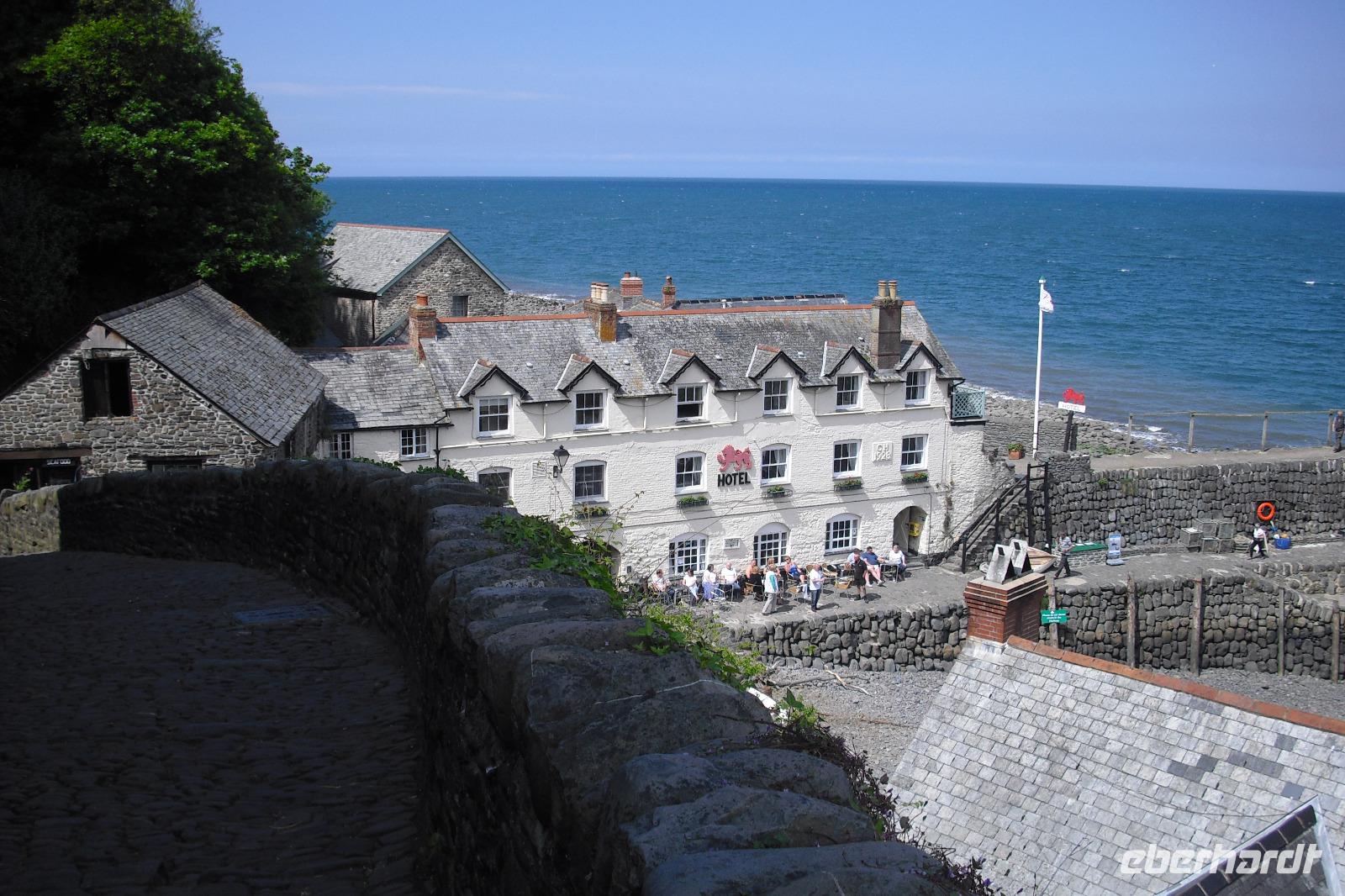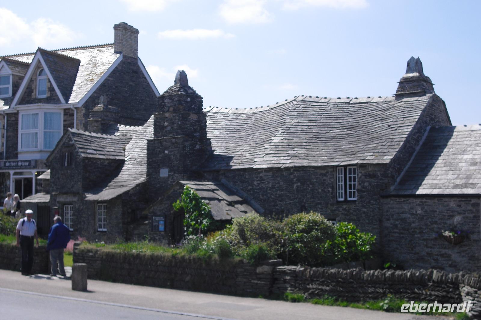 Der weit größere Teil der Reisegruppe machte nach dem Frühstück einen Tagesausflug nach Tintagel und Clovelly. Tintagel lebt, und das nicht schlecht, vom Mythos des edlen Keltenherrschers König Artus. Grund für den Besucherandrang ist eine Burgruine auf zwei Klippen hoch über dem Wasser. Hier soll Artus als Schüler des Zauberers Merlin aufgewachsen sein und am Fuß des Burgberges soll Merlin seine Höhle gehabt haben. Das die Burganlage bzw. ihre Reste ca. 700 Jahre später entstand, läßt Esoteriker kalt. Als sehenswert in Tintagel gilt wohl das Old Post Office und war beliebtes Fotomotiv.