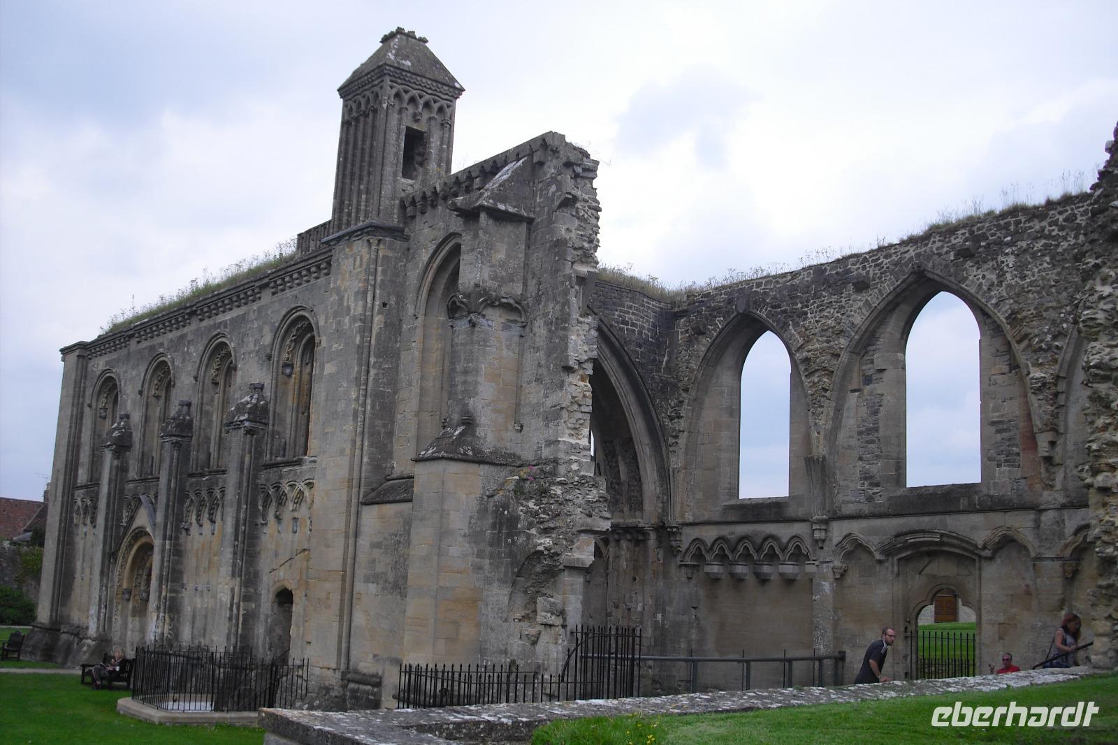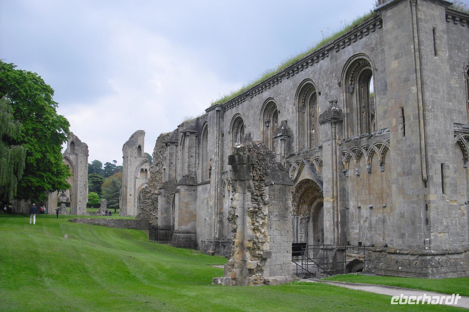 Nach Tagen des Sonnenscheins und einem vorletzten englischen Frühstücks brachen wir bei wolkenverhangenem Himmel von Newquay auf. Einen ersten Stopp legten wir mitten im Bodmin Moor ein und lernten einen alten Schmuggler-Pub kennen. Hier entstand auch unser Gruppenfoto. Wer die Atmosphäre nachempfinden möchte, dem ist das Buch "JAMAICA INN" von Daphne du Maurier zu empfehlen. Mit einer Servicepause auf dem Weg nach Glastonbury gelangten wir am frühen Nachmittag zu einem der frühesten christlichen Klöster Großbritanniens - GLASTONBURY ABBEY. Auch hier trafen wir auf König Artus, denn hier sollen die Gräber von Artus und seiner Frau Guinevere gefunden worden sein. Auch wenn das Kloster 1539 aufgelöst wurde und die einst prachtvolle Kirche Bilderstürmern zum Opfer fiel - die vorhandenen Ruinen lassen auch heute noch ahnen, wie eindrucksvoll die Gesamtanlage beschaffen war. Beim kleinen Bummel durch den Ort sahen wir das steinerne Marktkreuz, die über 600 Jahre alte Pilgerherberge George and Pilgrim`s Hotel, das aus dem 15.Jh. stammende Gerichtsgebäude THE TRIBUNAL und auch jede Menge esoterischer Wallfahrer.