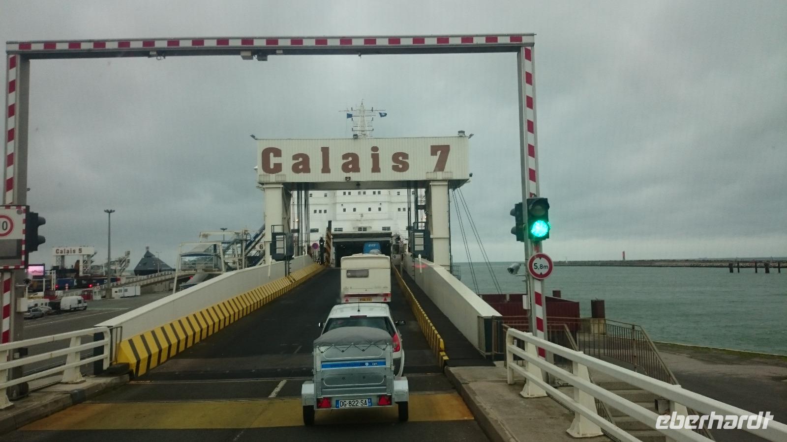 Es waren über 1.000 Kilometer, die wir an diesem Tag von Dresden nach Calais fuhren. Das Wetter war gnädig und sandte uns nicht zu viel Hitze und so kamen wir zwar müde, aber zufrieden nach mehreren Grenzüberfahrten nach den Niederlanden und Belgien in der Hafenstadt Calais in Frankreich an. Zwar sahen wir die Flüchtlingslager in der Nähe der Zufahrt zum Eurotunnel, doch die Stadt geht mit diesem Zeitgeschehen derzeit und vor allem in enger Zusammenarbeit mit Großbritannien professionell und sicher um. In unserem Hotel am Hafen sahen wir bereits die an- und ablegenden Fähren gen England und genossen Abendessen und Ruhe.