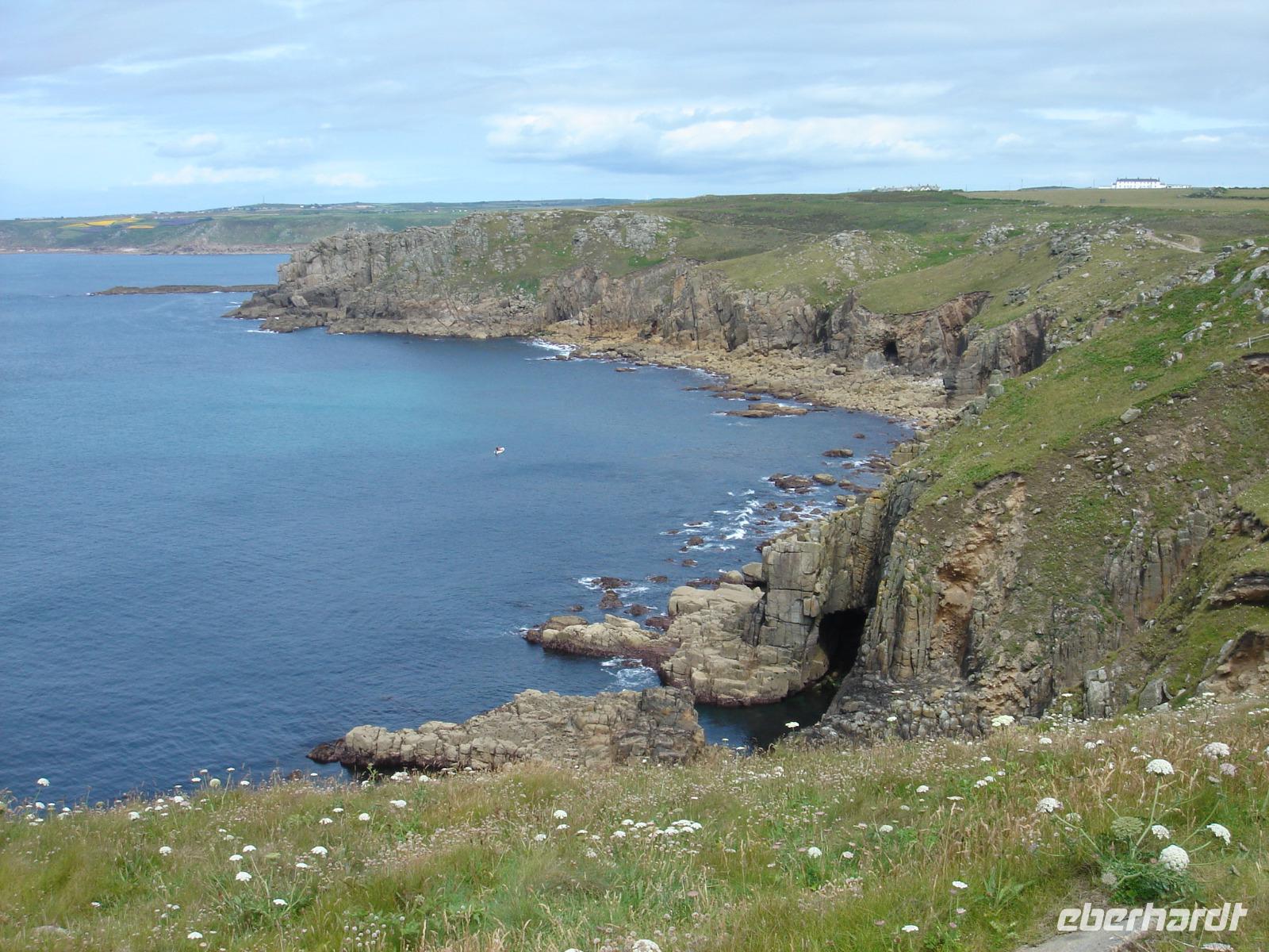 Der bereits an der französischen Nordküste unterwegs war, kennt sicher den dortigen Pendant zu unserer am heutigen Vormittag besuchten Attraktion. Ein Felsen mitten im Wasser, der nur bei Ebbe über einen Steg zu Fuß´erreichbar ist, ansonsten mit dem Boot angefahren werden muss. Darauf befindet sich ein Schloss, gesichert mit schönen alten Kanonen und ausgestattet mit interessantem Mobiliar sowie gestaltet in verschiedenen Baustilen der englischen Hochepochen. Ein toller Besuch! Danach ging es nicht ans Ende der Welt, sondern des Landes. Der westlichste Punkt der Hauptinsel Großbritannien, Lands End, wurde angefahren. Früher strandeten hier oft Schiffe. Es ist gar nicht so lange her, erst zu Beginn der 2000-er, da fuhr ein deutsches Schiff, die RMS Mühlberg, noch auf und liegt heute als Wrack vor dem etwas wie ein Freizeitpark gestalteten Gebiet um das Ende des Landes. Wir wanderten etwas auf den Klippen entlang, schauten aufs Meer und genossen den leichten, warmen Seewind, ehe wir noch einen Hafen- und Einkaufsort, eher ein groß gewordenes Dorf besuchten. St. Ives. Mit dem Shuttlebus fuhren wir vom Busparkplatz in den Ort, wanderten durch die Straßen und Gassen, shoppten etwas, sahen den Hafen und fuhren wieder hinauf und zurück zum wartenden Jan mit seinem Bus, ehe wir wieder in unser Hotel zum Abendessen zurückkehrten.