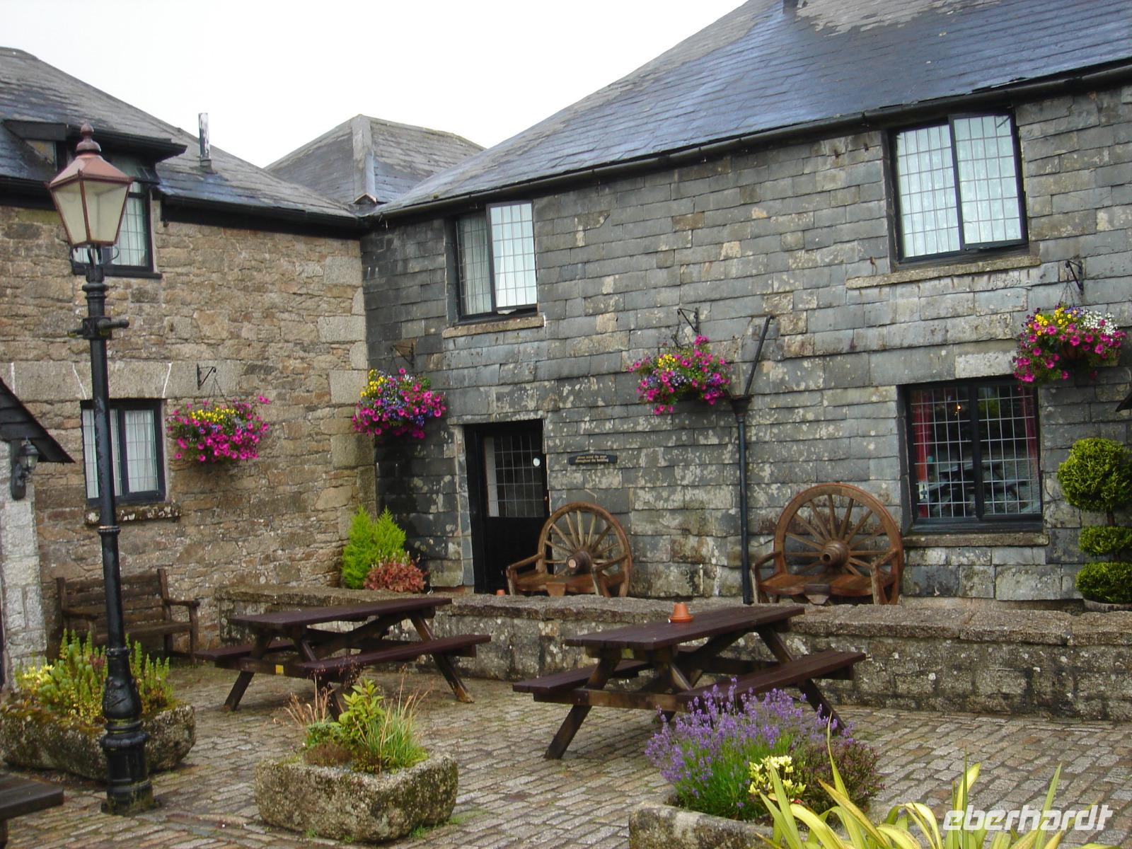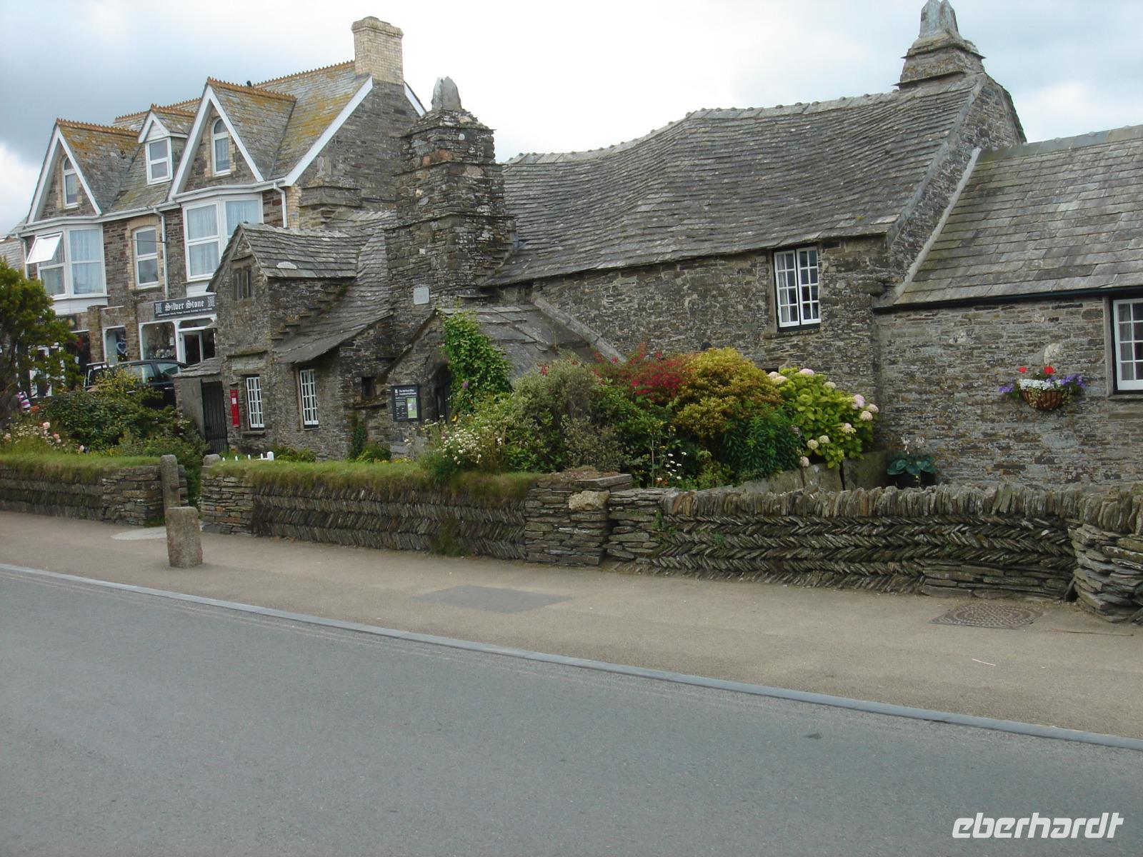 Mystik versprach die Ausschreibung des Tages im Programm. Das Wetter jedoch bot und herrlichen Sonnenschein an, den wir natürlich genossen, als Jan unter Stefans Erklärungen den Bus gen Dartmoor fuhr. Im kleinen Ort Postbridge besuchten wir eine Jahrhunderte alte Brücke, die alte Clapperbridge, über die man heute noch gehen kann. Dann bei der Weiterfahrt sahen wir wild lebende Dartmooponys und Stefan las uns eine spannende Stelle aus Doyles Roman „Der Hund von Baskerville" vor, berichtete auch vom alten deutschen Film „Das Wirtshaus im Dartmoor" und gleich darauf hielten wir noch am darin vorkommenden Gefängnis in Princetown, ehe uns Stefan im weiteren Verlauf auf der Fahrt nach Travistock, wo wir einen kleinen Ortsbummel machten, eine verrückte Geschichte rund um einen Sir Henry Arthur und ein junges Paar erzählte, die er sich wohl ausdachte, die jedoch sehr an die Erzählungen eben jener Frau erinnerte, deren Gebiet wir nun erreichten. Rosamunde Pilcher. Was haben wir gelacht! Um noch besser in eben jene Gedanken eindringen zu können, fuhren wir nun nach Polperro, einem kleinen Fischerdorf, in dem wir wieder einmal das nahe Miteinander von altem Handwerk, schönen Häusern und Tourismus erlebten und genossen. Später ging es zu unserem die nächsten drei Nächte bewohnten Hotel direkt am Meer in Newquay. Surfer nutzten nicht nur bei unserer Ankunft die perfekten Wellen in der kleinen Bucht vor dem Hotel und wir bezogen unsere meist mit Seeblick ausgestatteten Zimmer und genossen bald das Abendessen und etwas Ruhe zum Ausspannen und Kraft tanken für den nächsten Tag.
