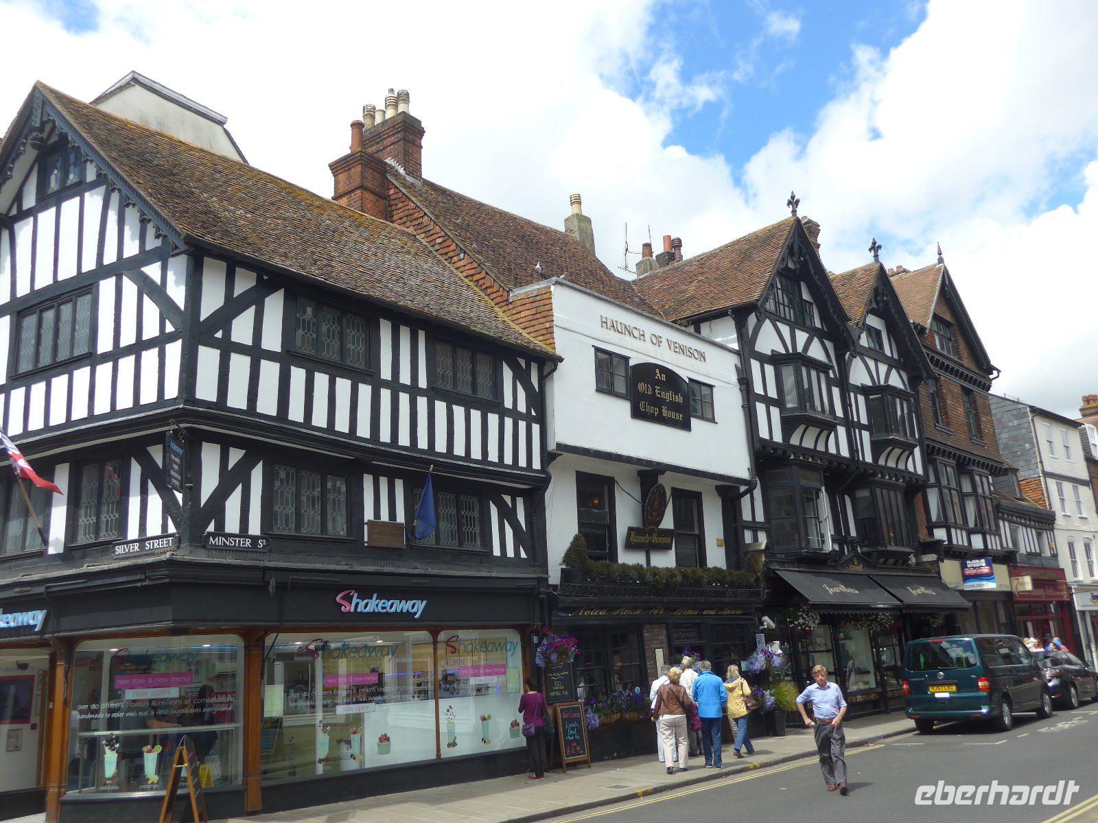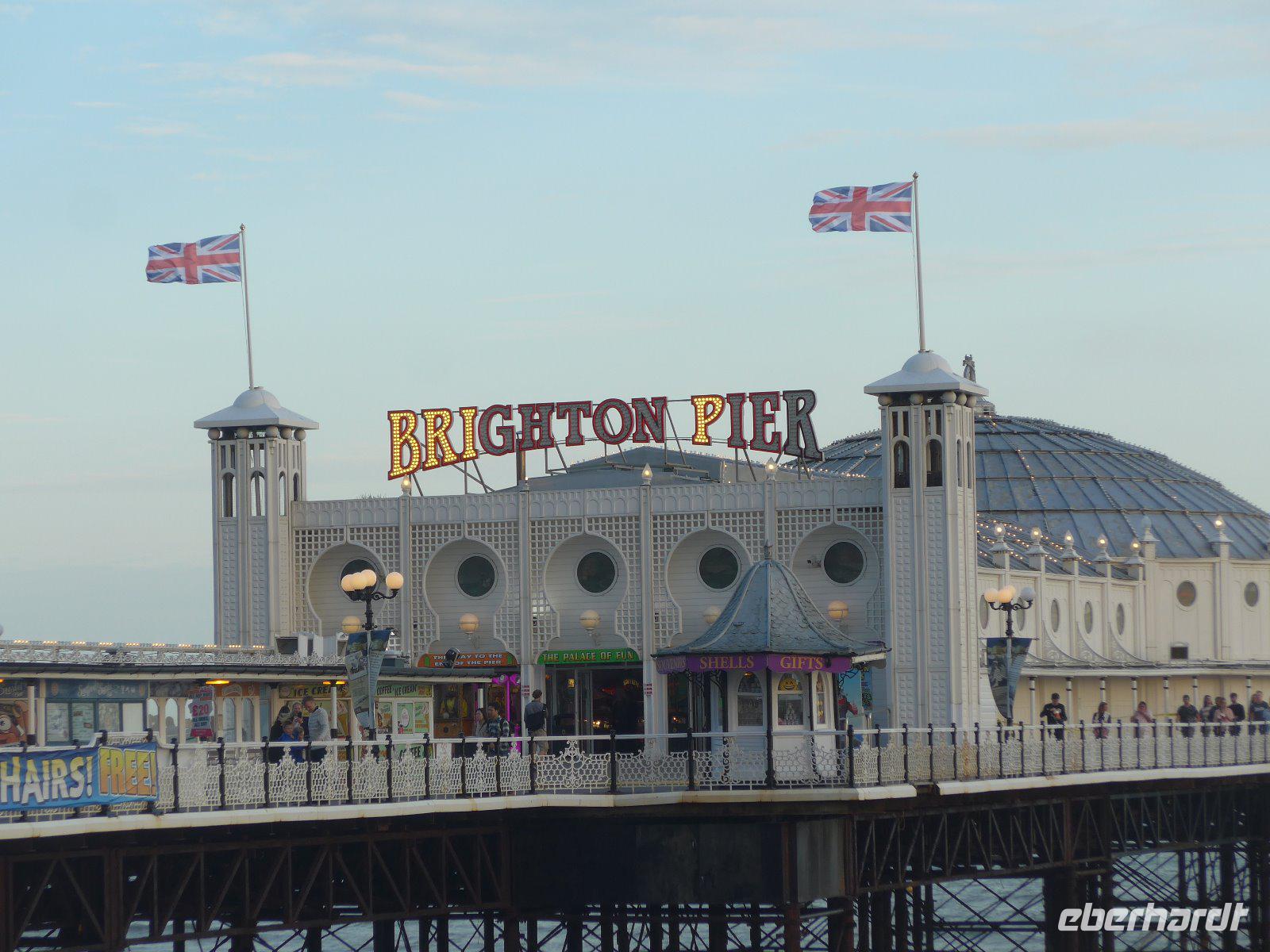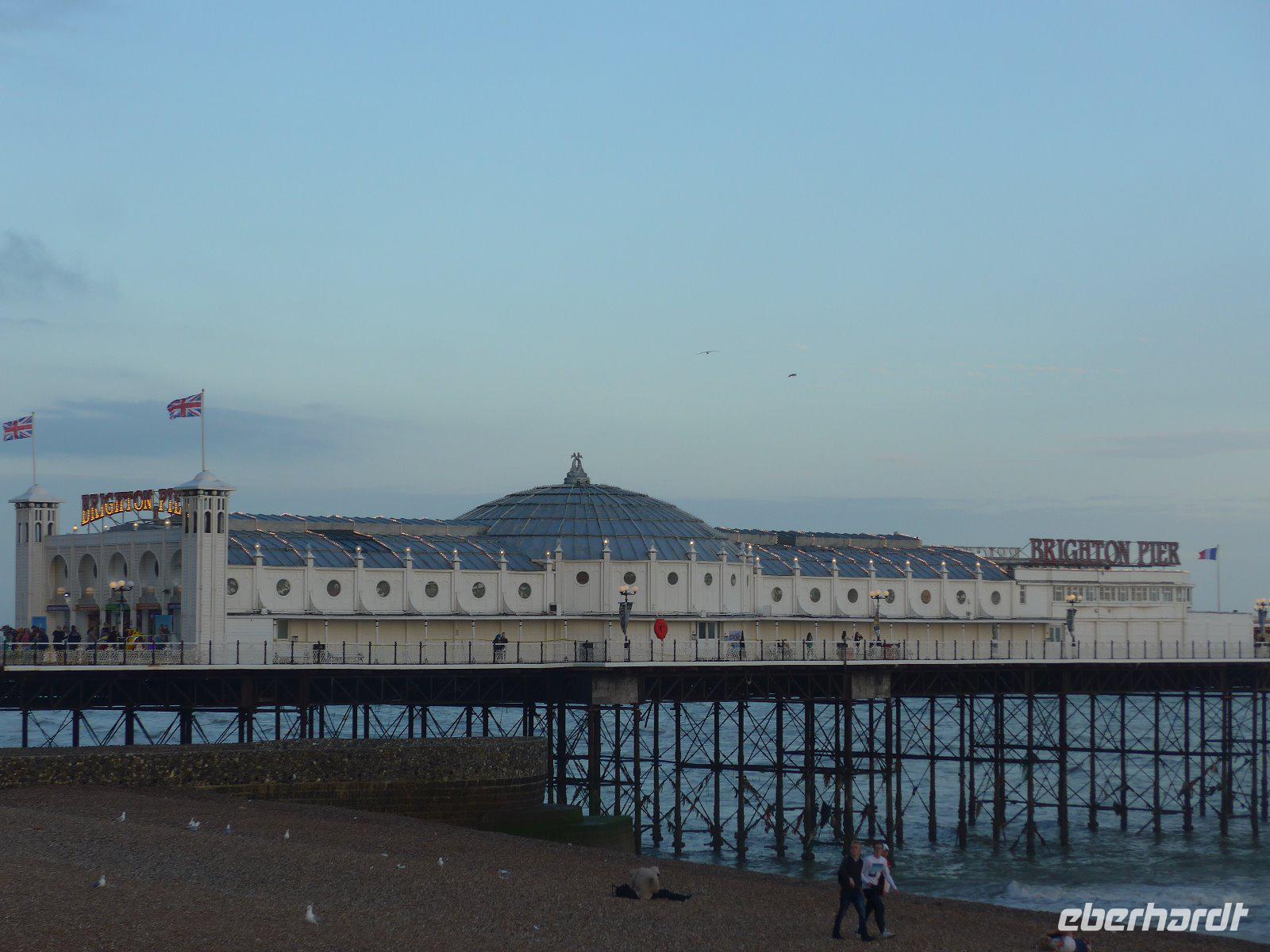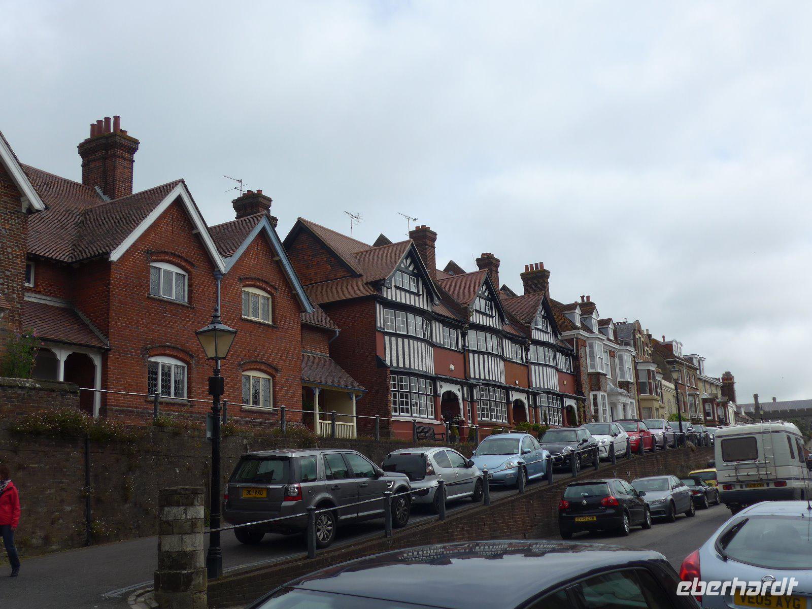 Schon zeitig starteten wir zur Überfahrt nach Dover. Am Ende hießen uns die Weißen Klippen, die die Römer „Albions" nannten, willkommen. Übrigens die Fährüberfahrt ist ein Geschenk der „Eiszeit". Einst mit dem Festland verbunden entstand erst mit dem Schmelzwasser und des Ansteigens des Meerespiegel der Ärmerkanal u. die Inselgruppe, die noch heute der Stolz der Briten ist. Nun als wir Britischen Boden betraten war die erste Aufgabe - Uhren eine Stunden zurückdrehen, denn hier gilt GMZ. Vom Fährhafen aus entlang der Küste nach Rye. Die Marschlandschaft ist dünn besiedelt und liegt teilweise unter dem Meeresspiegel. Ein Landschaft, die sich durch Menschenhand im Laufe von Jahrhunderten gebildet hat. Die Urbanmachung führte aber auch dazu, dass Seehäfen wie zum Beispiel in Rye vollständig verlandeten. Kaum zu Glauben dass dieses Städtchen einst im Mittelalter einer der wichtigen Häfen an der Kanalküste hatte. Dennoch ist der Charme der alten Tage geblieben. Enge Kopfsteinpflastergassen gesäumt von Fachwerkhäusern waren ideale Fotomotive, die zahlreiche Fotos auf unserem gemeinsamen Rundgang nach sich zogen. Höhepunkt war natürlich die Mermaid Street, an der das ehemalige Schmugglerlokal „Mermaid Inn" liegt. Anschließend ging es auch schon weiter in Richtung Brighton. Haistings, das durch die Schlacht im nahegelegen Battle zwischen Angelsachsen und Normannen im Jahre 1066 noch heute bekannt ist, war unser nächstes Ziel, dass wir wegen eines Unfalls und Straßensperrung nur mit Verspätung erreichten. Mittag am Westhill mit traumhafter Aussicht auf die Küste.. Noch einen kurzen Fotostopp am Beachy Head mit einem Spaziergang zum Leuchtturm. Teilweise gehen die Klippen 150 Meter in die Tiefe. Kreuze am Klippenrand zeugen von einigen Lebensmüden Menschen, die sich dort in die Tiefe stürzten. und dann ging es direkt zum legendären Seebad Brighton. Schon von der Ferne erblickten wir die Seebrücke mit Riesenrad. Ein schicker Eindruck, der aber in der Nähe der Realität weichen musste. Schon etwas in die Zeit gekommen hat es den Flair eines tyischen Volkfestplatzes - zahlreiche Fressbuden und Fahrgeschäfte und natürlich auch ein Casino - hier bewahrheitet sich vielleicht das Klischee, dass die Briten gerne und ausgiebig bei jeder Gelegenheit zocken. Nun Brighton ist heute eher eine moderne und multikulturelle Groß- u. Universitätsstadt. Wie schön thront da im Zentrum der exotisch anmutende Prachtpalast, der aus einer Laune heraus vom späteren König Georg IV erbaut wurde. Innen wie außen ein Märchen aus 1001 Nacht. Dem Verkehrschaos geschuldet musste leider für diesmal die Innenbesichtigung ausfallen - ein Grund nochmal Südengland bei Eberhardt zu buchen (in einer anderen Variante) Dennoch ein kleiner Rundgang nach dem Abendessen bildete ein guter Abschluss für den heutigen Tag.