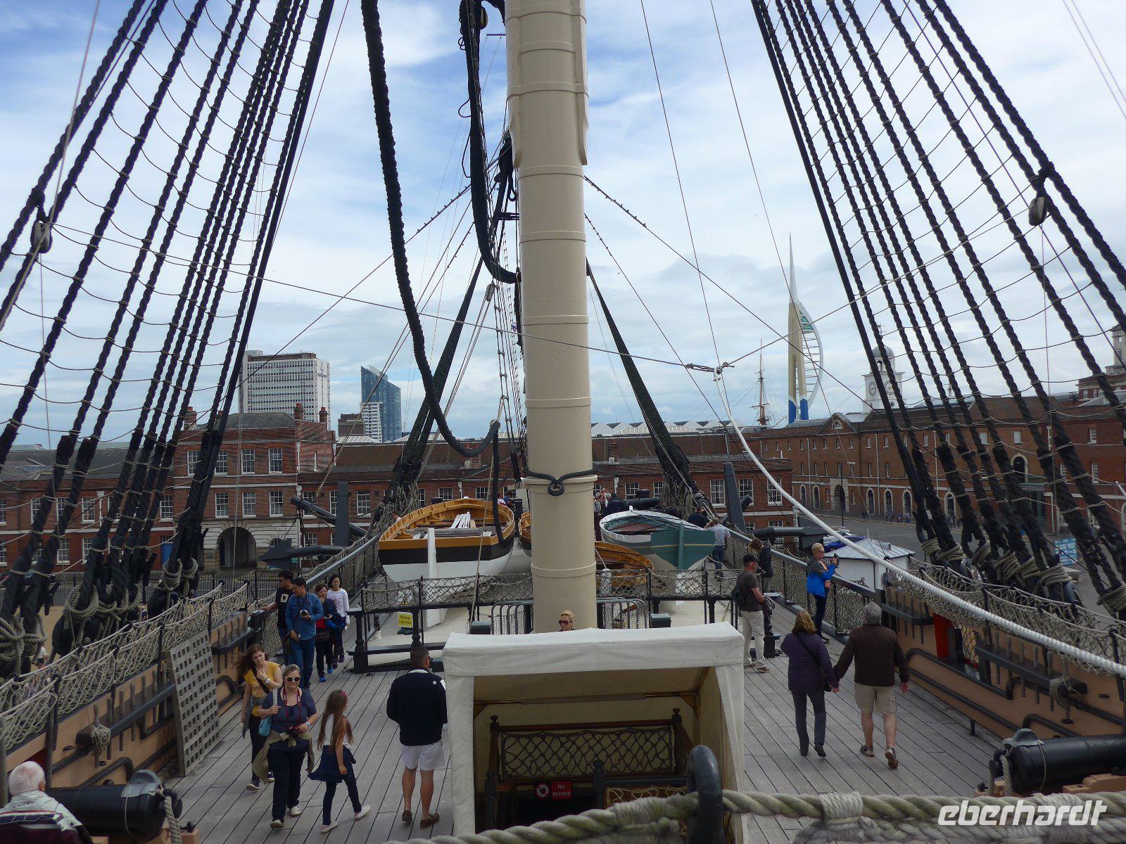 Heute steuerten wir Orte an, die in mehrerlei Hinsicht ganz eng mit der englischen Geschichte verbunden waren. Zunächst ging es über kleinere Küstenorte an das malerische Städtchen Arundel. Am Fluss Arun gelegen leitet sich der Name des Ortes auch von diesem Fluss ab. Altenglisch bedeutet Arundel so viel wie am Fluss Arun gelegen. Bekannt ist der Ort wegen seiner mächtigen Kathedrale und dem gut erhaltenen mittelalterlichen Castle. Die Stadt spiegelt in Form u. Charakter noch seinen mittelalterlichen Fußabdruck wieder und dennoch wurden gerade im 19. Jahrhundert verschiedene historische Stile imitiert. Ob Tudor-Rivival, Viktorianisch oder Flämisches Mauerwerk. Auf unserem gemeinsamen Rundgang konnten wir so manche Kostbarkeit aus rotem Backstein kombiniert mit blauen Ziegeln zu geometrischen Mustern gestaltet, entdecken. Ein Abstecher in die Kathedrale of Our Lady & St Philip Howard durfte natürlich nicht fehlen. Sie ist neben dem Castle das auffälligste Gebäude der Stadt und wurde 1868 in Anlehnung an die französichen Kathedralen der Gotik erbaut. Anschließend machten wir einen Spaziergang durch weitläufigen Park. Ein romantischer Garten im englischen Stil. Wir entdeckten ungezähmte Wiesenanlagen aber auch malerische Parkanlagen. In Mitten dieser weitläufigen Anlage ist auch die St Nicholas Parish Church. Interessant, weil sie geteilt ist - beide Konfessionen sind hier vereint. Protestantische Pfarrkirche aber hinter dem Lettner liedt die Familiengruft der Howards - eine der wenigen katholischen Familien des Hochadels und die bekanntesten des Geschlechts sind Henry Howard, der Begründer des Blankverses in der englischen Literatur sowie Thomas Howard, der im 17. Jh. den Grundstein für die erste große Kunstsammlung Englands mit seiner noch immer ansehnlichen Gemäldegalerie legte. Vom mittelalterlichen Arundel Castle sind nur noch der normannische Bergfried und die Barbakane (Tor) erhalten. Fast vollständig zerstört wurde es Ende des 19. Jh. neu erbaut. Im Neugotischen Stil erinnert es ein wenig an eine Hollywood-Kulisse. Innen beherbergt es die wertvolle Sammlung der Herzöge von Norfolk. Der abschießende Rundgang durfte dabei natürlich nicht fehlen. Ganz nebenbei erfuhren wir, dass hier auch Königin Victoria u. Prinz Albert zu Gast waren und dafür extra Mobiliar angefertigt wurde. Nun aber erstmal genug mit englischer Geschichte. Es ging e weiter in Richtung Portsmouth. Nicht nur dass diese Stadt der Geburtsort von Charles Dickens ist, nein hier fand auch das Museumsschiff HMS Victory ihre letzte Ruhestätte. Das einstiges Flaggschiff Admiral Nelsons in der Schlacht von Trafalgar wurde von uns von der Admiralskajüte bis in den untersten Schiffsraum besichtigt. Enges düsteres Licht und Geruch ließen uns das Leben an Bord ein wenig erahnen. Mit welchen strengen Sitten sahen sich die Seeleute auf ihren Fahrten ausgesetzt. Noch heute 200 Jahre nach seinem Tod konnten wir den Geist Nelson spüren. Am Ende blieb noch Zeit für die individuellen Entdeckungen u. a. die gegenüberliegenden Museen waren die Anziehungspunkte der Gruppe. Danach war es schon Zeit sich auf den Weg zum Hotel nach Farhamm zu machen - ein typisches englisches Hotel - Mischbatterien am Waschbecken noch immer ein Fremdwort - dennoch genossen wir an der Theke und im Restaurant diese Atmosphäre.