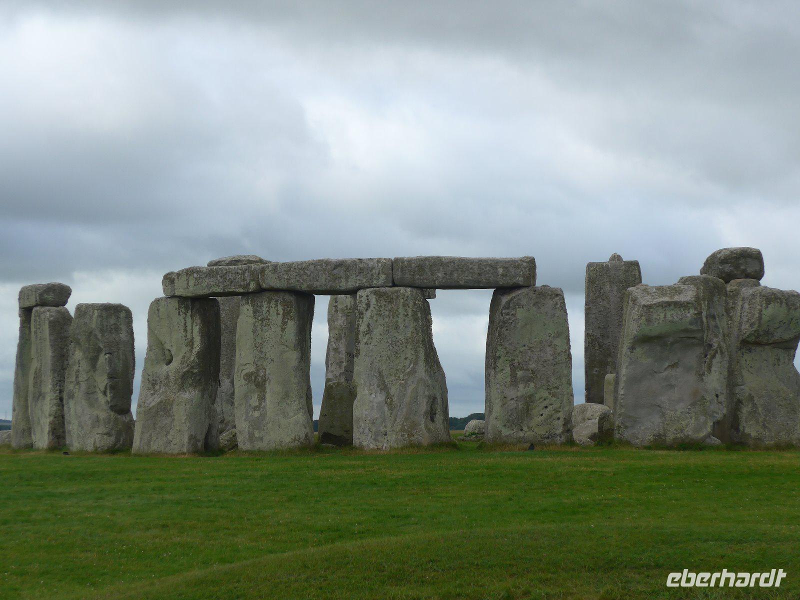 Die Deckplatten, bezeichnet als „hanging stones" (hängende Steine) gaben diesem prähistorischen Monument seinen Namen - Stonehenge.