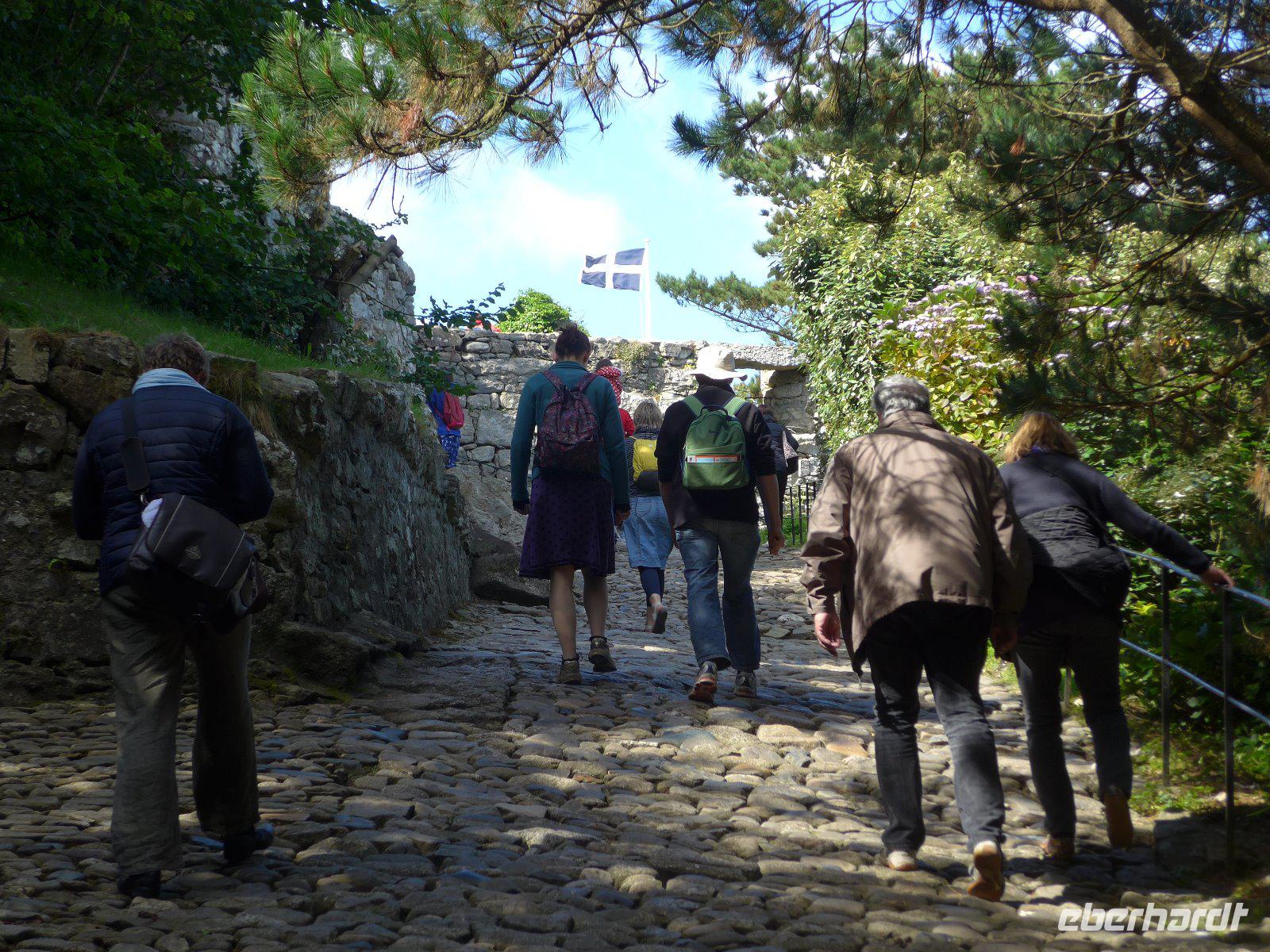 Den Mythos Artus erleben und anschließend in einem Fischerdorf Einblick in das traditionelle Leben zu bekommen oder die Annehmlichkeiten des Hotels oder des Strandes zu nutzen - wer die Wahl hat, hat die Qual. 25 Gäste wollten die Westküste Cornwalls mit seiner 160 Kilometer langen Atlantikküste erleben um an die vermeintliche Geburtsstätte die legendären König Artus zu kommen. Vielleicht ein neuer Fall für Sherlock Homes. Seit der Mönch Geoffrey of Mommouth die Geschichte um 1100 aufschrieb bearbeiteten viele Literaten diesen Stoff. Ob Wolfram von Eschenbach in „Parzival" oder Sir Thomas Malory in „Le Morte d'Arthur"- der Heldenstoff um die Tafelrunde u. das rätselhafte Camelot inspirierte viele. In Tintagel besuchten wir nun die bekannteste Burgruine Englands- Geburtsort König Artus aber auch Schauplatz des Ehebruchs zweier Königinnen. Einst eine winziges unbedeutendes Dorf ohne Zuganschluss in einer kleinen Bucht kamen seit Tennysons „Idylls of the King" die Touristen. Und bis jetzt sind die Touristen von dem Virus infiziert und strömen Tag für Tag an diesen Ort. Einst soll die Burg auf einer Insel gelegen haben, aber durch Wind und Strömung entstand eine Verbindung zum Land. Doch bevor wir die Ruinen vor der brandungsumtosten malerischen Kulisse besichtigten machten wir kurz am Old Post Office, einem windschiefen Häuschen aus dem 13. Jh. einen kurzen Fotostopp. Ein ganz aus Schiefer errichtetes Haus, charaktervoll u. sehenswert. Nun erblickten wir die Mauerreste einer Burg aus dem 12. Jahrhundert. Dürftig und damit ideales Fundament für die „Paläste der Poesie. Nun wo Artur geboren wurde und Tristan neben Isolde begraben wurde, da wollte jeder gewesen sein, so auch wir. Nun Mittagspause verbunden mit einer Schlacht um Grals- u. „Ladenhüter" in den Souvenirläden der Stadt oder doch die Klippenlandschaft in Ruhe genießen. Jeder wie er es wollte - und dann ging die Fahrt weiter in Richtung Norden in das Fischerdorf Clovelly. Kingsley von Clovelly bezeichnete es als ein „old paradise" und Charles Dickens beschreibt es in „A Message from the sea". Seither ein Anziehungspunkt für Besucher aus aller Welt. Versteckt zwischen Klippen ist es heute kein Fischerdorf mehr - aber der Eindruck wird dennoch im Museumsdorf vermittelt. Gut wird der Charme aus dem 18. Jh. vermittelt. Auch wir schlendern entlang der langen steilen Kopfsteinstraße vorbei an den weißgekalkten blumengeschmückten Häusern Cafés und Kunsthandwerksgechäften bis hinunter zum Pier. Nach so viel Mythos u. musealen verbunden mit dem Reiz der Landschaft treten wir der Rückweg zum Hotel an.