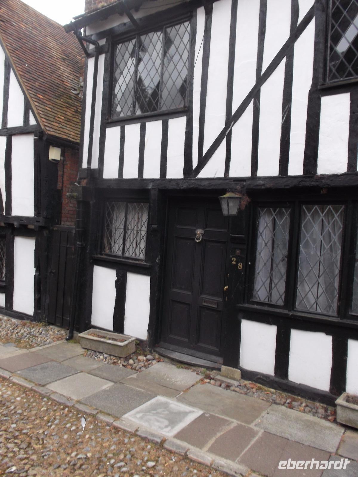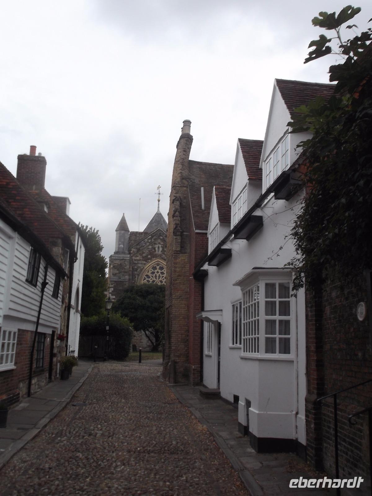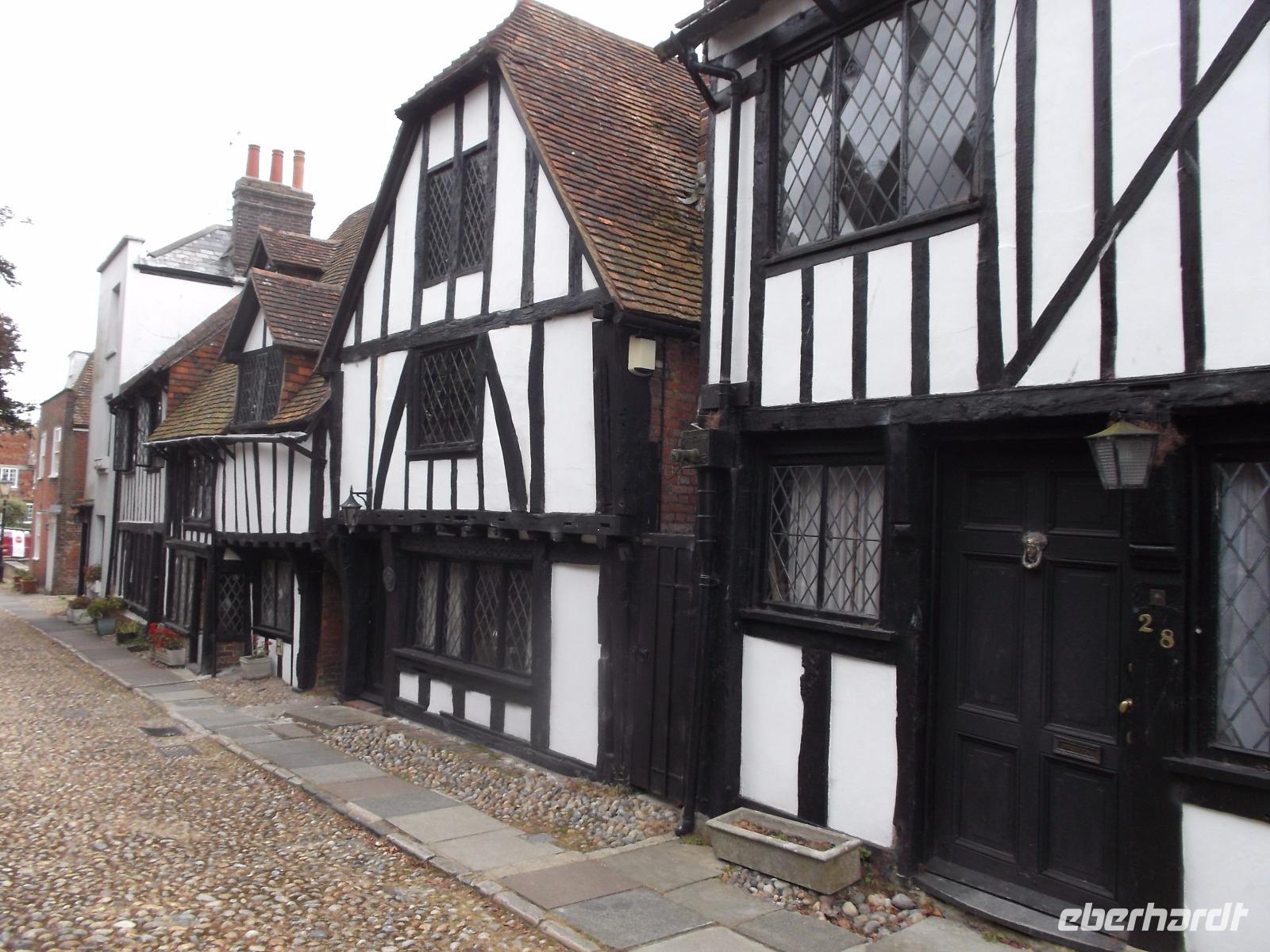 Wir fuhren durch die flache, offene Landschaft der Romney Marsh und entlang der Küste, ehe wir uns den historisch bedeutsamen Hafenort Rye ansahen. In seiner Altstadt hat das malerische Städtchen an vielen Stellen seinen typischen mittelalterlichen Charakter bewahrt. In der mit holprigen Kieseln und Kopfstein gepflasterten „Mermaid Street", in der sich immer noch das Gebäude der einst berühmten Schmugglerkneipe „Mermaid Inn" aus dem 15. - 17. Jh. befindet, sieht es noch fast genauso aus wie 500 Jahre zuvor. Rye war damals Mitglied des einflussreichen Städtebundes der „Cinque Ports (französisch = Fünf Häfen). Viele Traditionen der britischen Seefahrt gingen von den verbündeten Hafenstädten aus, die bis ins 16. Jh. die größte Flotte der Insel stellten, auf die selbst der König angewiesen war.
